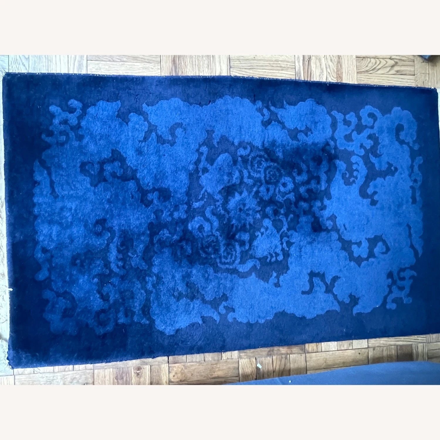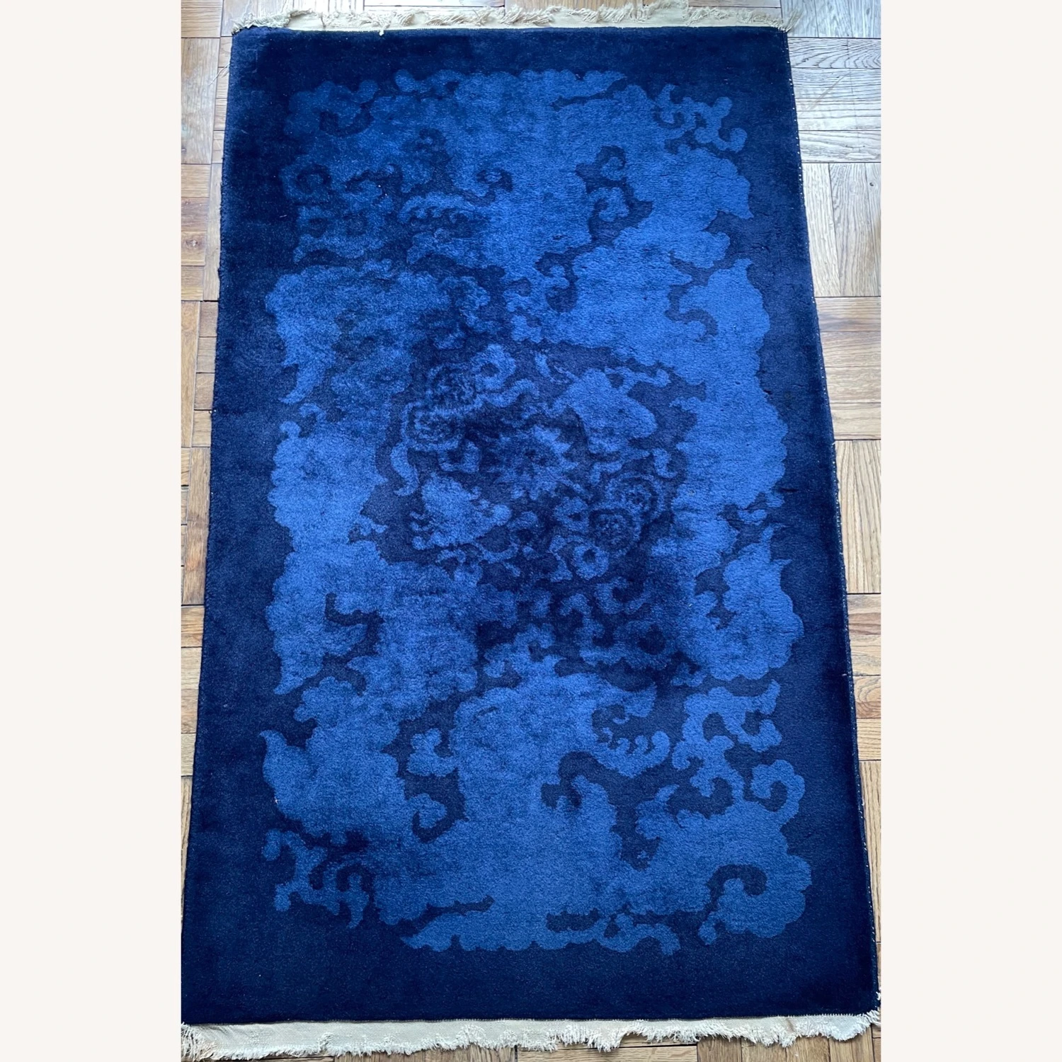 Seller’s Notes: 1920’s antique Chinese handwoven Peking Art Deco Solid Over-dyed Midnight Blue Rug