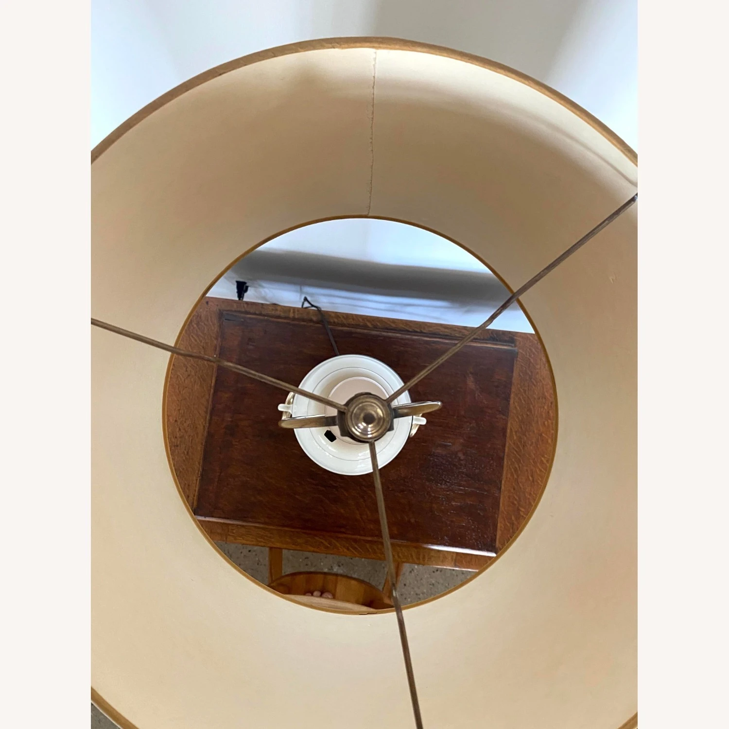 In excellent condition commensurate with age. There is one small tear on inside of lampshade – see photos.