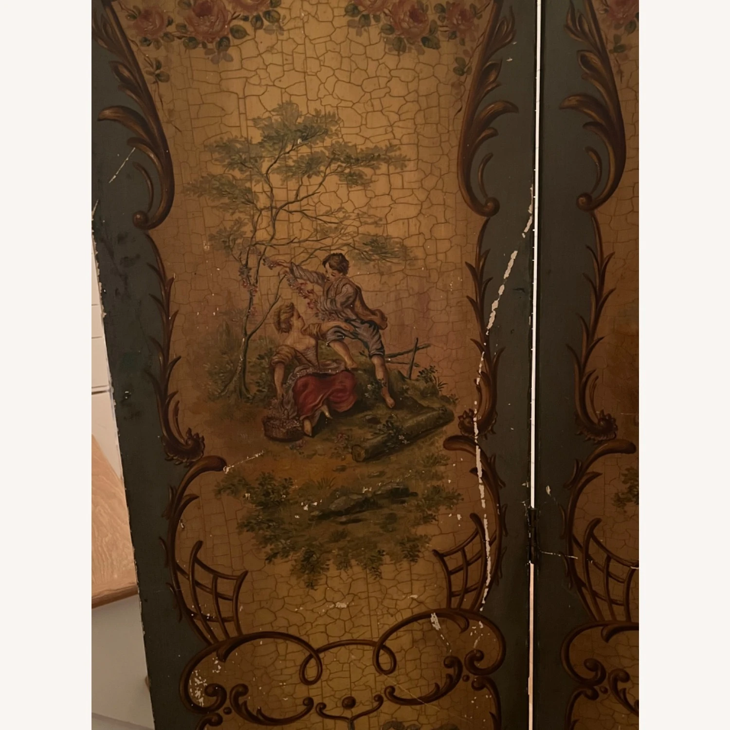 Seller’s Notes: There are 4 panels, each panel is H63โ x W 17.5โ. Solid wood beautifully painted. Sturdy, works fine. Some losses of paint