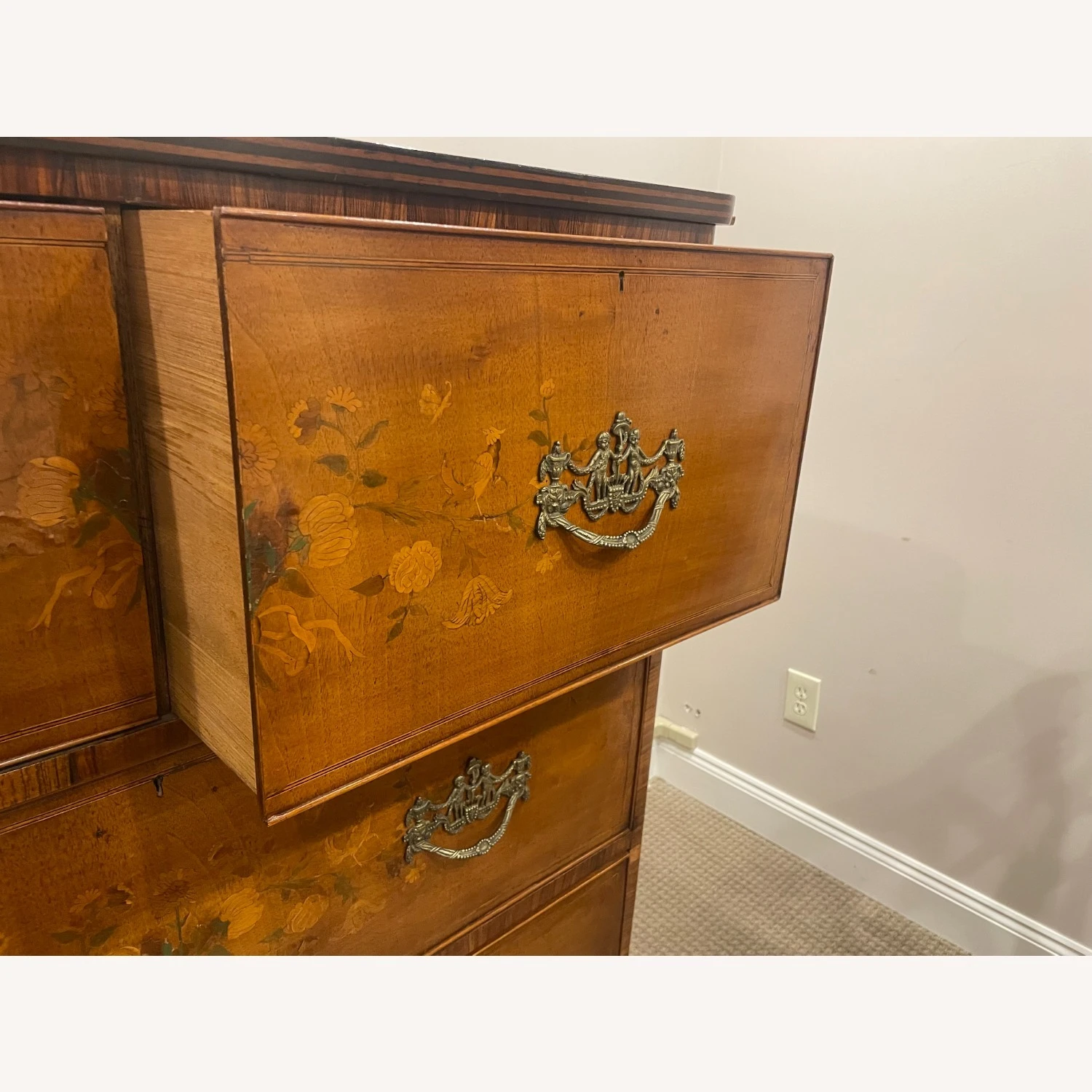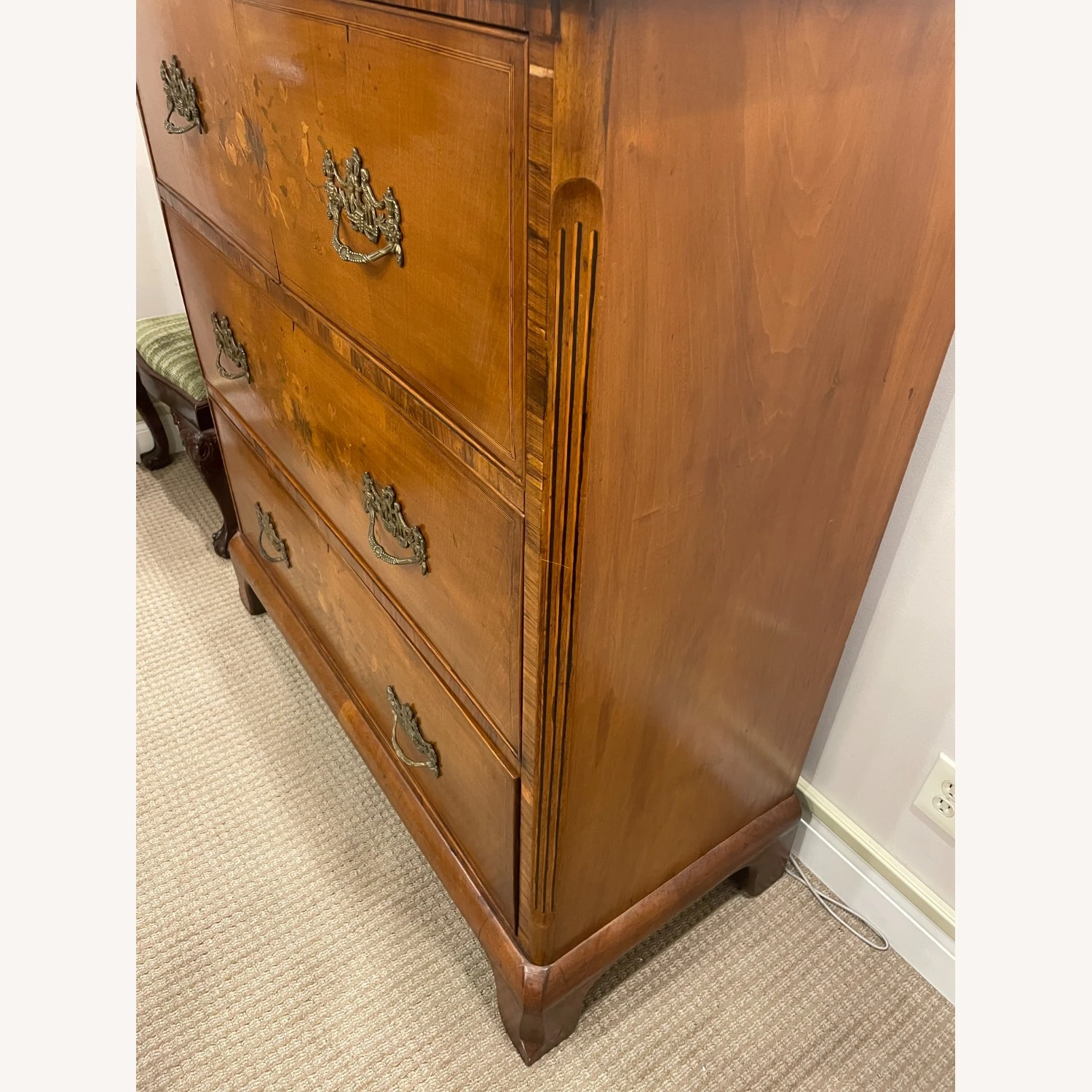 Seller’s Notes: Antique Louis XV French tall dresser was made circa 1800, it has 4 deep drawers with a locking mechanism in each. This dresser has a walnut veneer and has all original detailed bronze hardware. This item was selected from the M. Christopher Collection, which only selects the finest of quality pieces, now being directly offered to you!