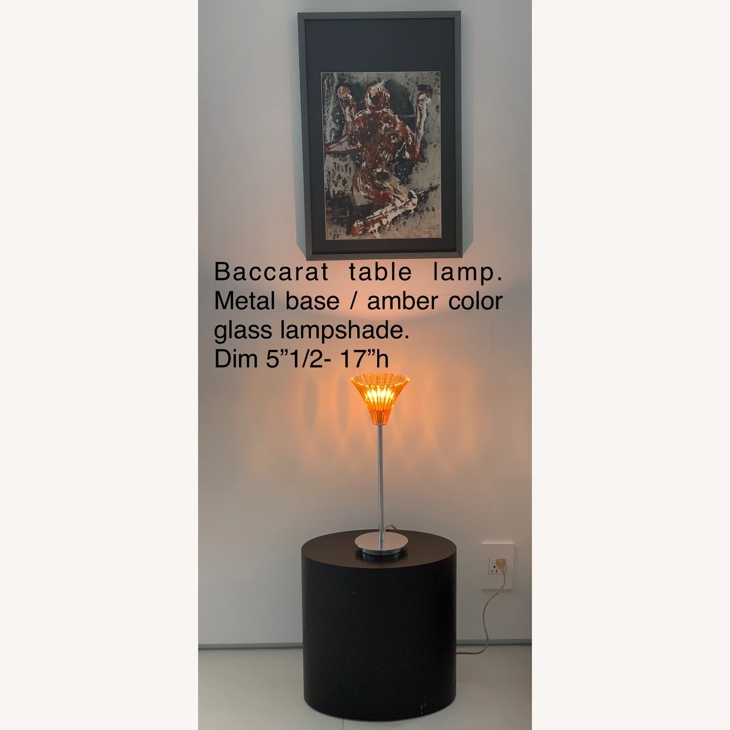 Seller’s Notes: Set of table lamps from Baccarat. Lampshade in amber color blown glass and base in metal
