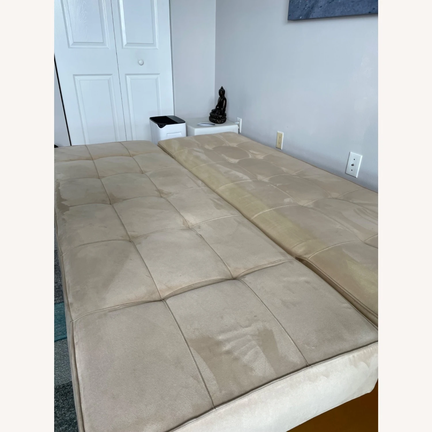 Seller’s Notes: This futon has been in the office, was only occasionally used for guests. Has a small tear on the seat and needs a cleaning, but all mechanical functions work perfectly.