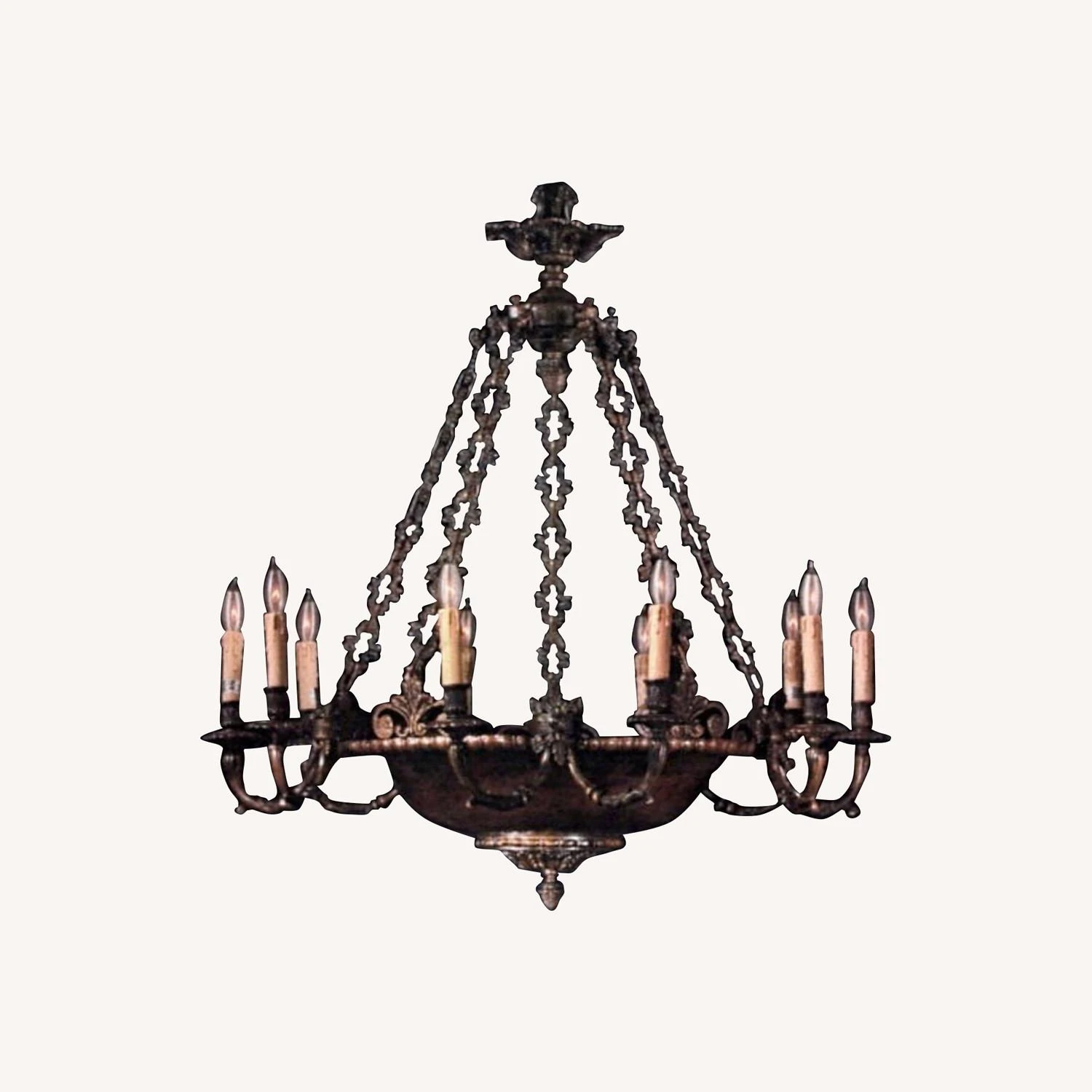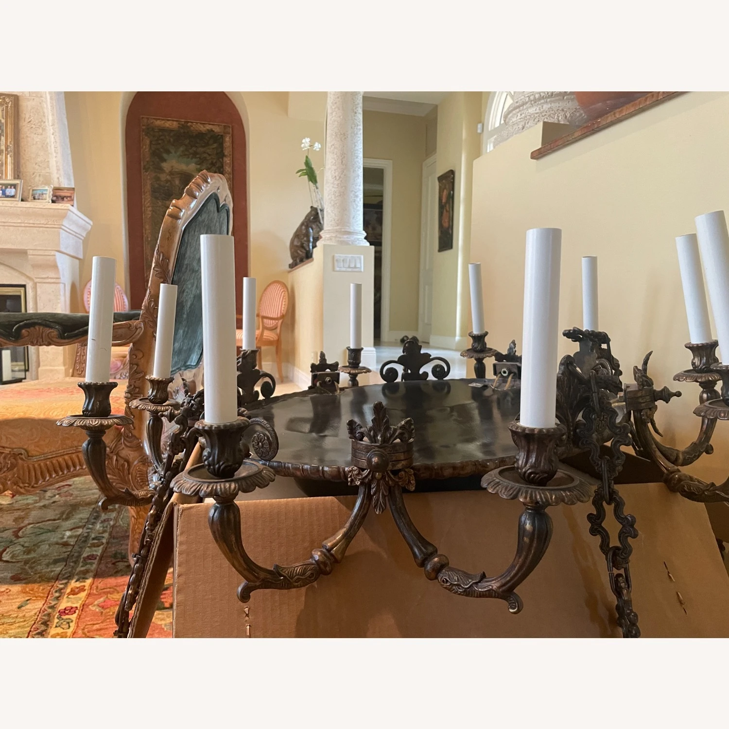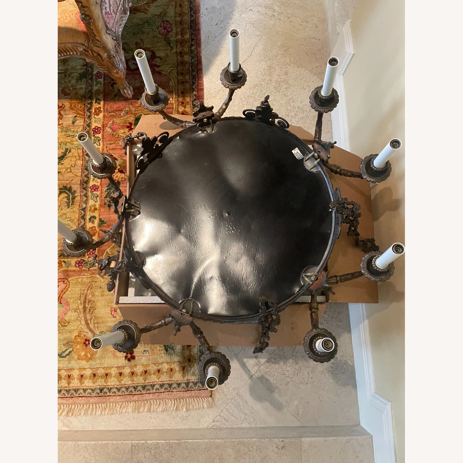 Seller’s Notes: The Chandelier is magnificent. We bought it in 2006 and has been hanging at our hose till this month, July 2023. It is in perfect condition. It is from The European Collection, Copper oxide 40″ H x 35″W. We bought it from Savoy House. We have taken the chandelier down and it is ready for pick up.