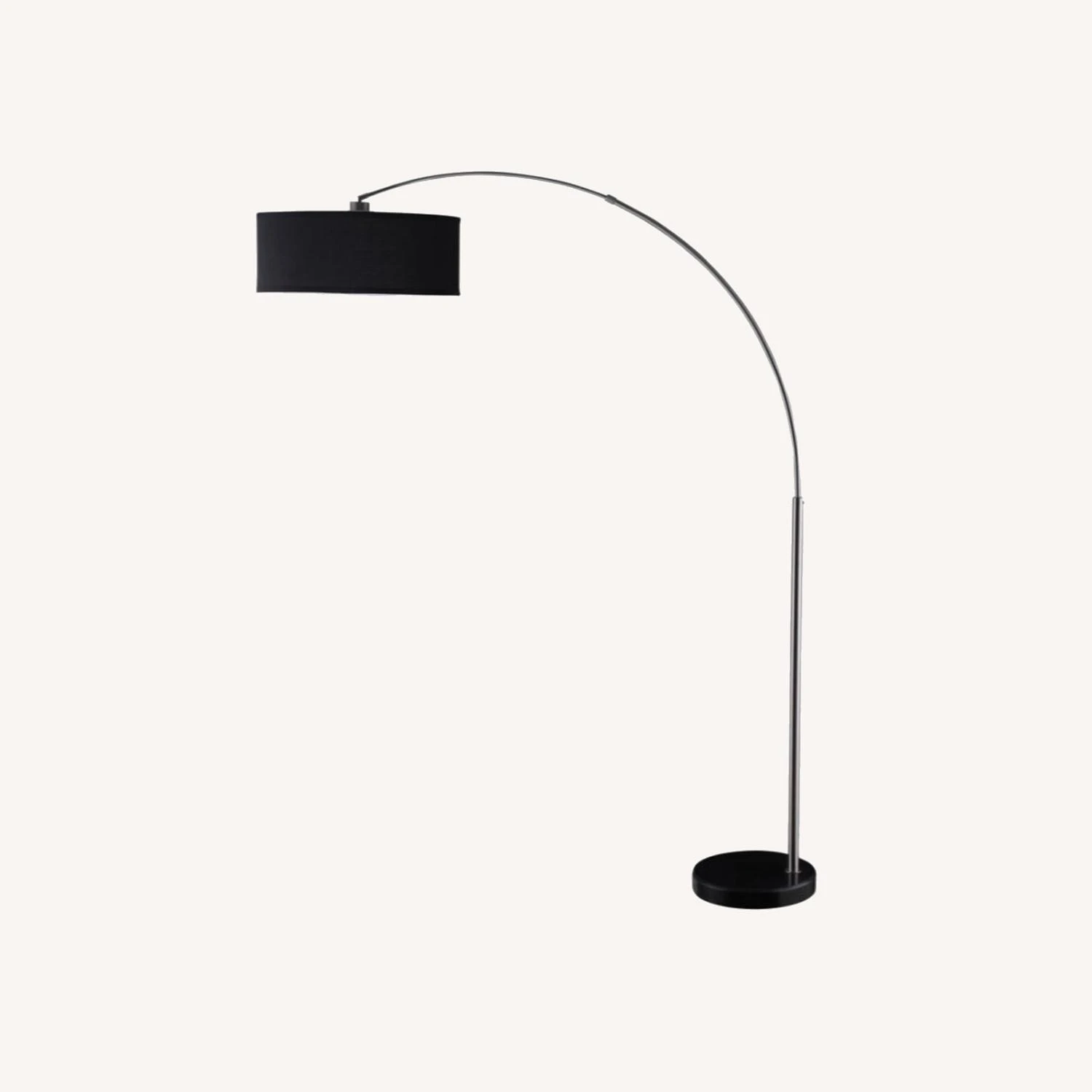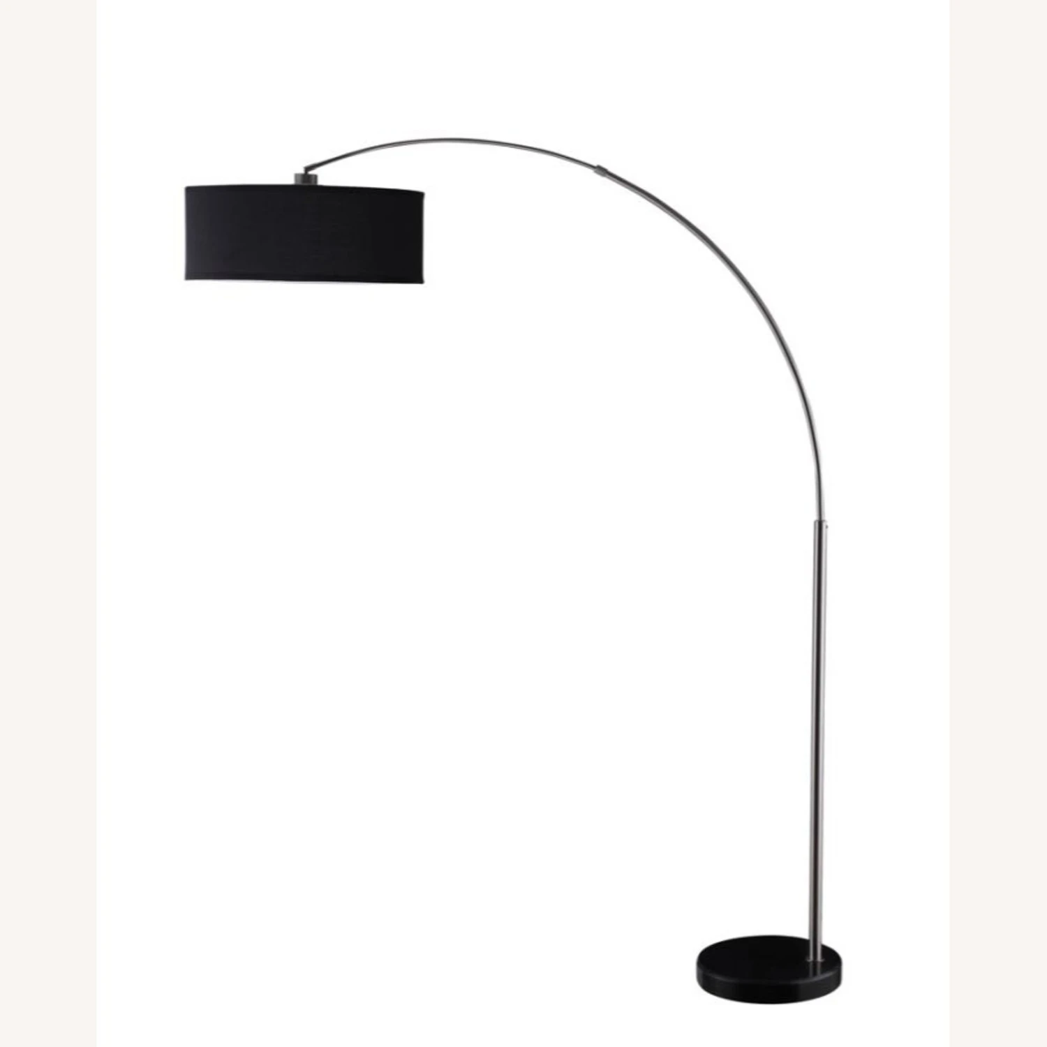• Contemporary style floor lamp with dramatic arched neck and arm