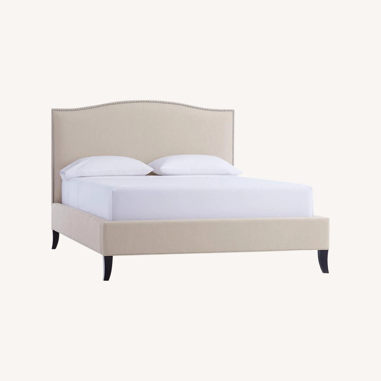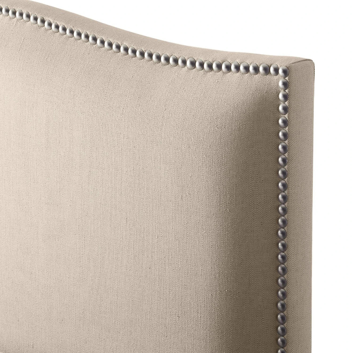 Seller’s Notes: The Colette queen platform bed brings grace and sophistication to the bedroom with an understated curved camelback in a soft natural linen blend. Curved, solid maple legs are finished in black, with signature, hand-applied nailheads in brushed pewter adding the final refinement. Plus, the headboard is fully upholstered front and back to give you more flexibility in setting up the bedroom you desire. The Colette Queen Bed is a Crate and Barrel Exclusive.