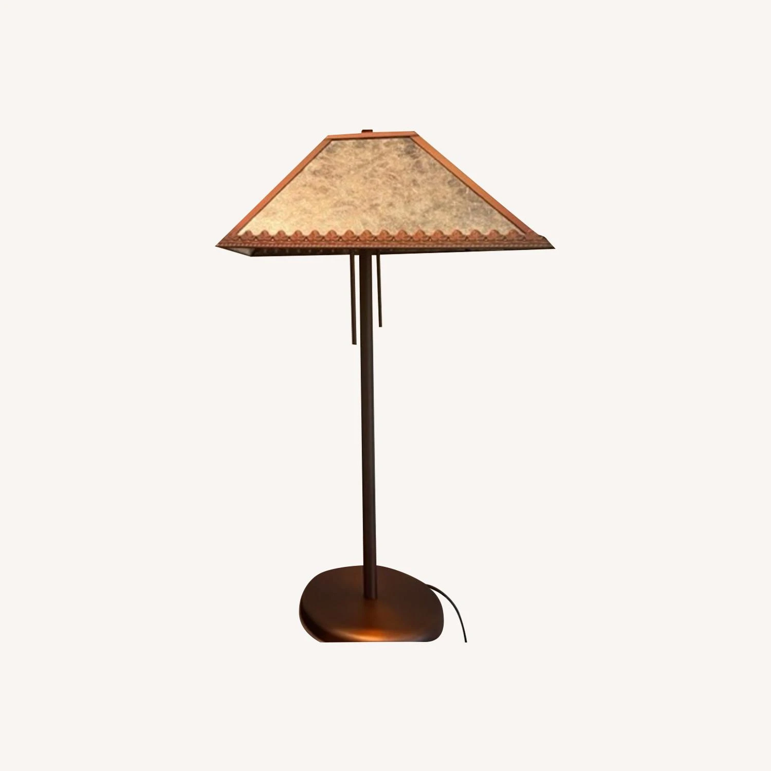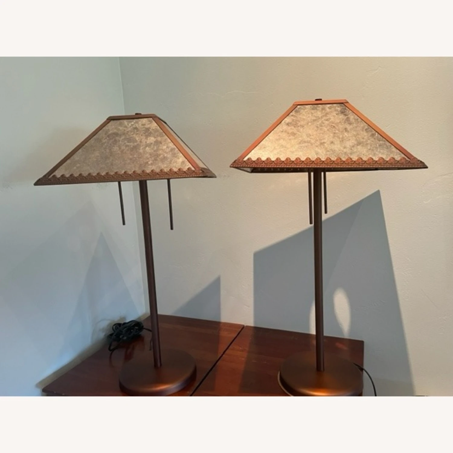 Seller’s Notes: Set of 2 table lamps with brushed brass finish and detail on shade.