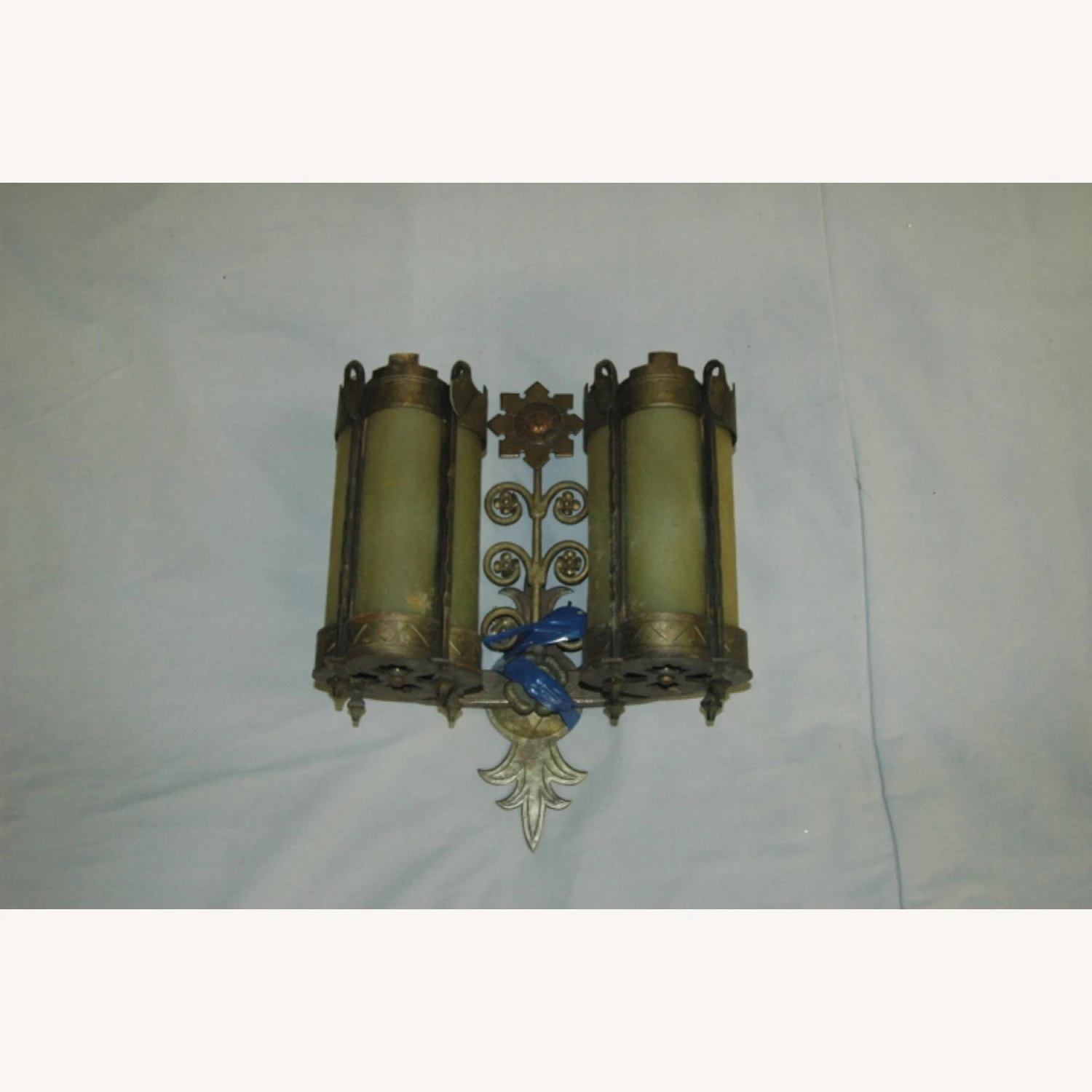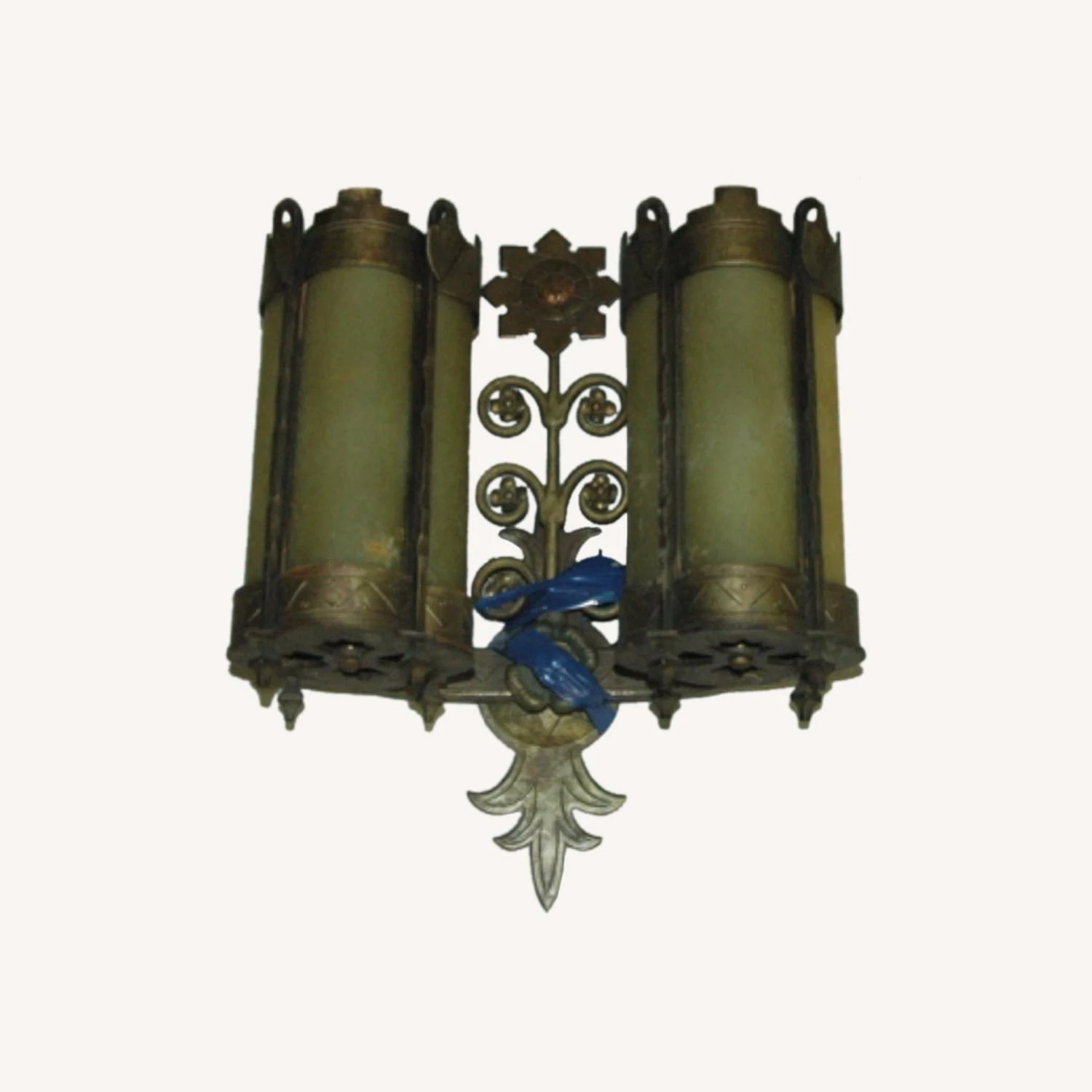 Seller’s Notes: This piece is an original gothic wrought iron sconce from the Williamsburg savings bank which was built in 1927. This piece features iron with bronze and copper detailing, and original amber glass. After the gut renovation in 2006 we acquired these pieces and several other large chandeliers and pendants. These are the last remaining pieces of the collection and hold significant historical value. One of the last remaining remnant’s of the most iconic architectural marvels of the past. A true New York City gem.
