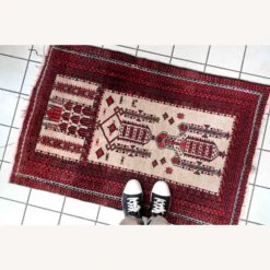 Seller’s Notes: Handmade antique Afghan rug from Baluchi region. This prayer rug made in the beginning of 20th century, it is in original condition, has some low pile.