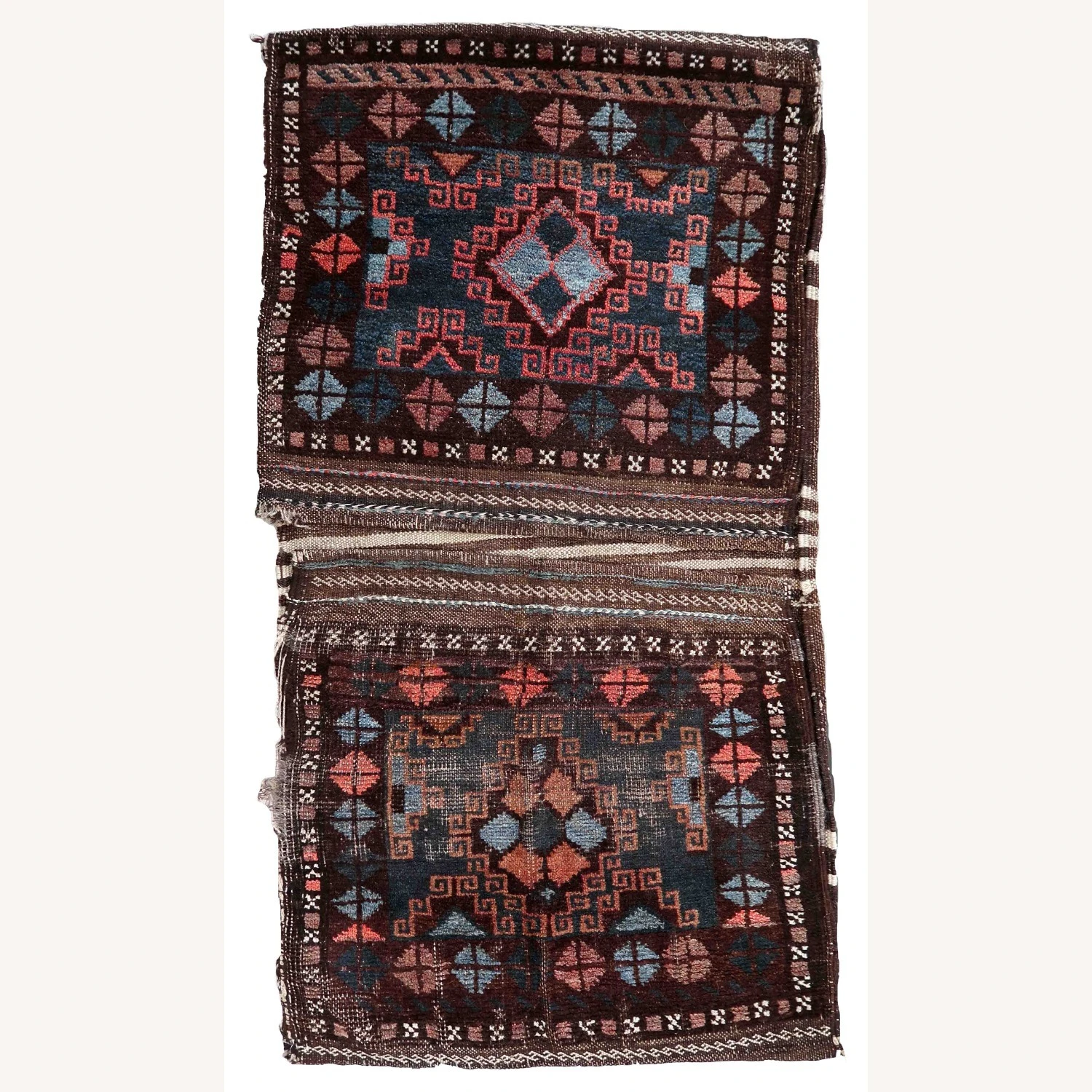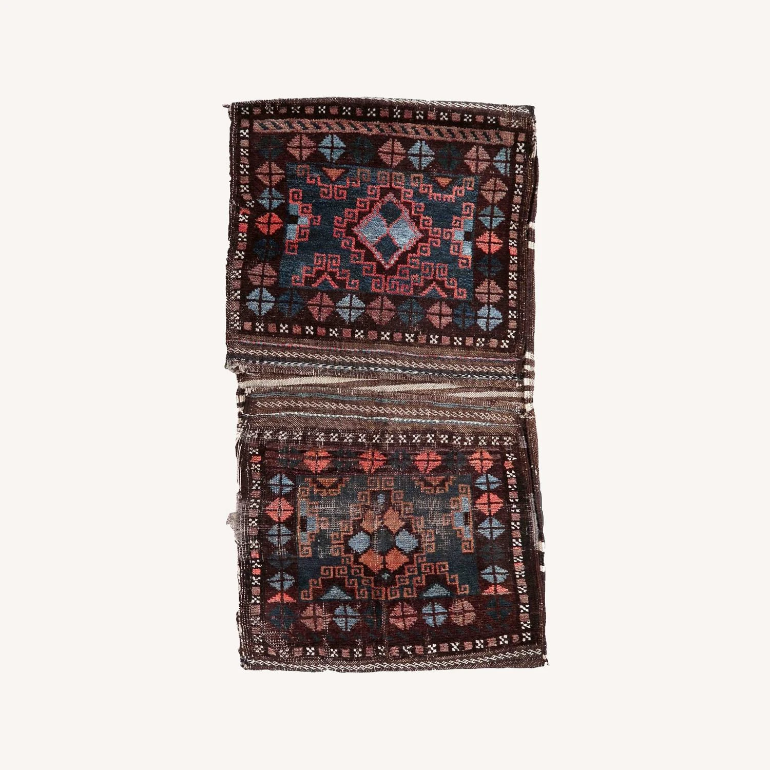 Seller’s Notes: Handmade antique Afghan Baluch saddle bag in original condition, it has some age wear. The bag has been made in the beginning of the 20th century in original combination of colors.