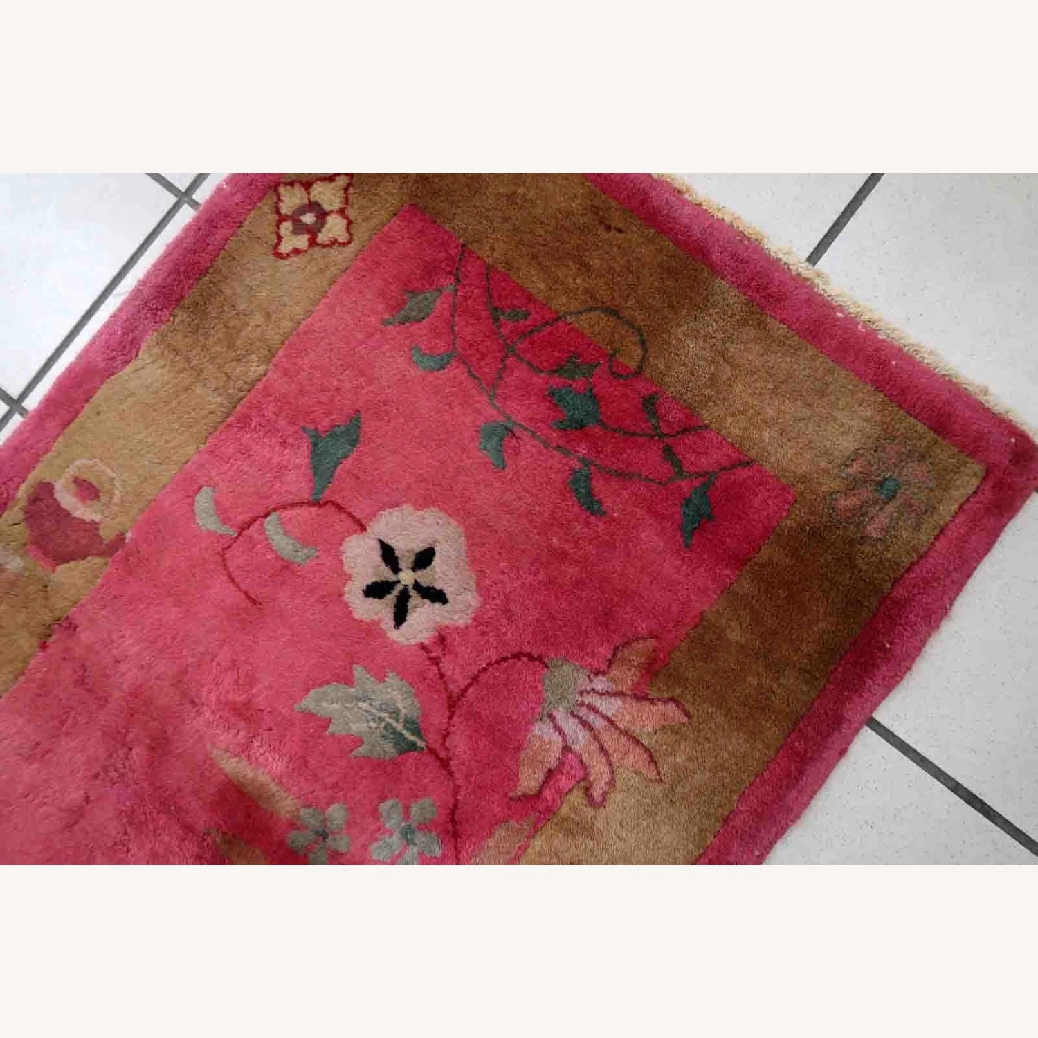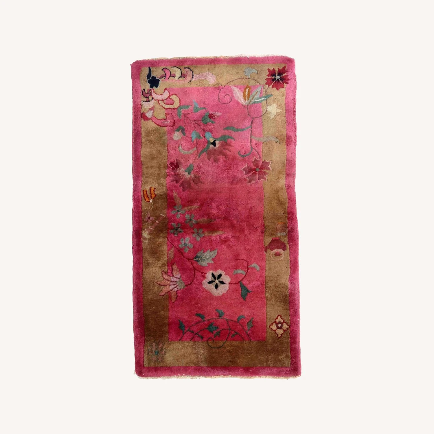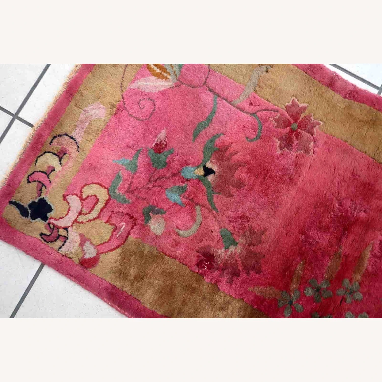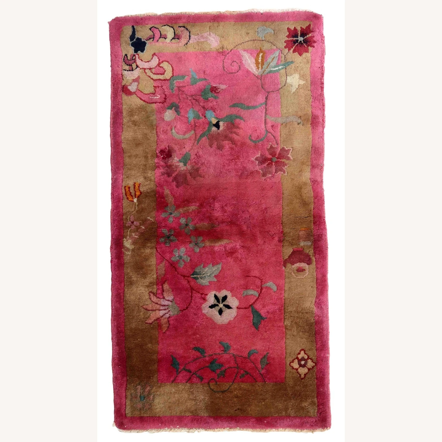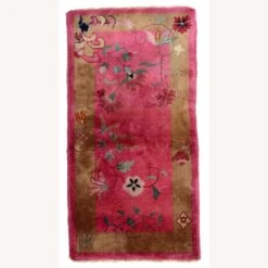 Seller’s Notes: Handmade antique Art Deco Chinese rug in good condition, it has some signs of age. The rug has been made in China in fuchsia shade. The rug is from the beginning of 20th century.