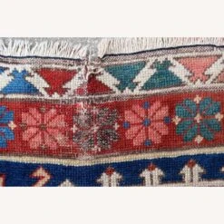 Seller’s Notes: Handmade antique rug from Caucasian Shirvan region in blue and red colors. The rug has two different blues on the background. The rug is from the end of 19th century in distressed condition, it has some low pile and old restorations.