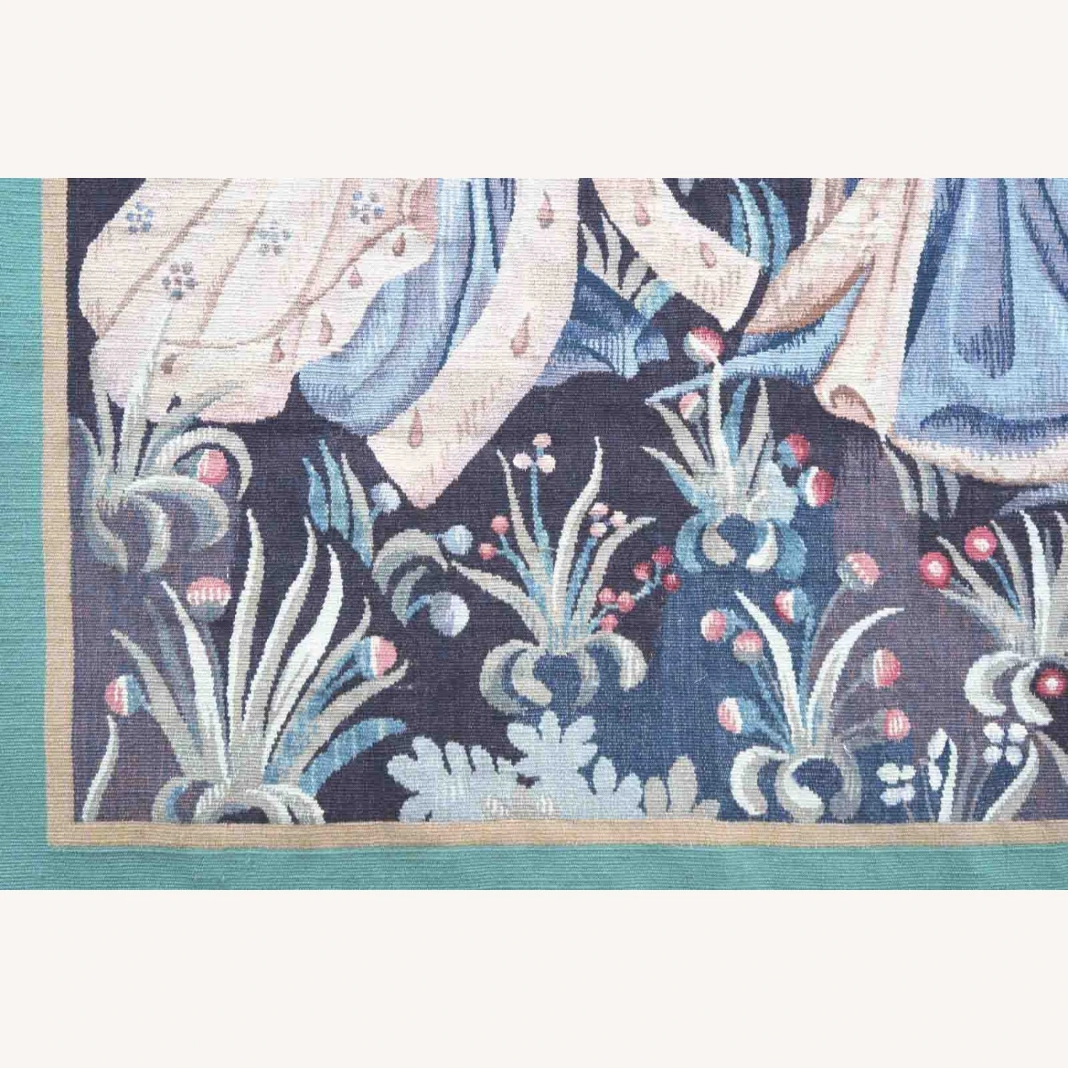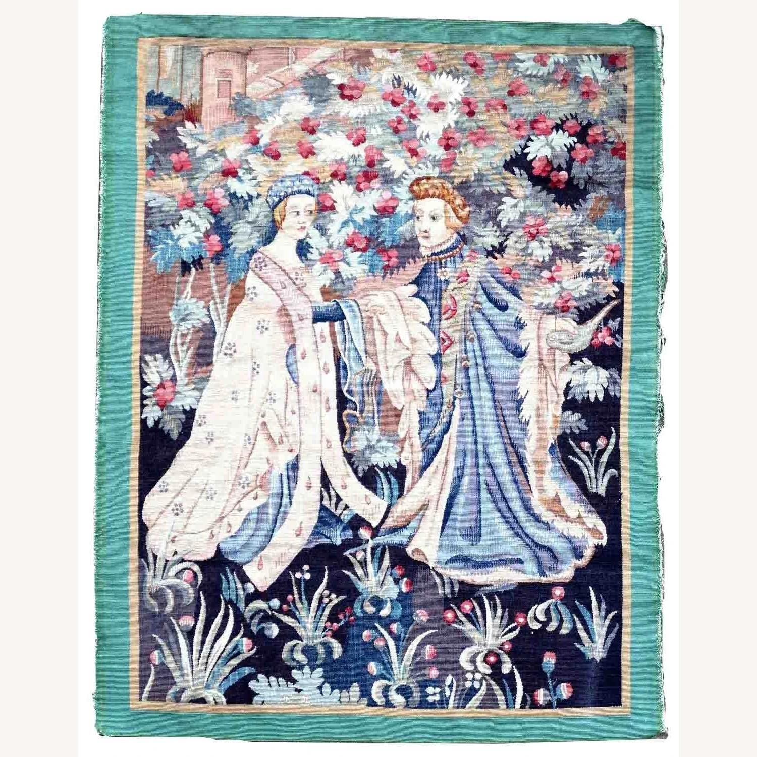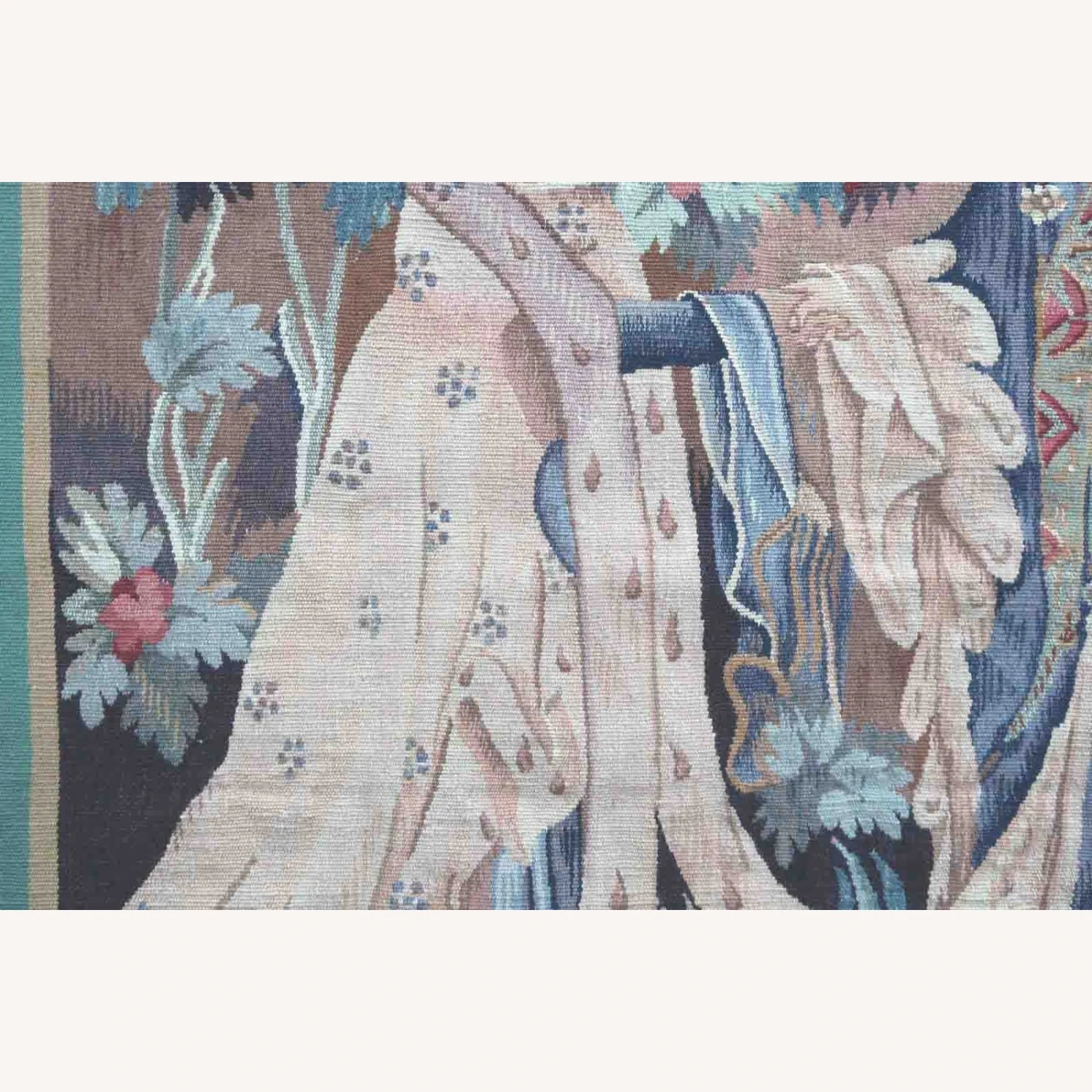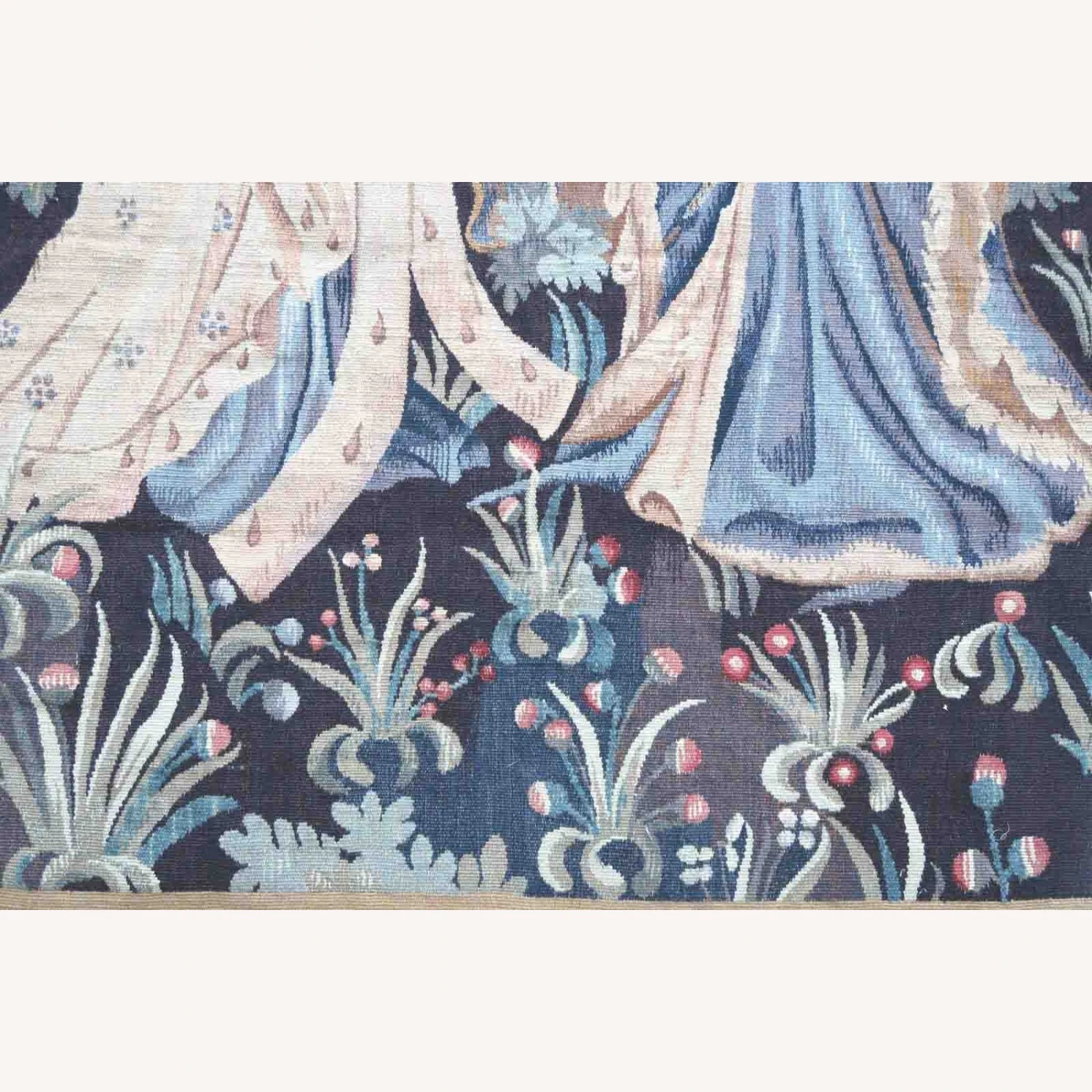 Seller’s Notes: Handmade antique collectible French Aubusson rug in pictorial design. The rug is from the end of 19th century in original condition, a small sewing job to perform on the sides.