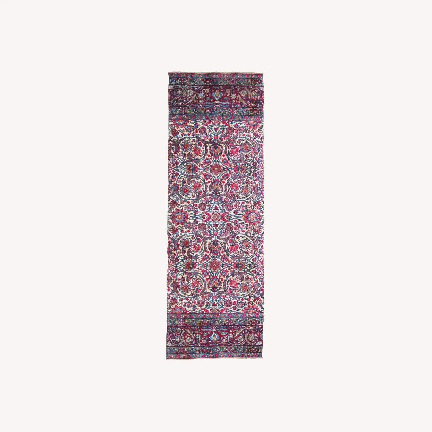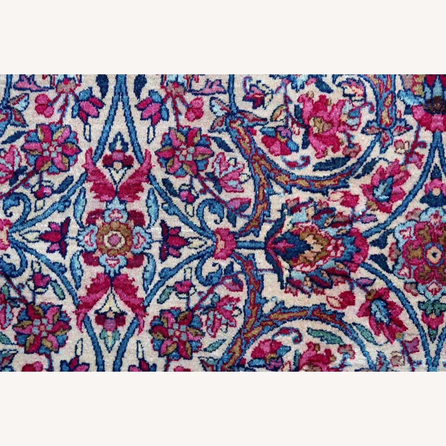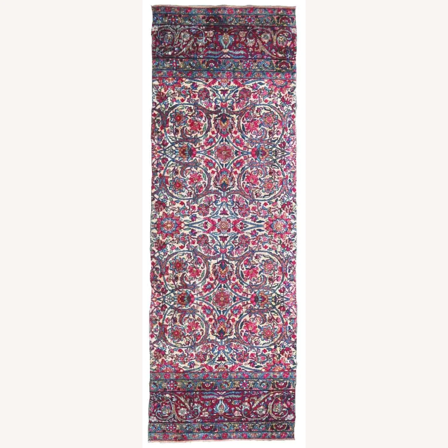 Seller’s Notes: Handmade antique fragment of Persian Kerman rug in traditional busy floral design. The fragment is in original good condition, it is from the beginning of 20t century.