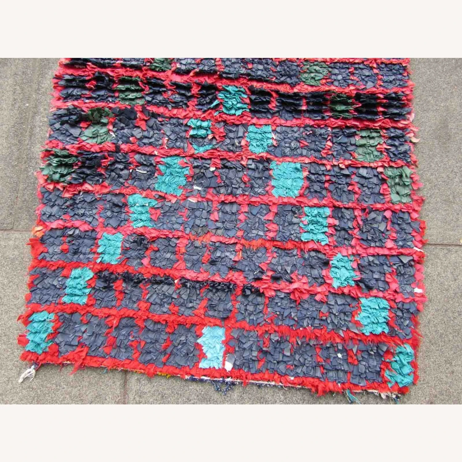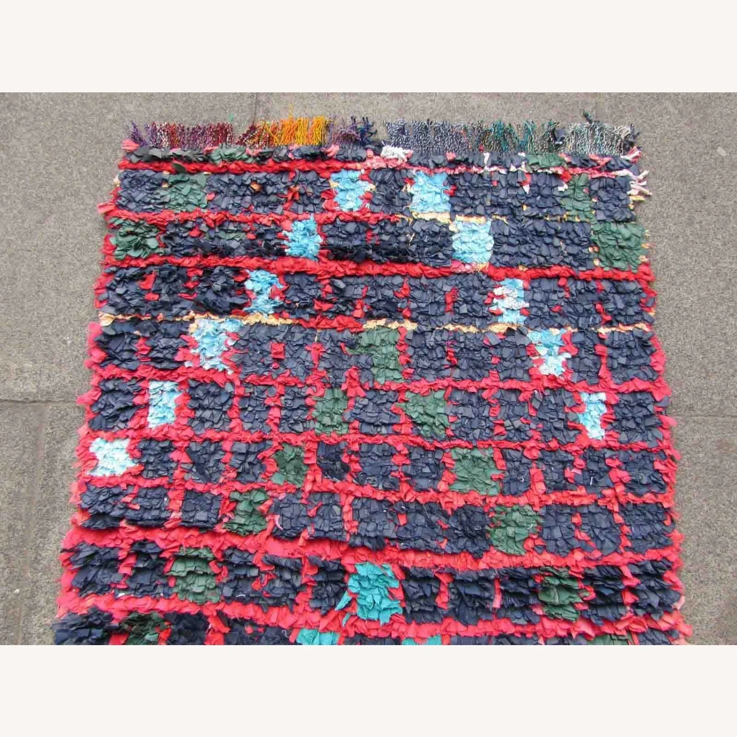 Seller’s Notes: Handmade vintage Moroccan Boucherouite rug made in colorful cotton fabric. The rug is from the end of 20th century in original good condition.