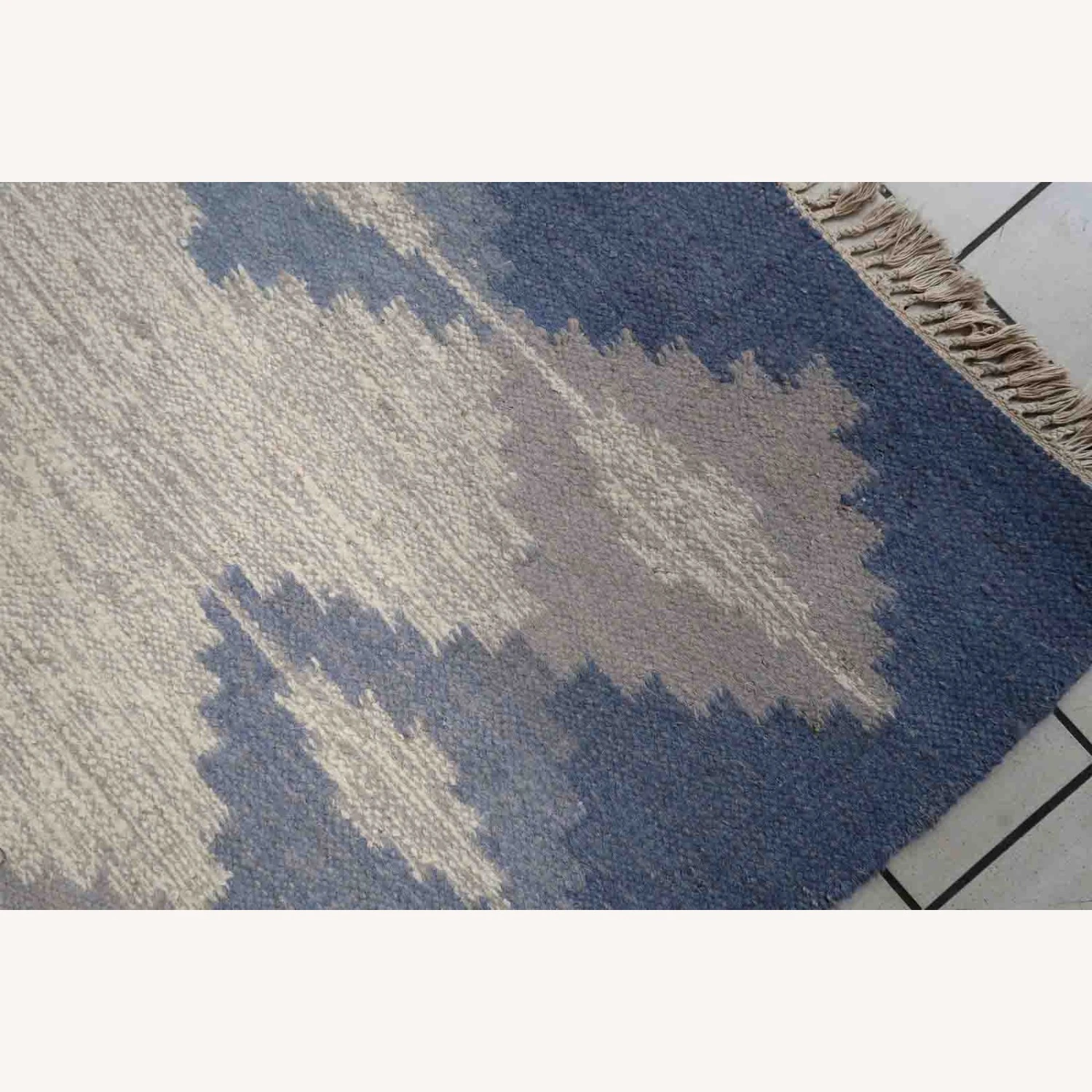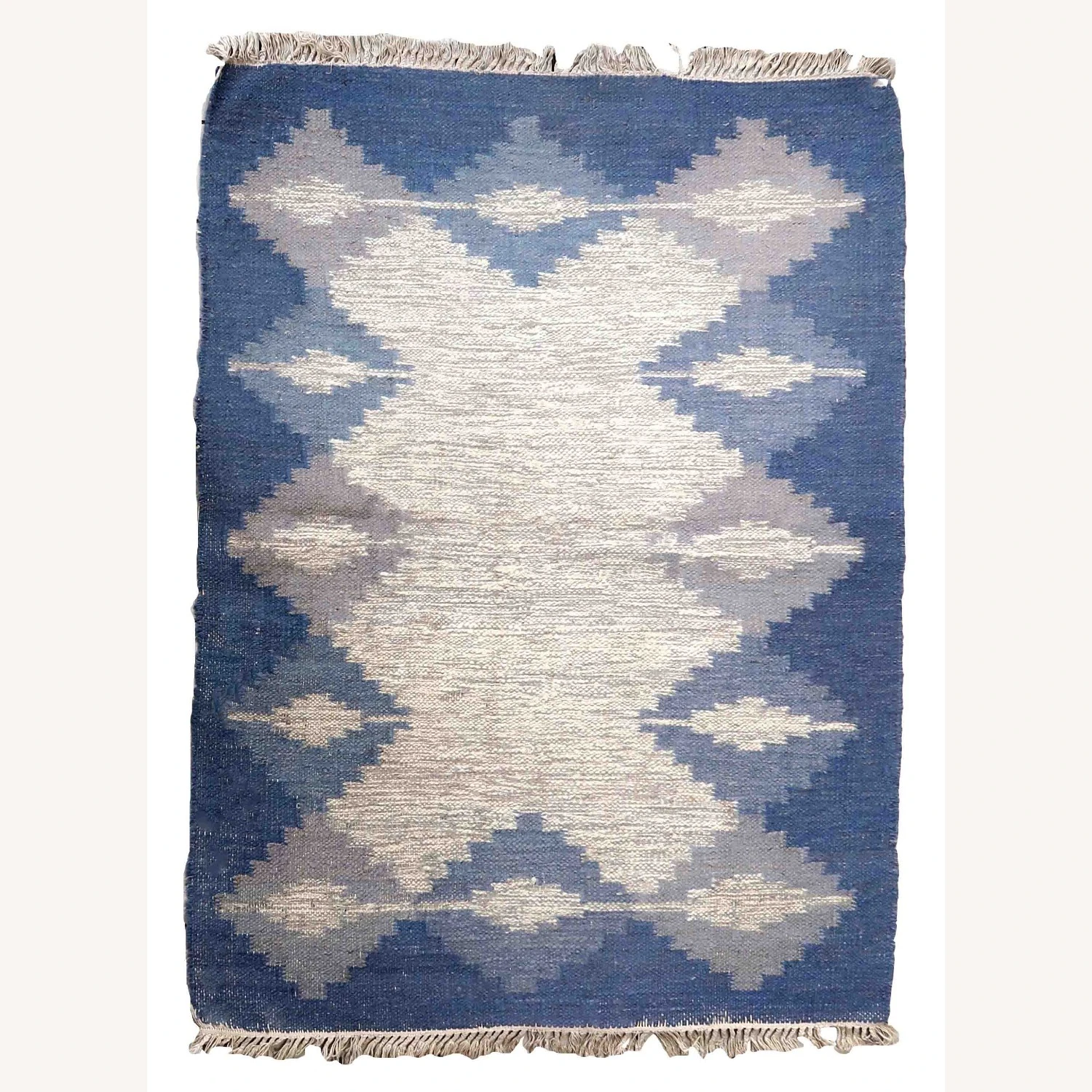 Seller’s Notes: Handmade vintage Persian Ardabil kilim in white and blue colors and geometric design. The rug is from the end of 20th century in original condition, it has some signs of age.