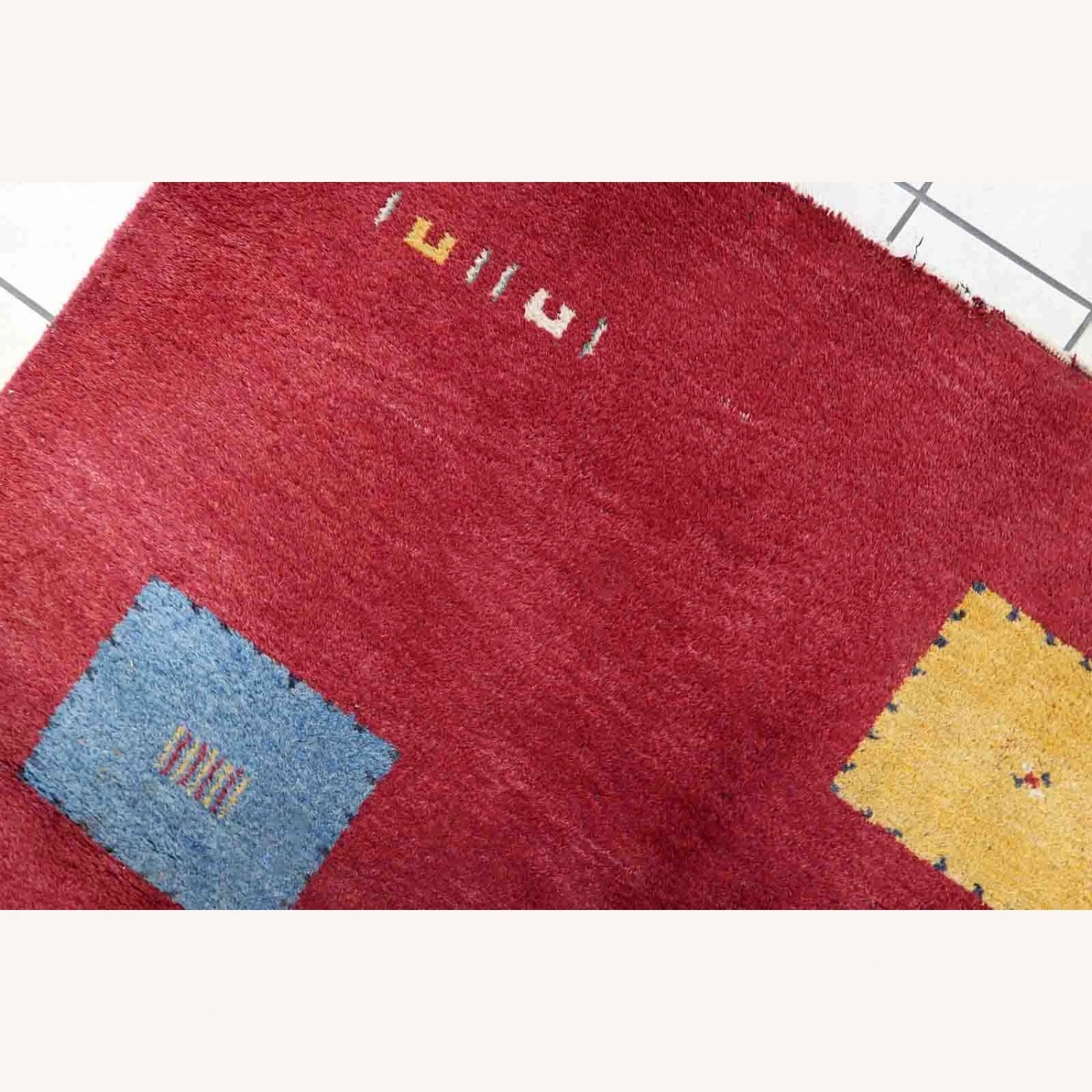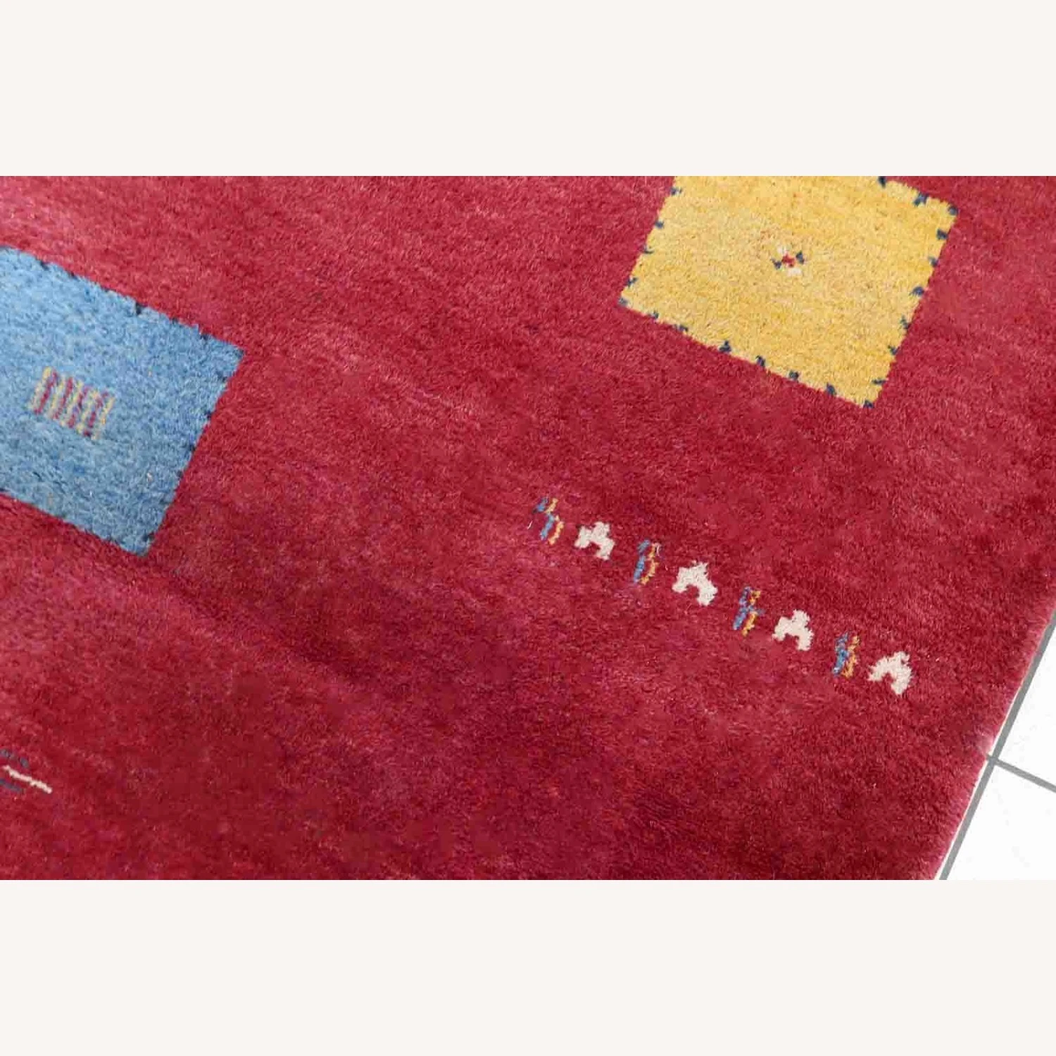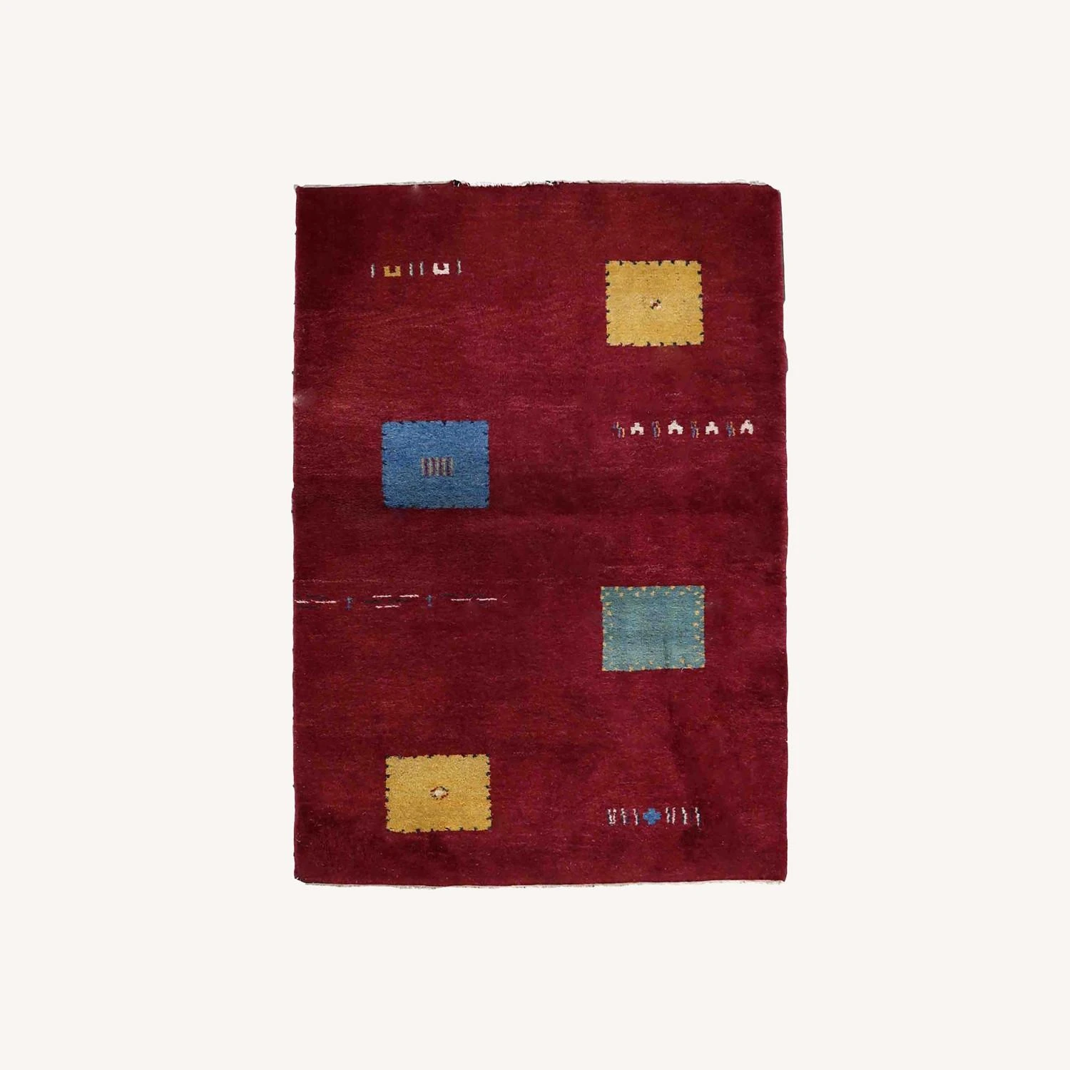 Seller’s Notes: Handmade vintage Persian Gabbeh rug in deep red color and geometric design. The rug is from the end of 20th century in original good condition.
