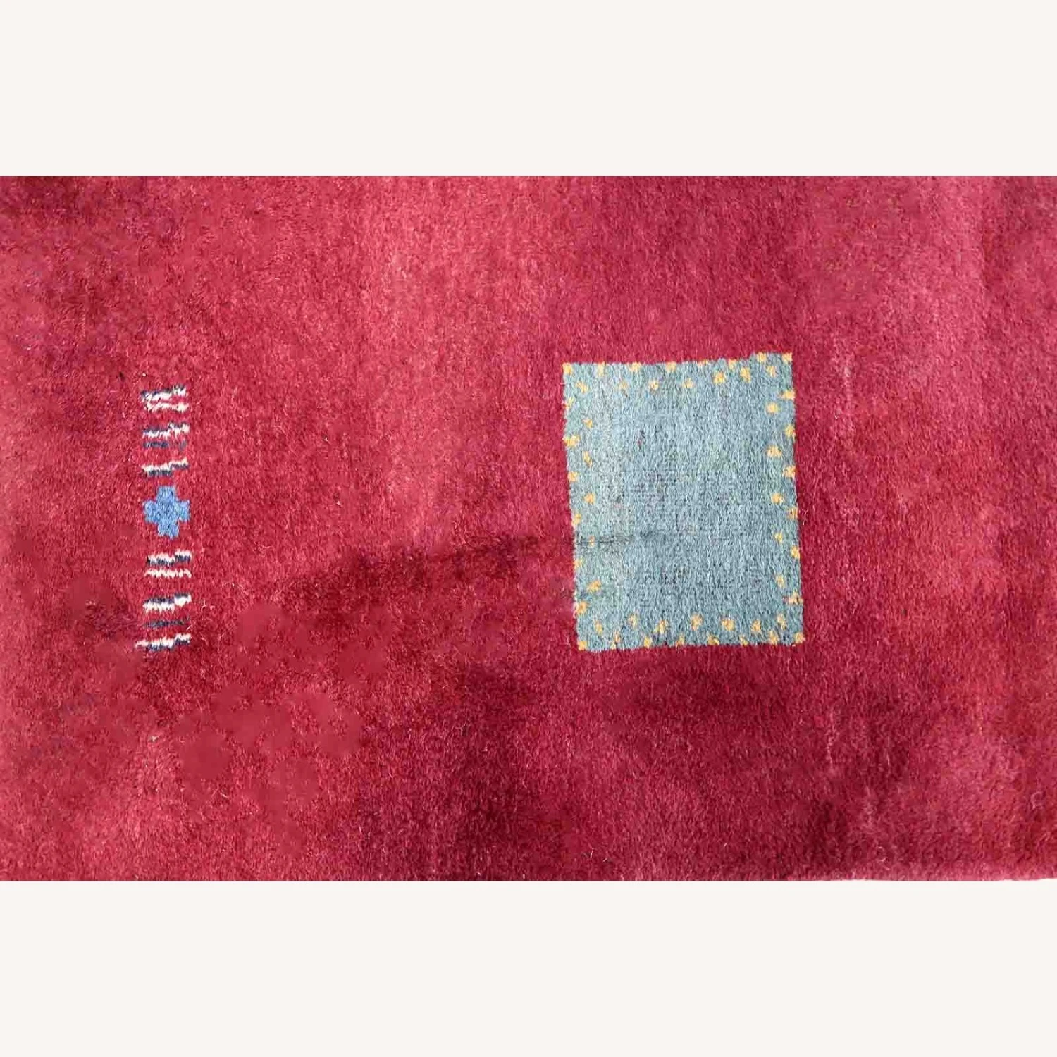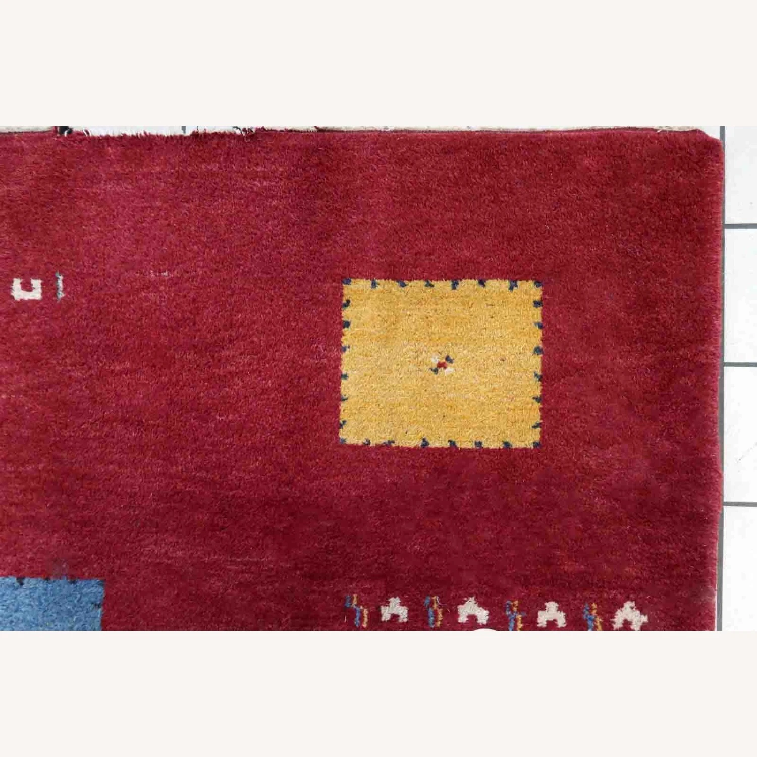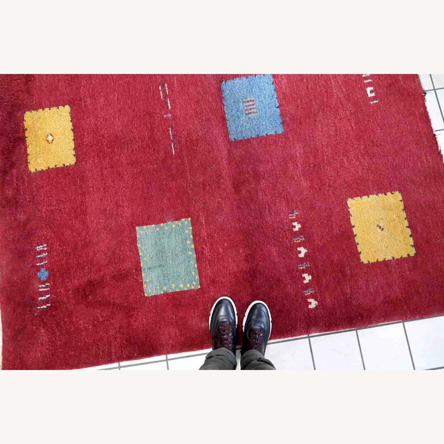 Seller’s Notes: Handmade vintage Persian Gabbeh rug in deep red color and geometric design. The rug is from the end of 20th century in original good condition.