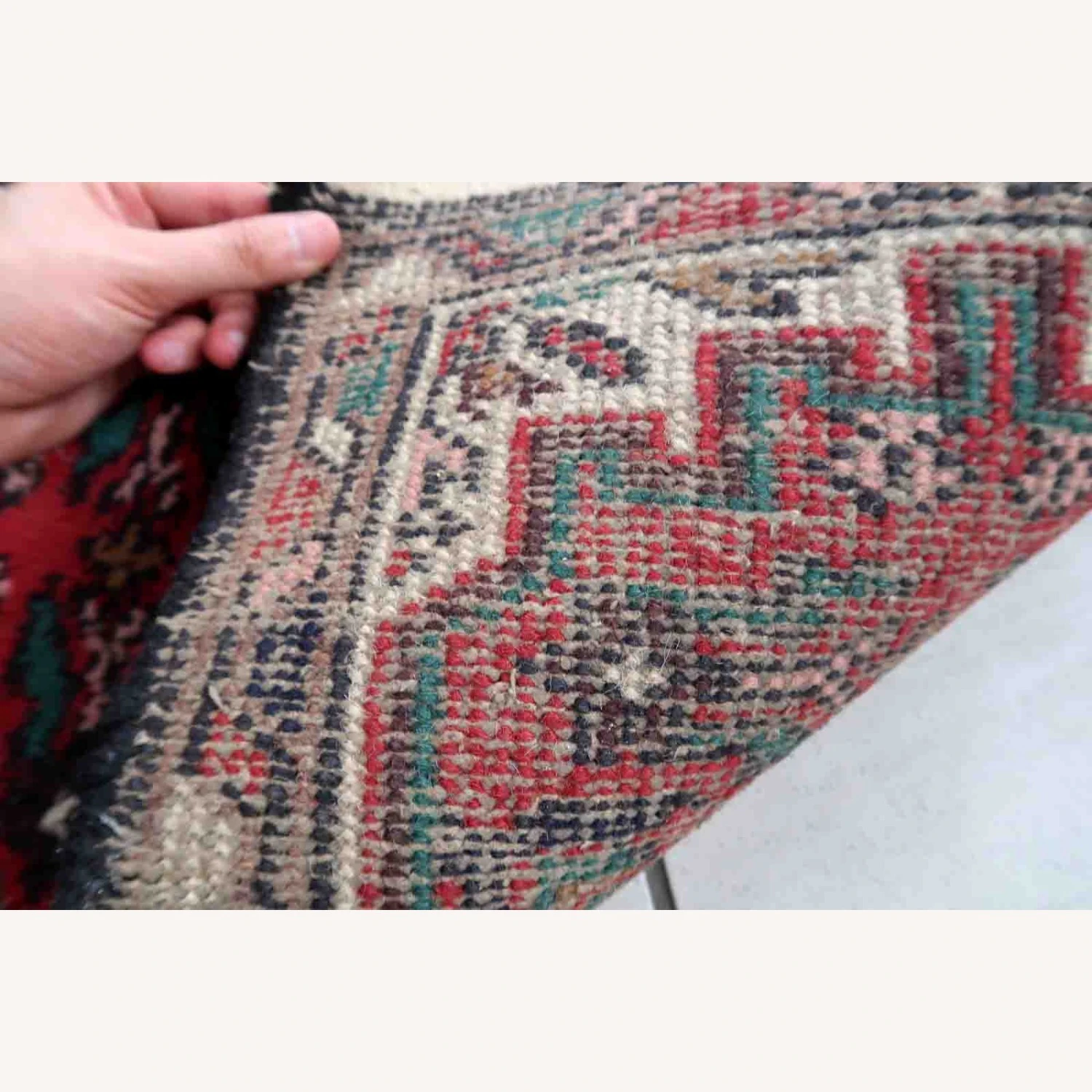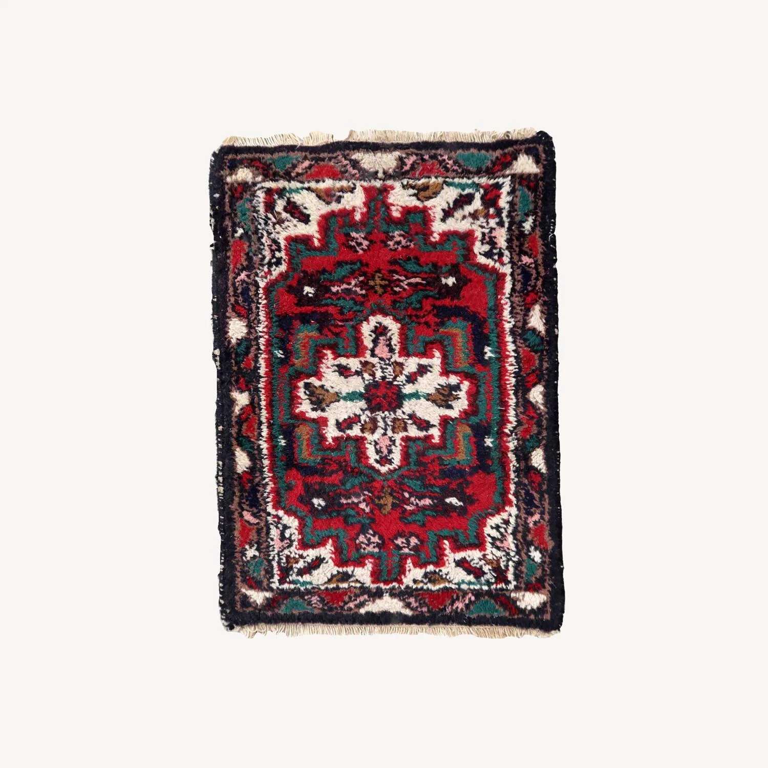Seller’s Notes: Handmade vintage Middle Eastern rug in traditional medallion design. The rug has been made in wool in the end of 20th century. It is in original good condition.