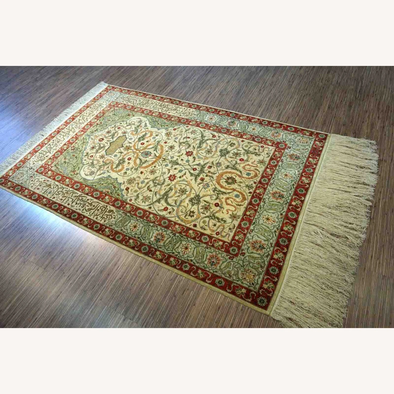 Seller’s Notes: Handmade vintage Turkish Hereke rug made in natural silk and prayer design. The rug is from the middle of 20th century in original good condition.