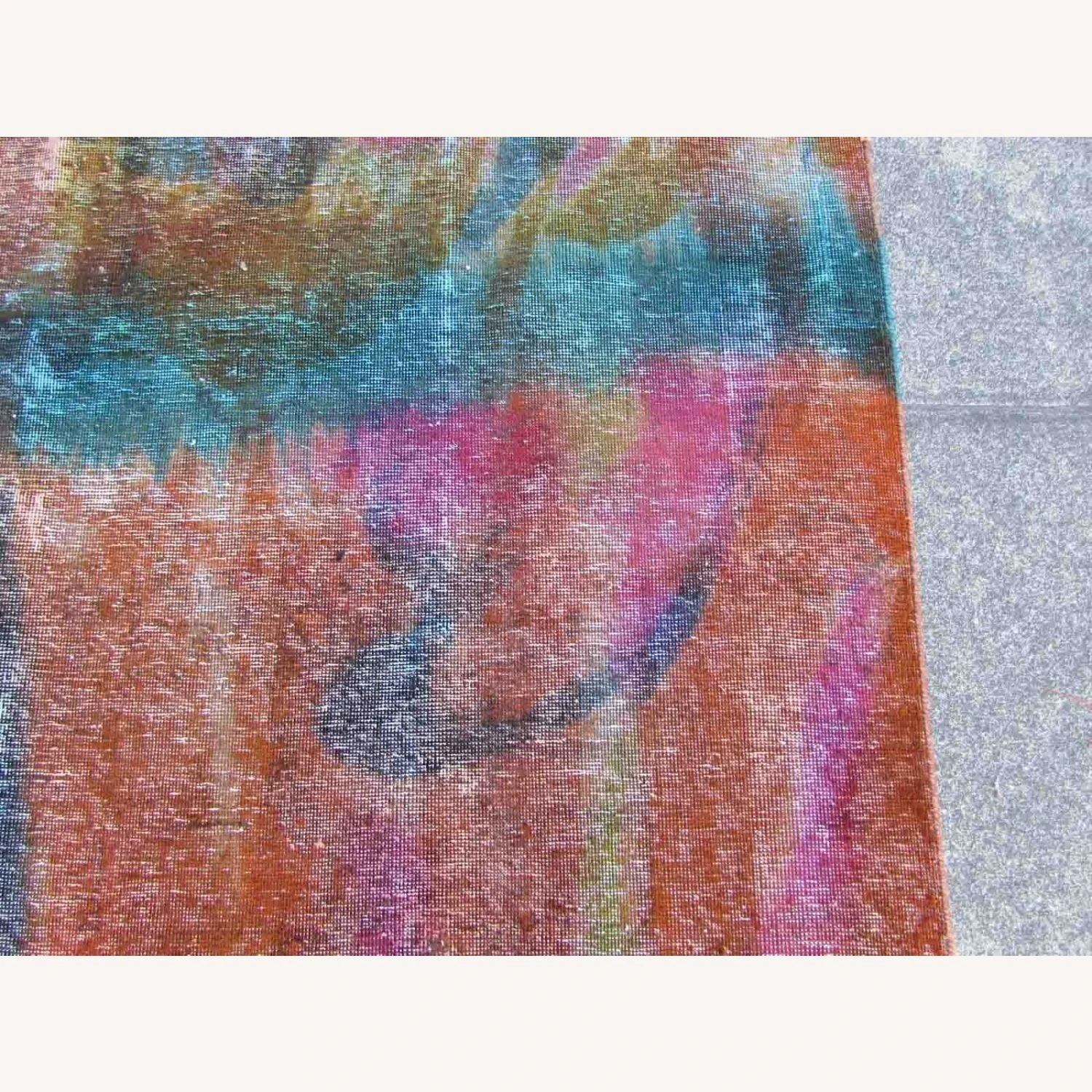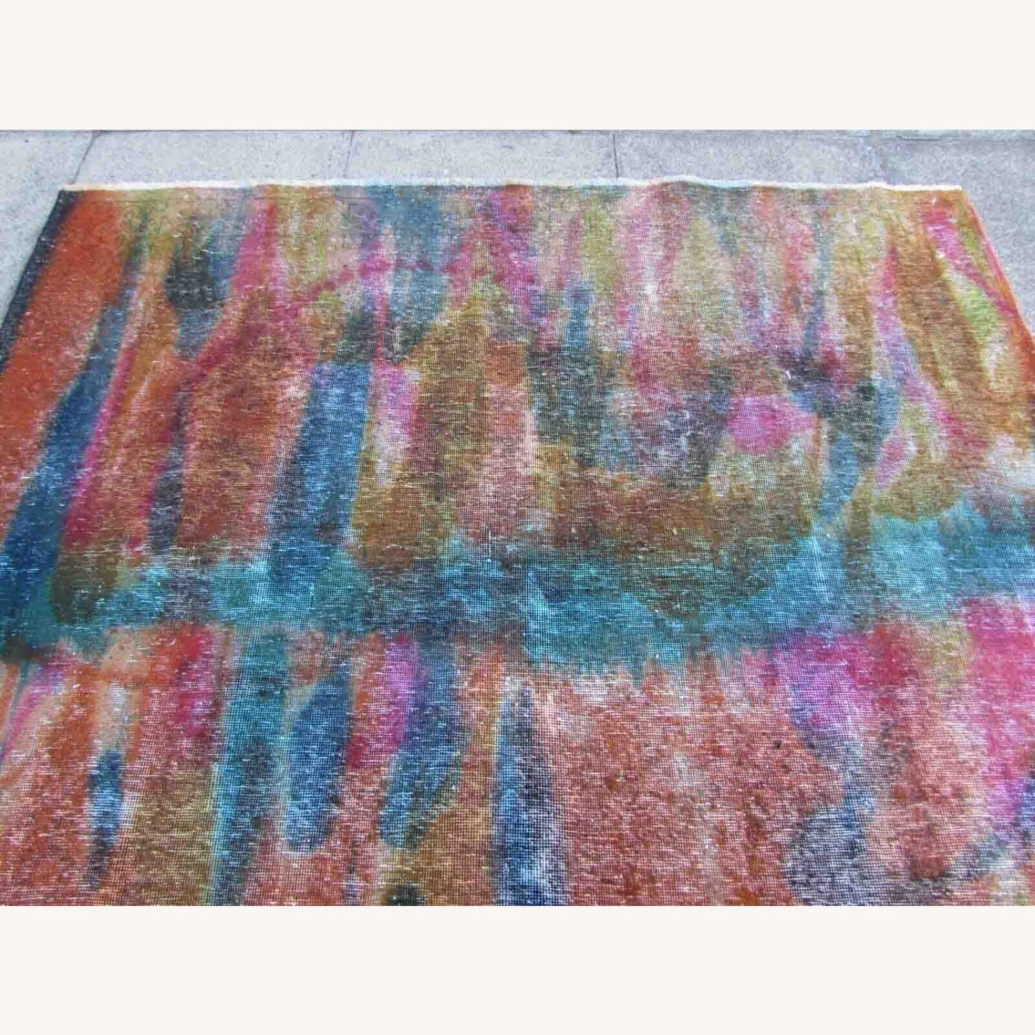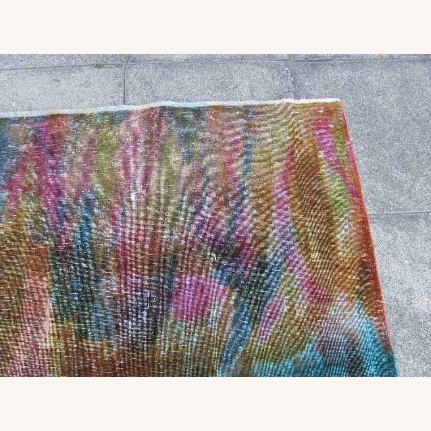 Seller’s Notes: Handmade vintage Turkish Konya distressed rug with overdyed colors. The rug is in original condition, it is distressed. It is from the end of 20th century.