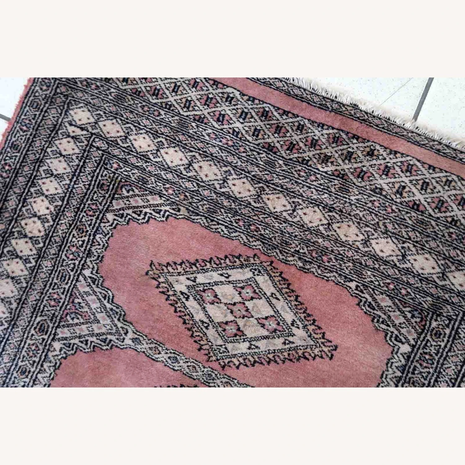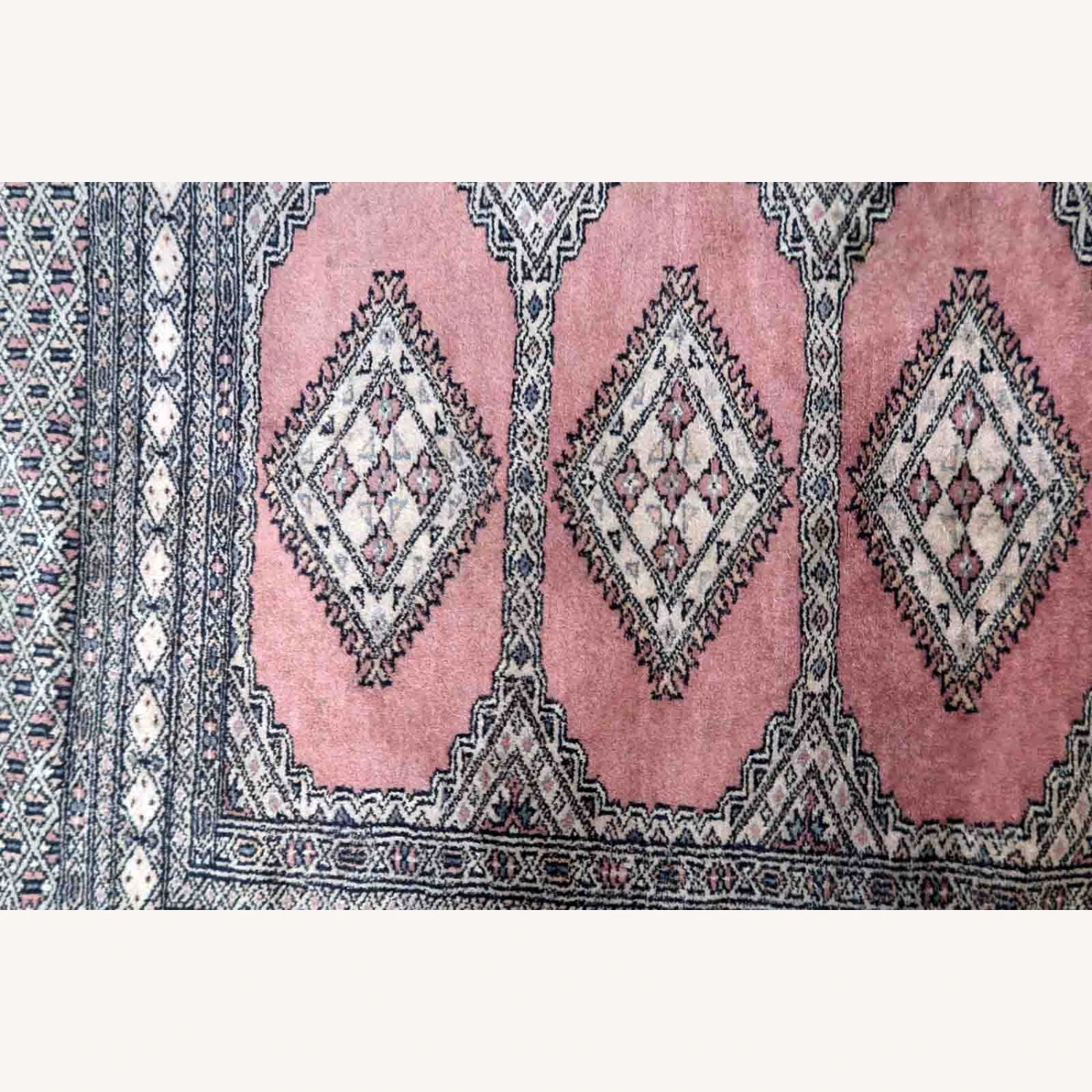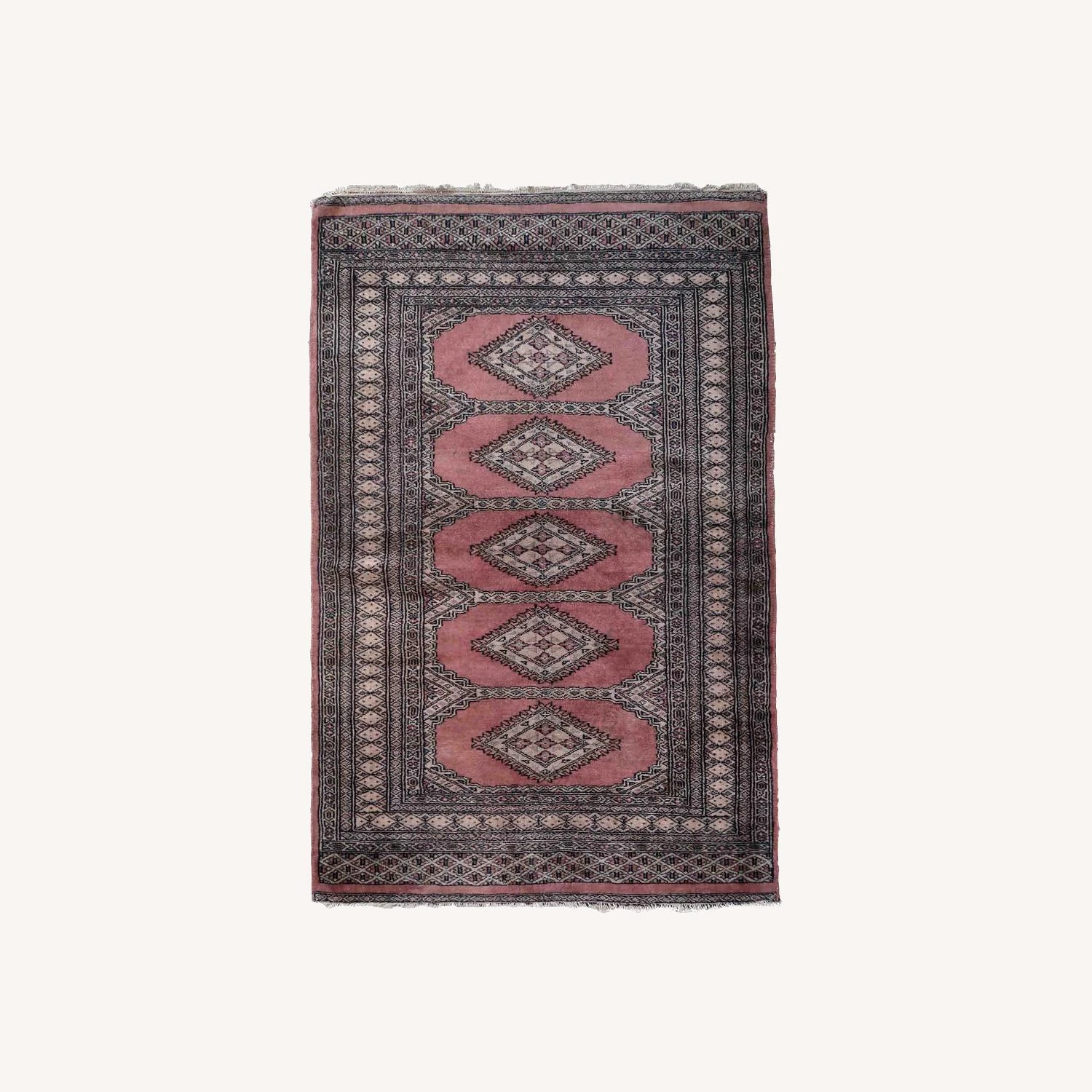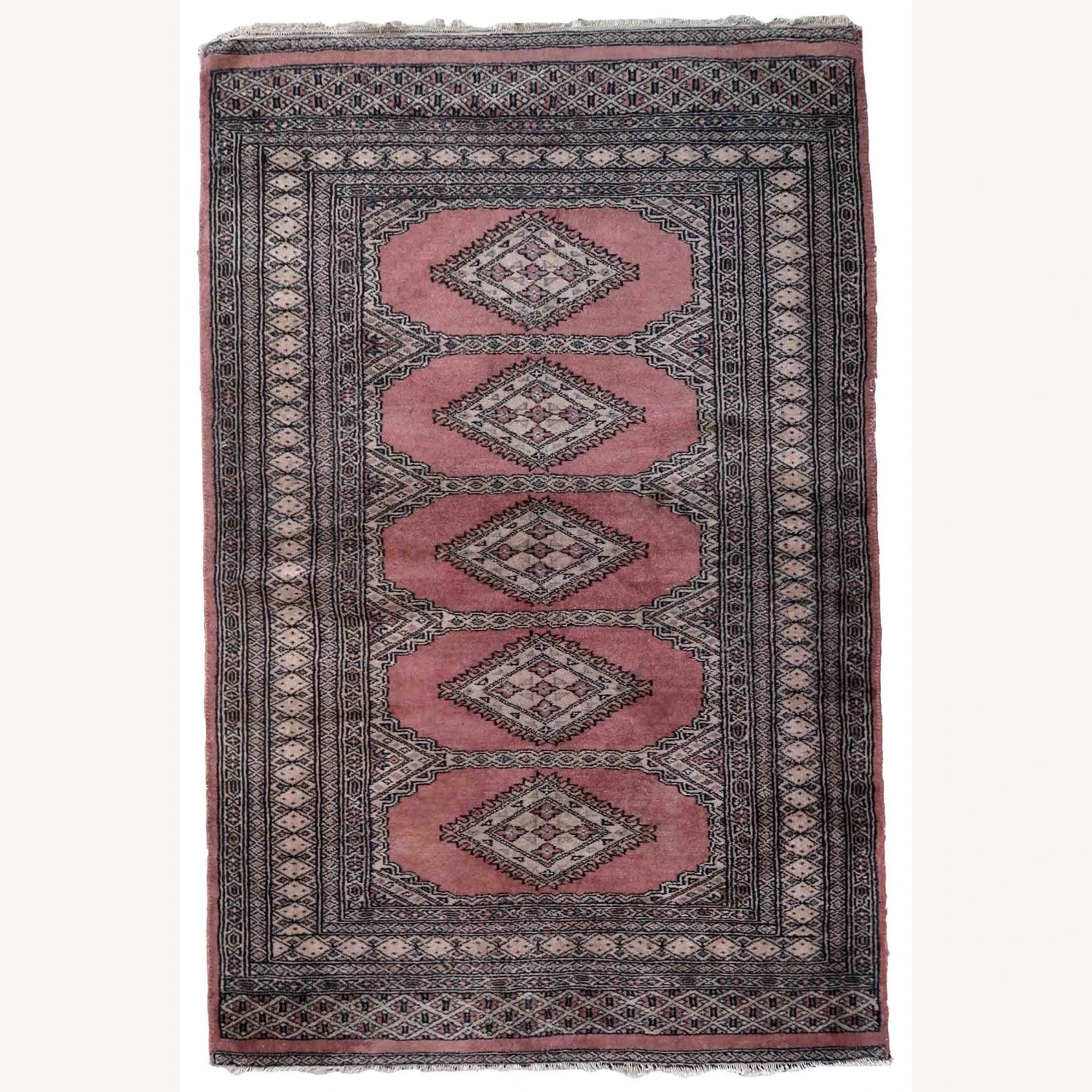 Seller’s Notes: Handmade vintage Uzbek Bukhara rug in traditional design and pink wool. The rug is from the end of 20th century. It is in original good condition.