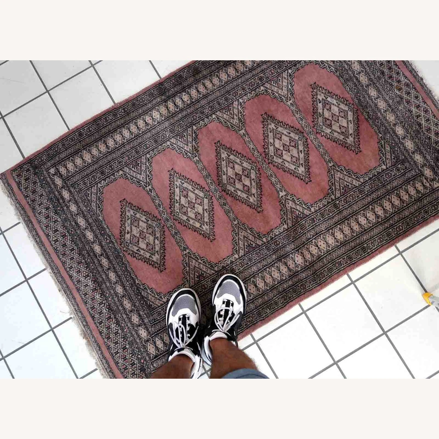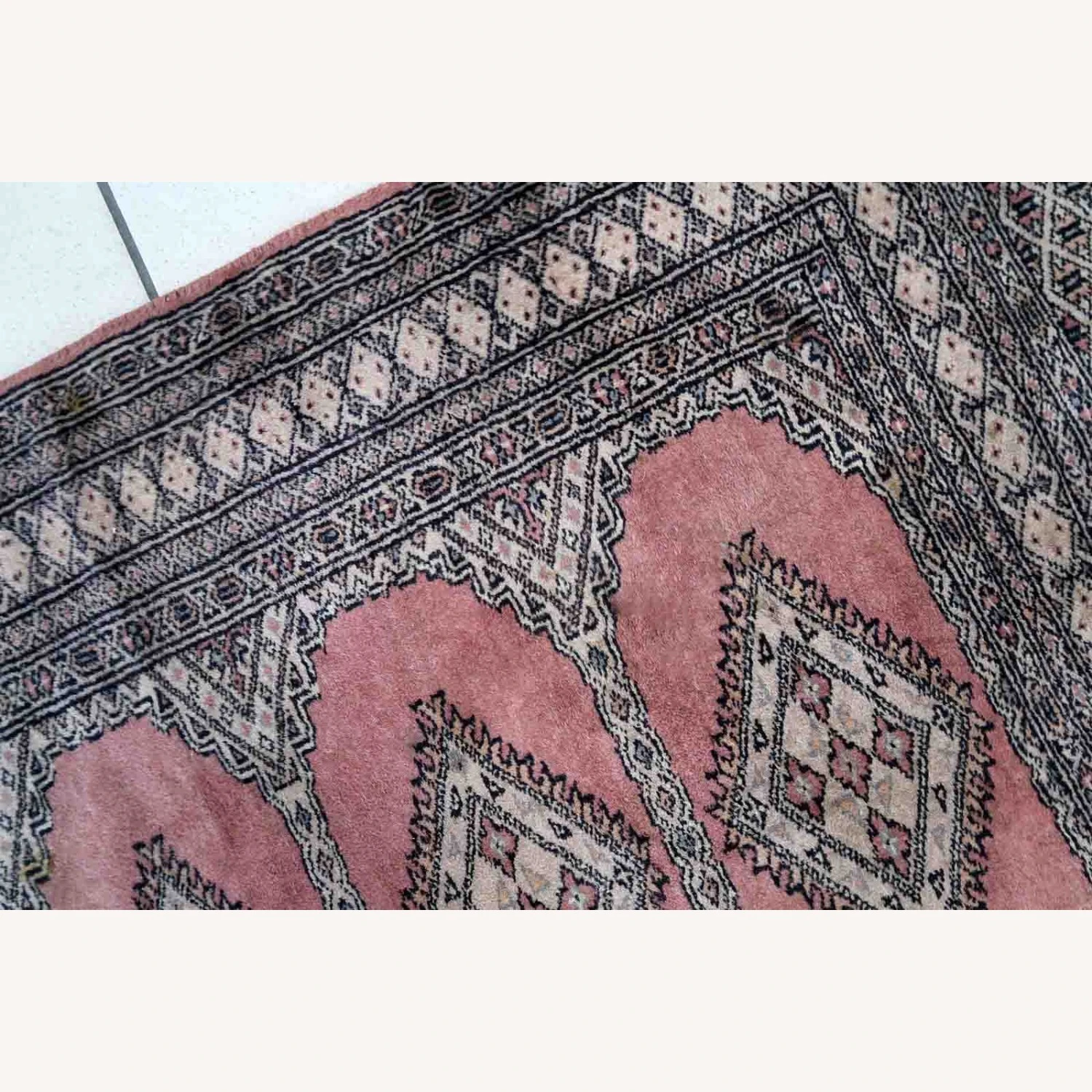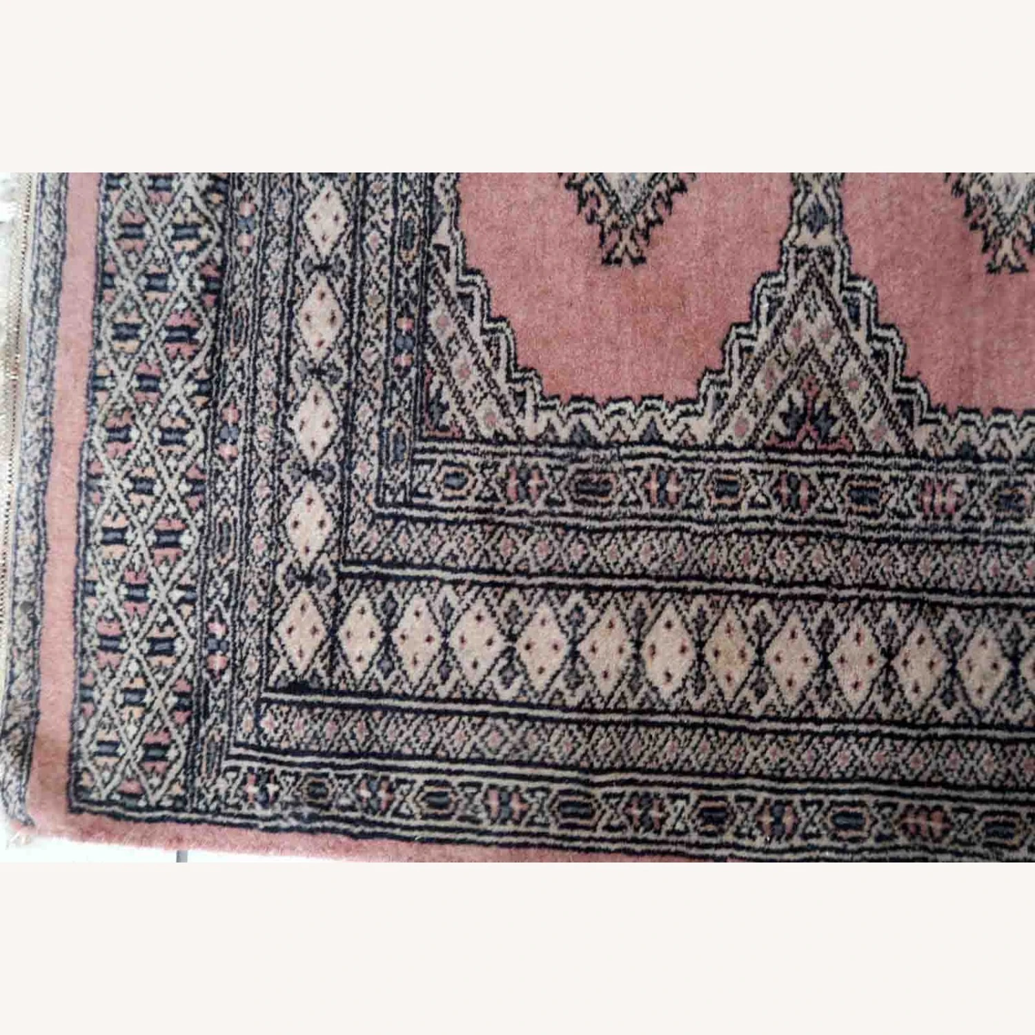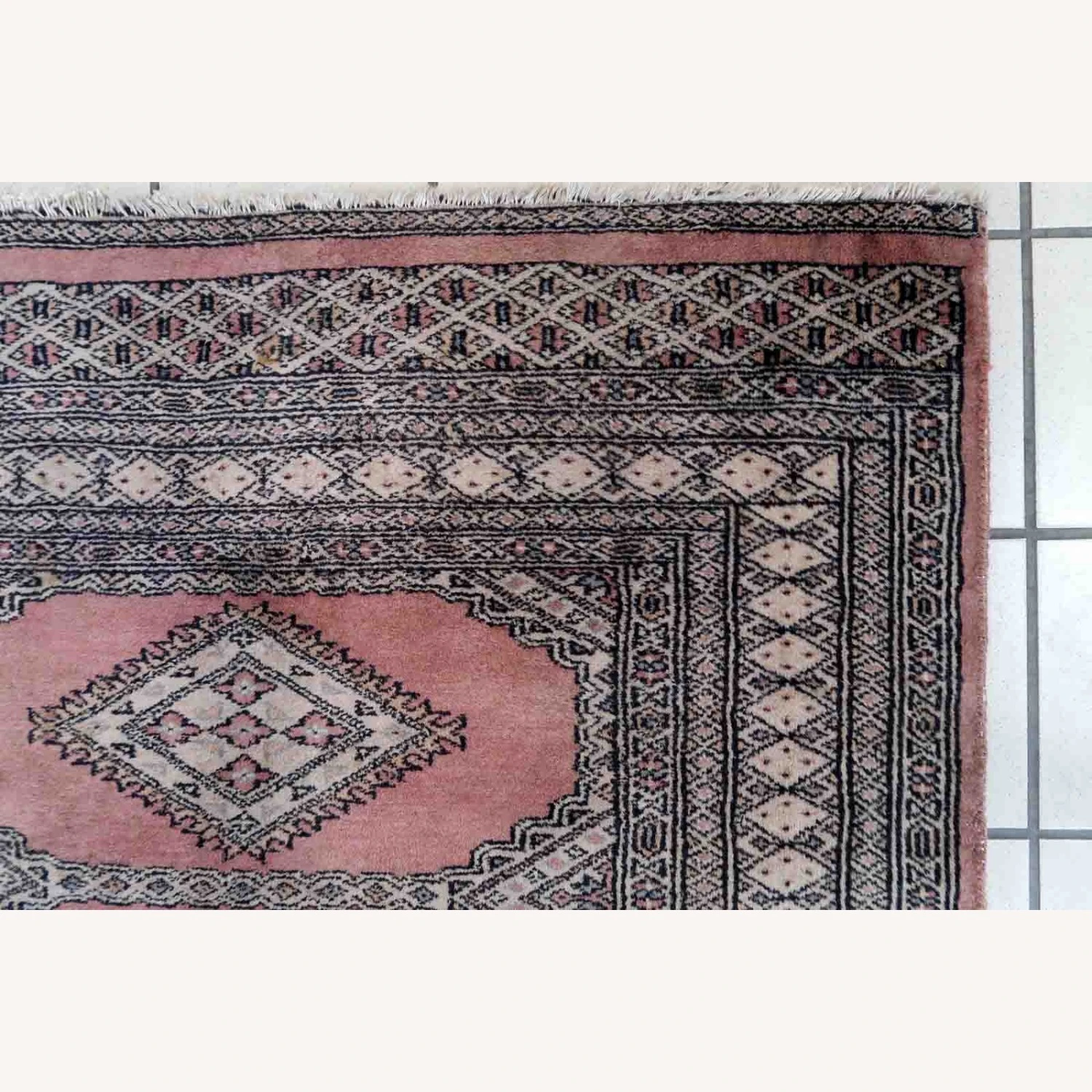 Seller’s Notes: Handmade vintage Uzbek Bukhara rug in traditional design and pink wool. The rug is from the end of 20th century. It is in original good condition.