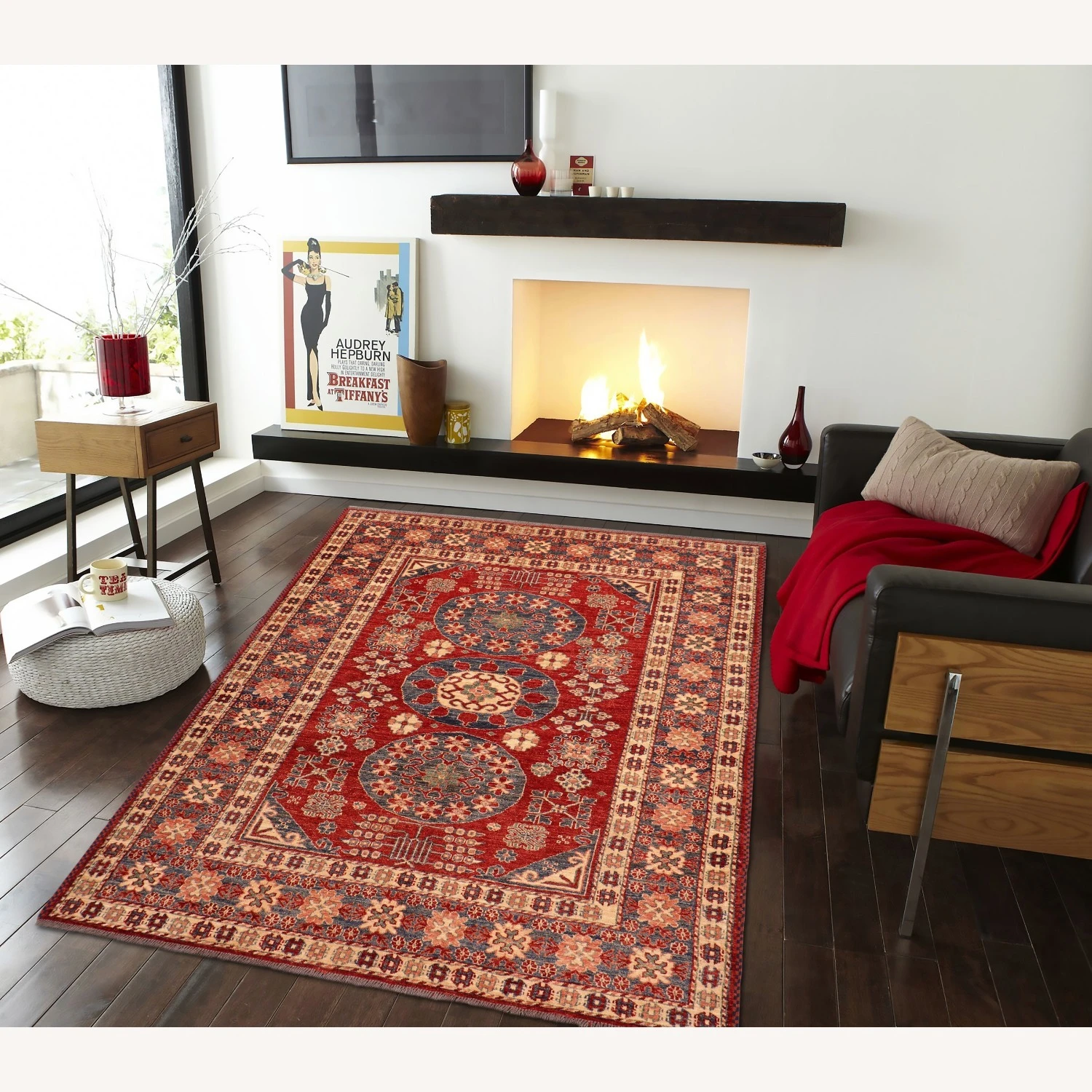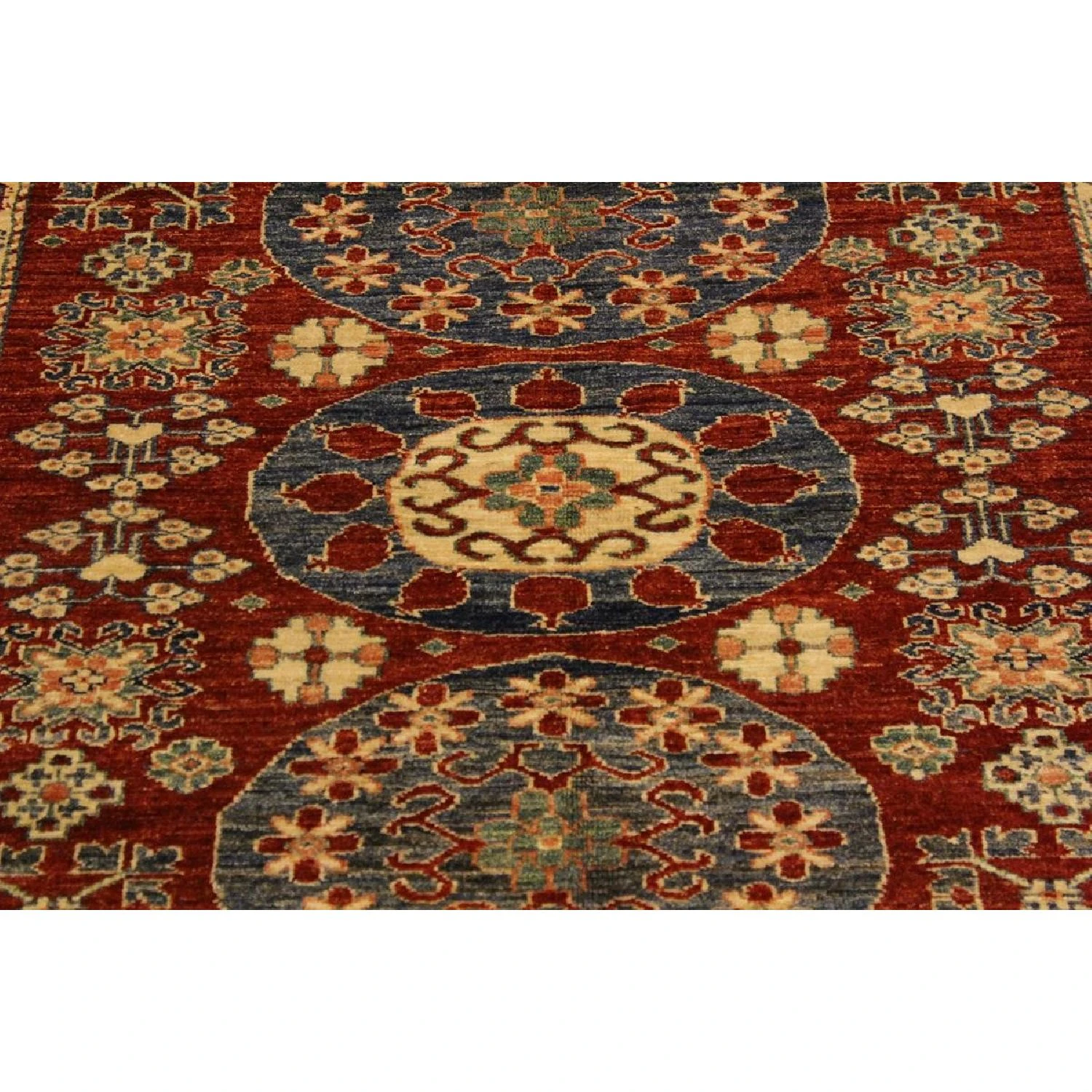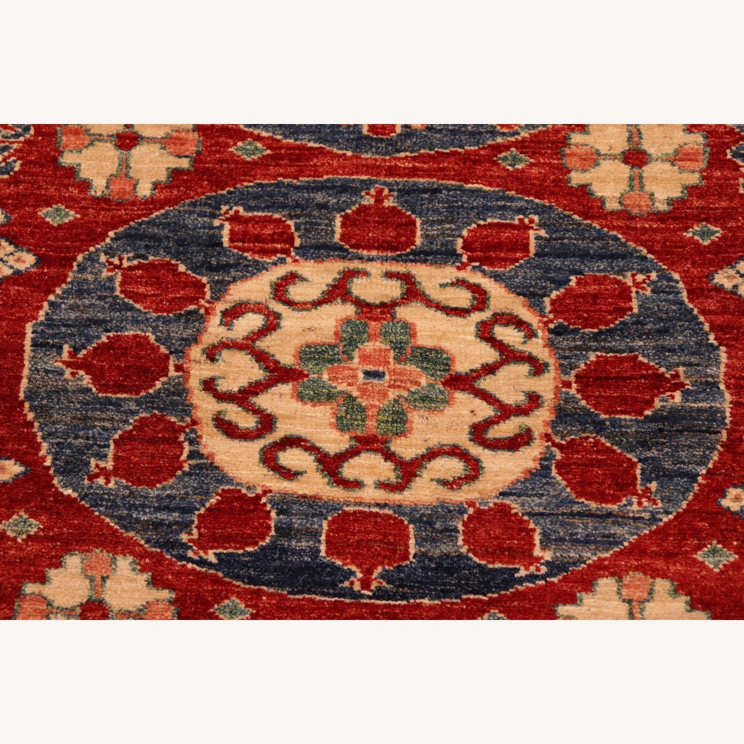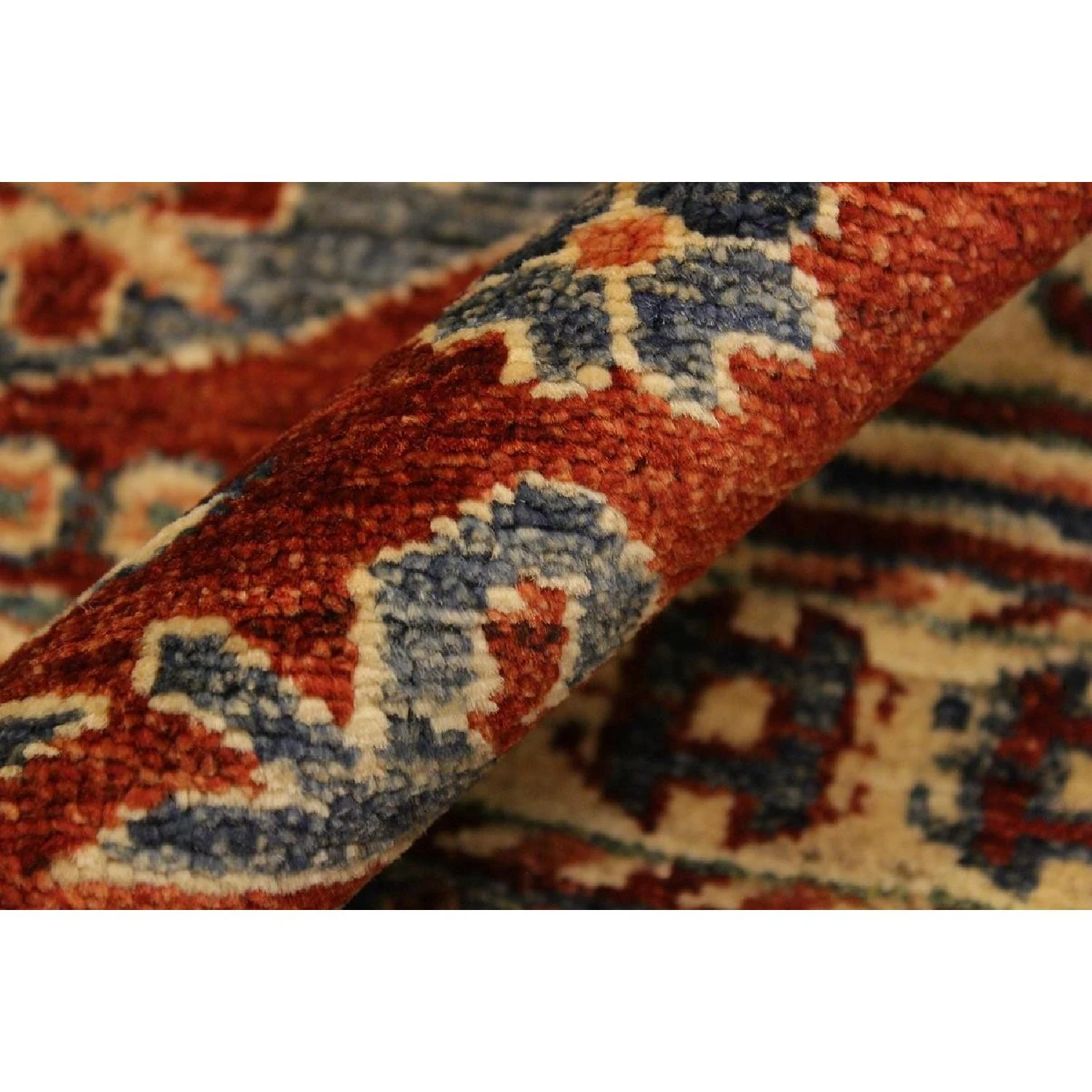 Seller’s Notes: Embellish your home with this exquisitely hand-knotted super Kazak Rug made with the finest hand spun wool and all vegetable dyes. Demonstrating incredible attention to detail, this hand-knotted masterpiece features an intricate Kazak pattern in a classic color palette. Made in the Caucasian designs from Russia and the northern Persian empire, each Kazak incorporates distinctive tribal flavor with elements such as; the stepped hooted polygons, geometrical medallions, animals and rosettes. The straight, clean lines and bold tones embody the weaving style of the Armenian and Afghani weavers known for these iconic designs. This magnificent rug featuring ยผ inch of pile and is made with handspun wool and natural dyes to produces soft luminous shades causing a beautiful sheen. With geometric designs and bold vibrant saturated colors predominately blues, reds, greens, and gold make a bold statement in any decor. The construction technique used ensures that the designs and colors are capable to withstand heavy traffic area.
