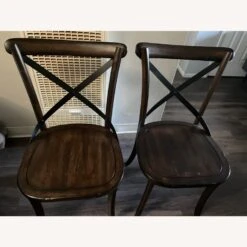 Seller’s Notes: Bought from Living Spaces in 2020, this beautiful and sturdy dining table has been great for hosting in an apartment. With some minor dings from previous moves, this table set still has so much life left and will be a nice addition to any dining area or small space.