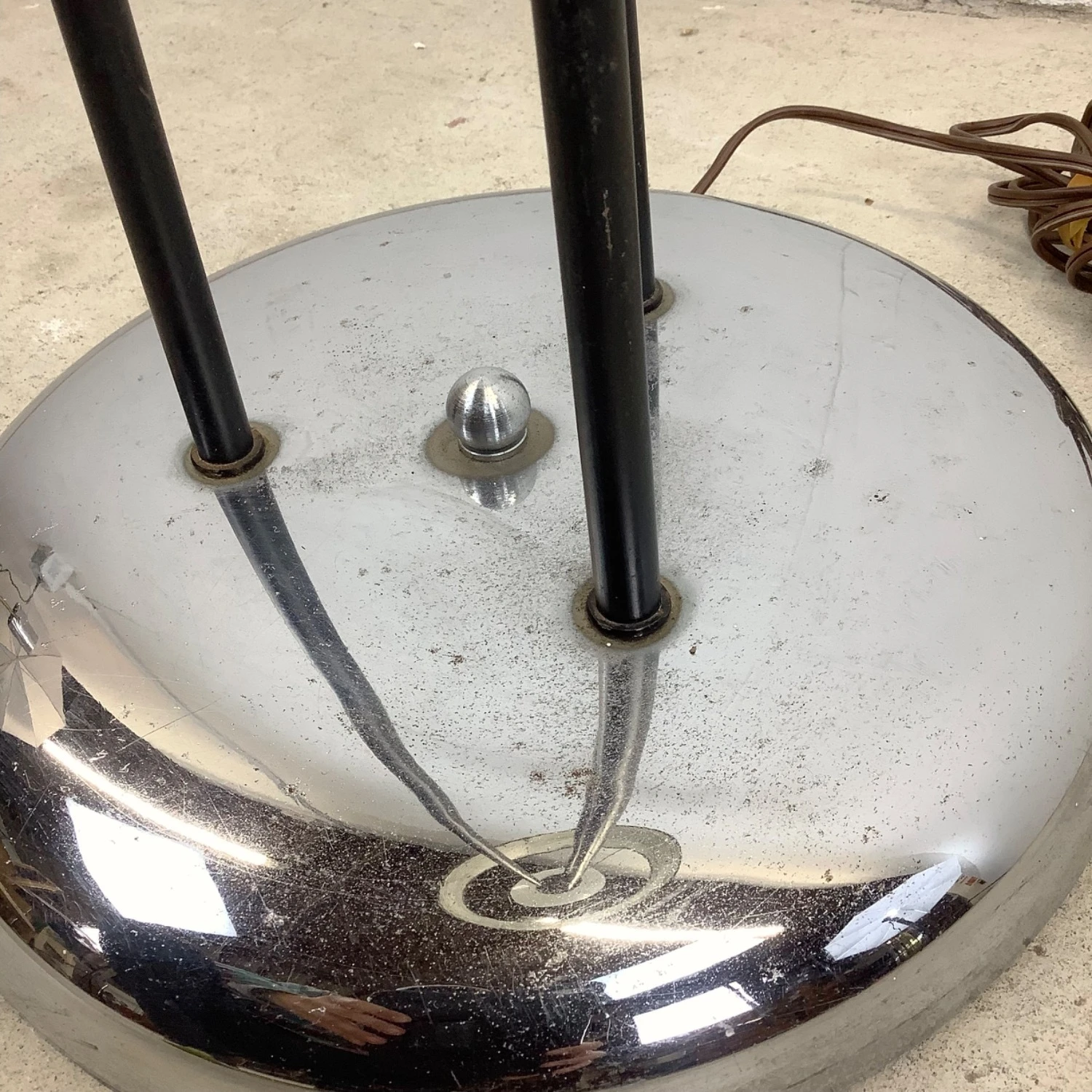 Condition: age appropriate wear, vintage finish worn, scuffs/scratches, edge wear, oxidation, losses to chrome, rewiring recommended.