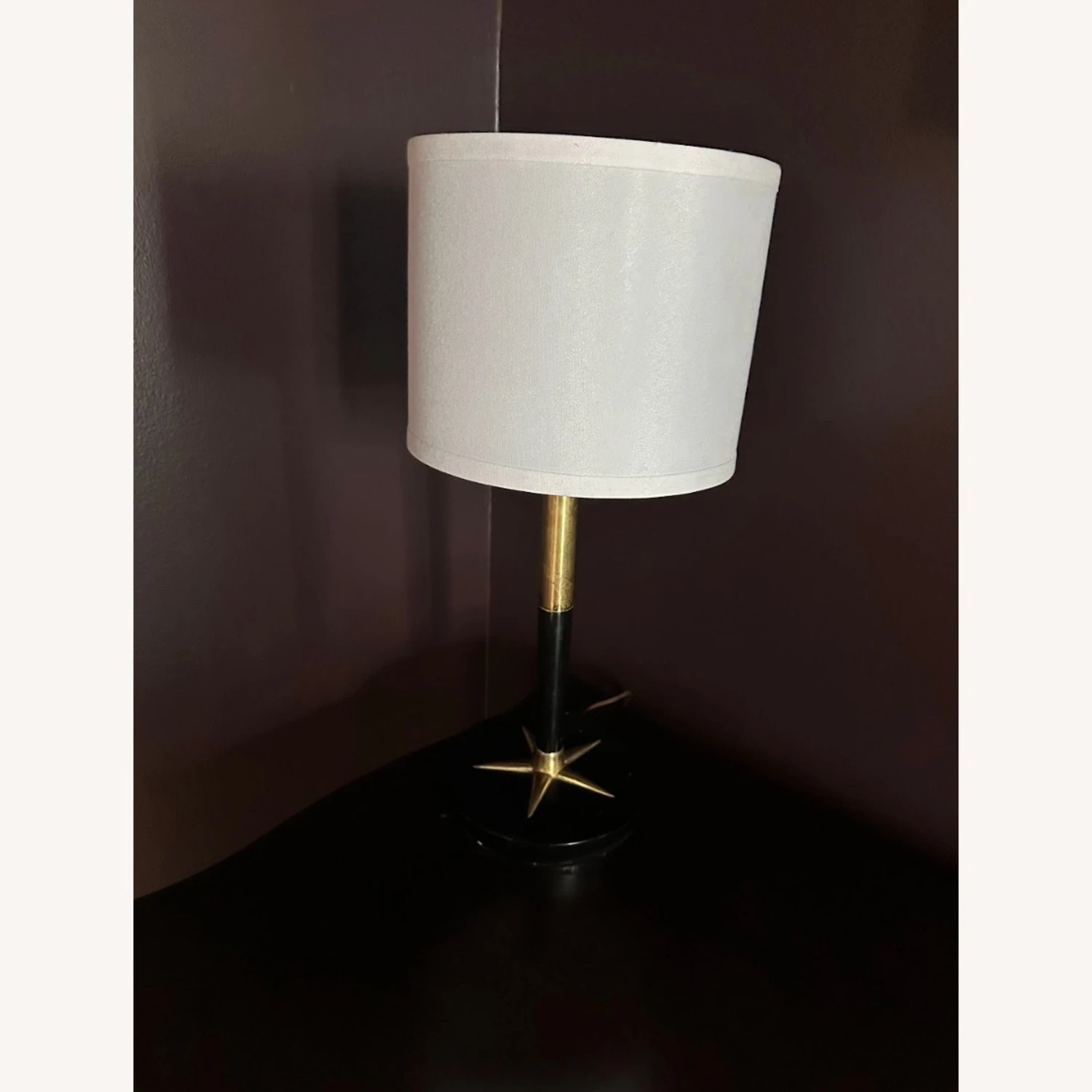 Seller’s Notes: Charming mid-century table lamp with rounded base and unique star mount.