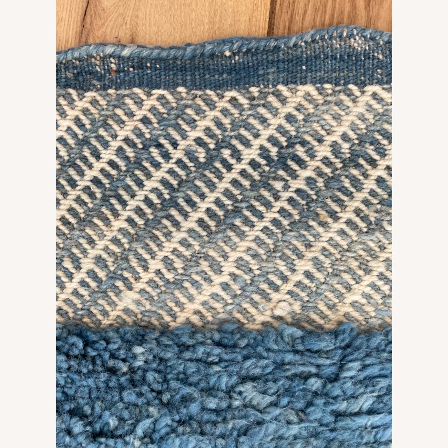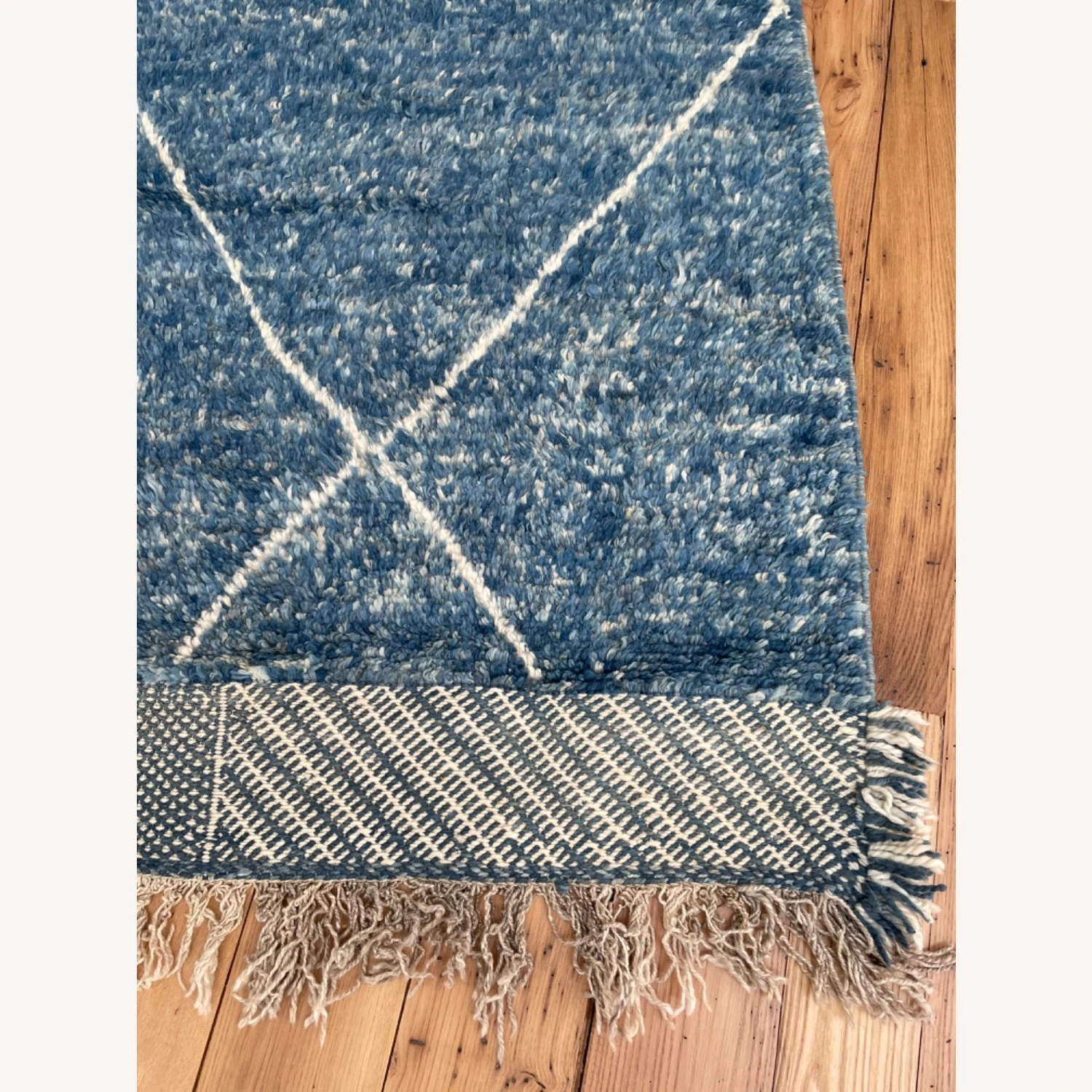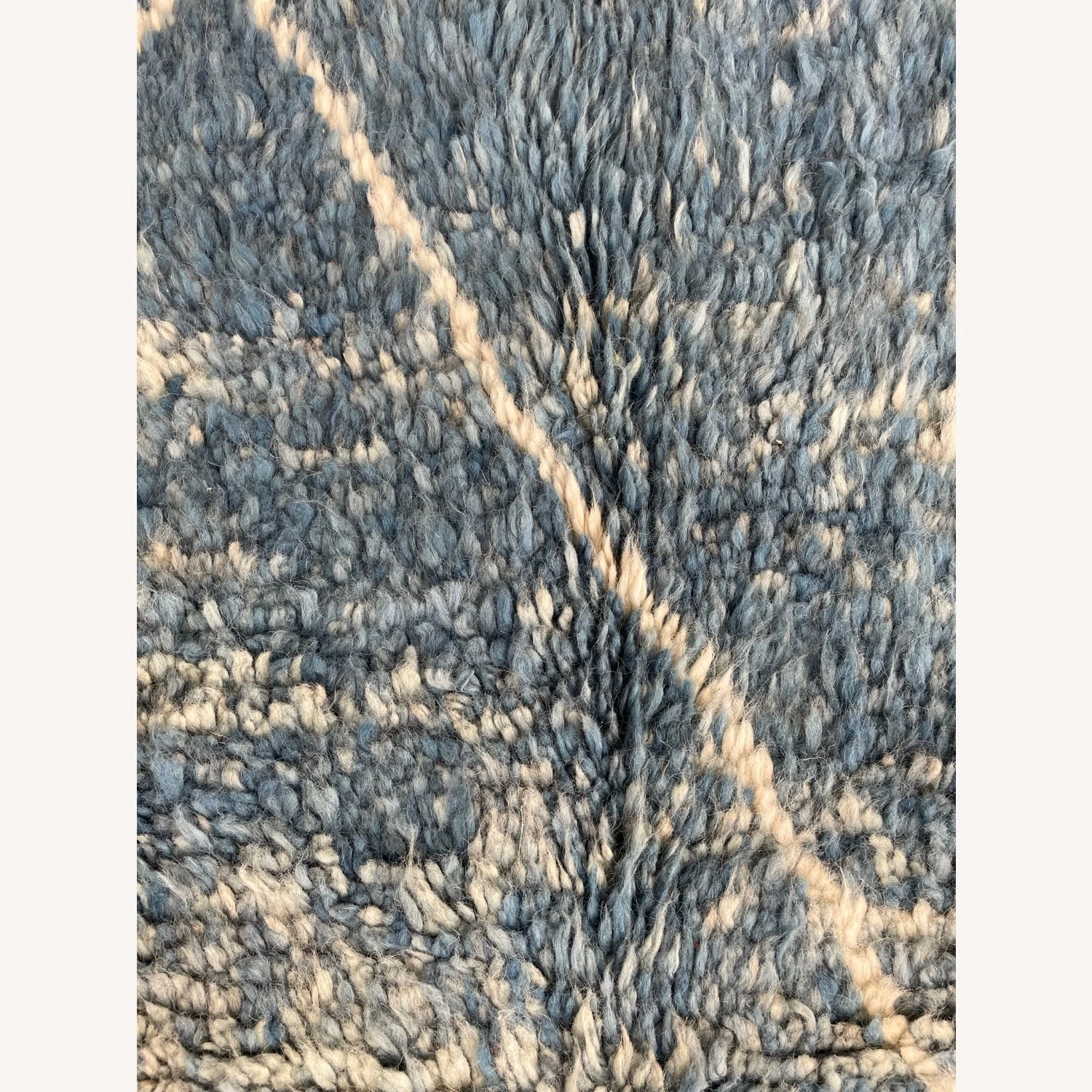 Seller’s Notes: Amazingly soft Moroccan rug, made by the Taznakht Berber tribe. Hand woven, gorgeous detailing on the fringes. Lovely blue with white flecks. All natural organic wool. Sourced by myself in Morocco, for my company, “vintage maroc.”