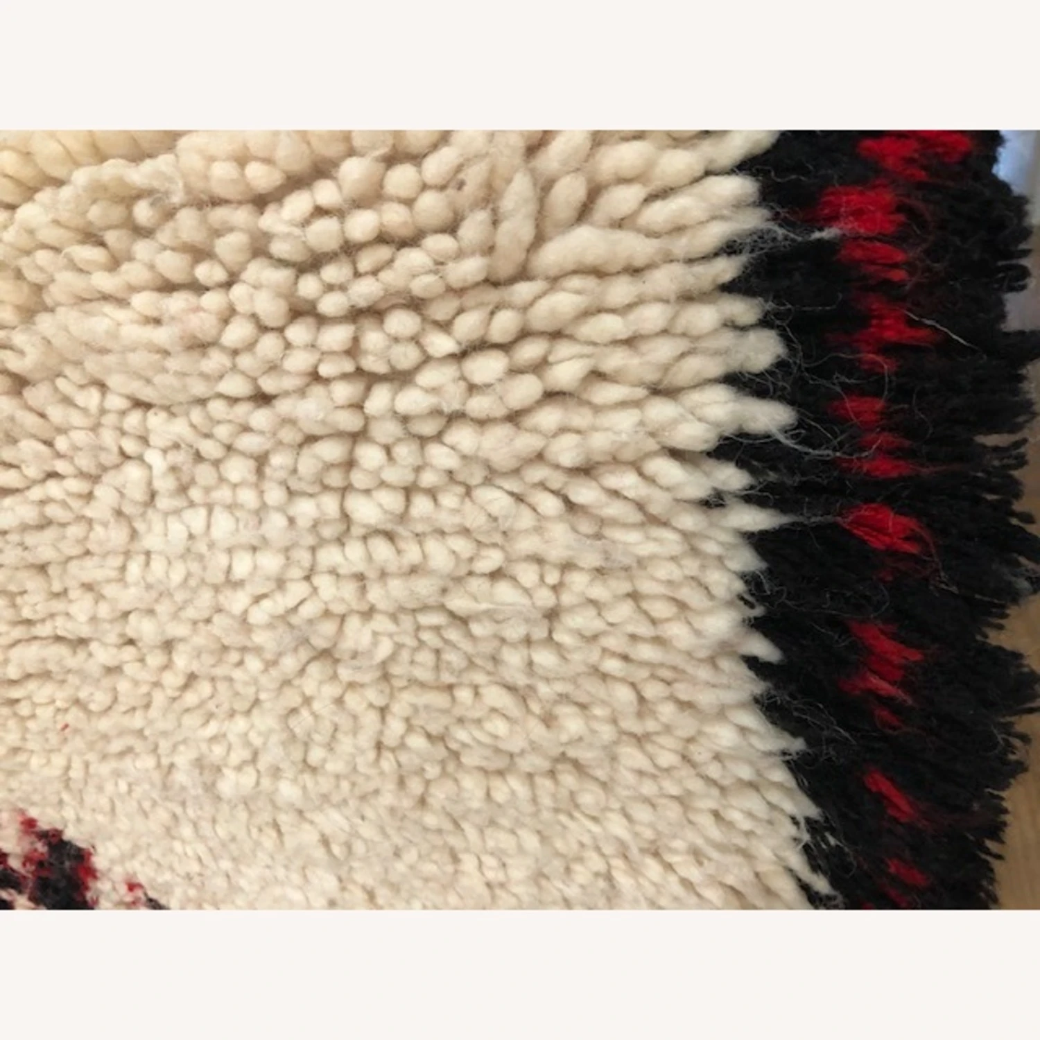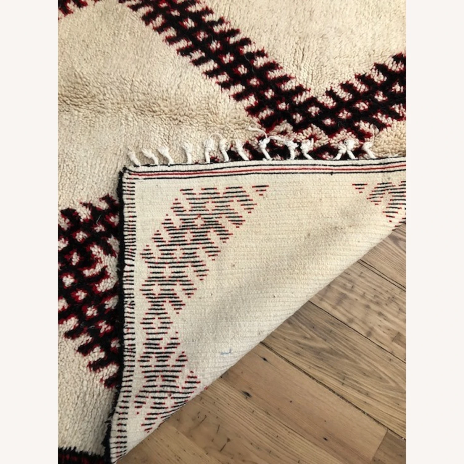 Seller’s Notes: Thick, thick, thick, heavy duty Moroccan rug in a lovely natural wool color with black and red accents. So plush and comfortable! Sourced myself in Morocco for my company, vintage maroc. Great for a bedroom or home office. 6’6”x10’3”