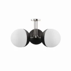 โข Adding contemporary charm to a kitchen, dining room, bedroom, office, hallway, entryway, or other living space, this spherical light fixture features frosted glass shades that attach to matte black metal bases.