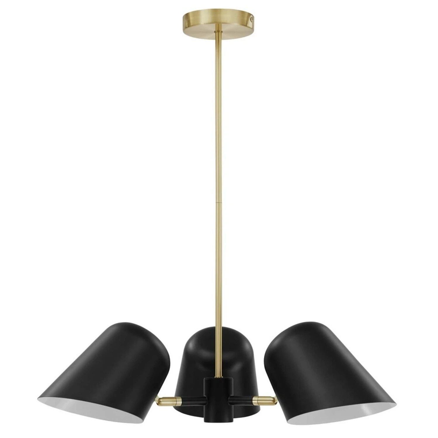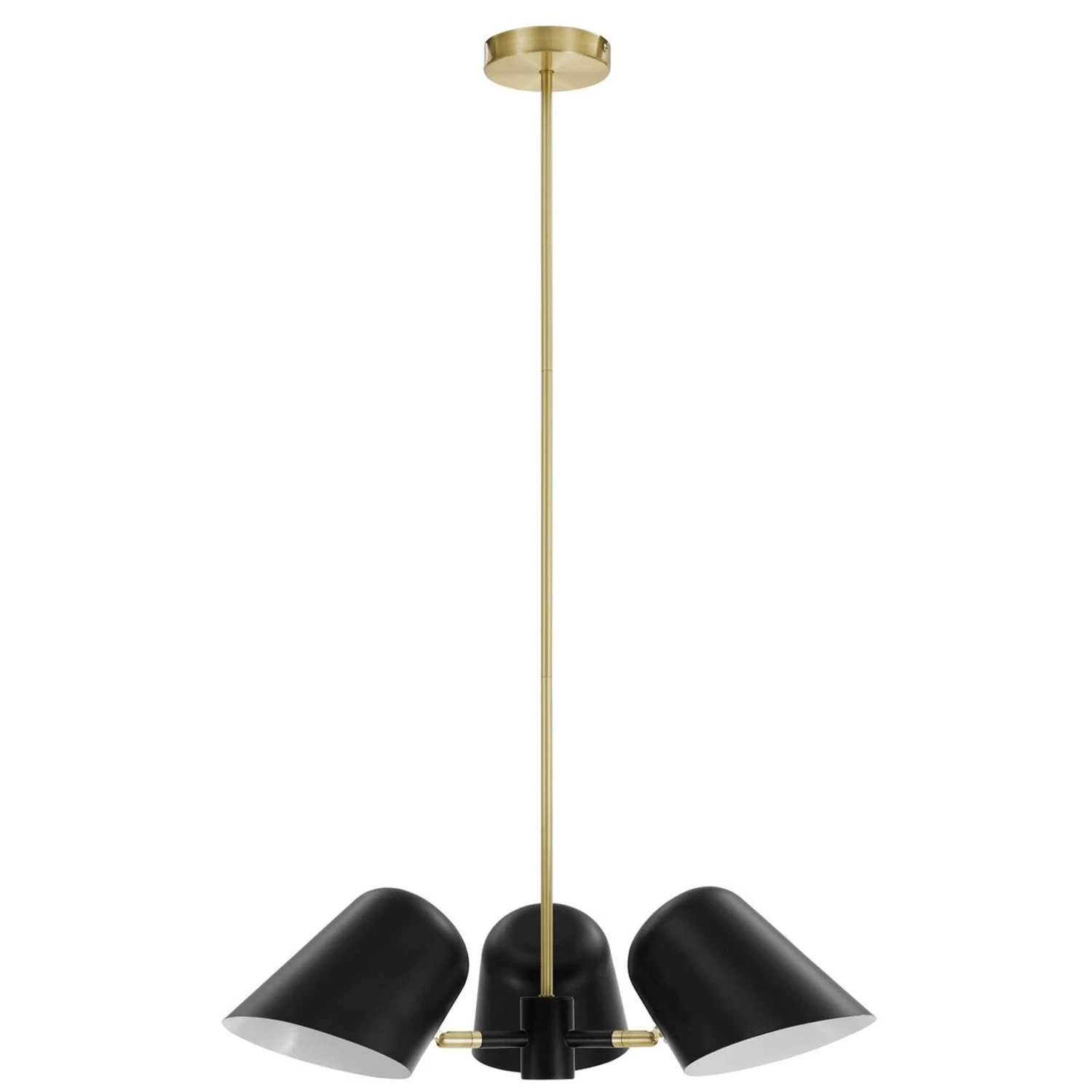 • A powder-coated satin brass ceiling canopy, height-adjustable hanging rods, and three pleasingly asymmetrical lampshades infuse this hanging light with character and presence.