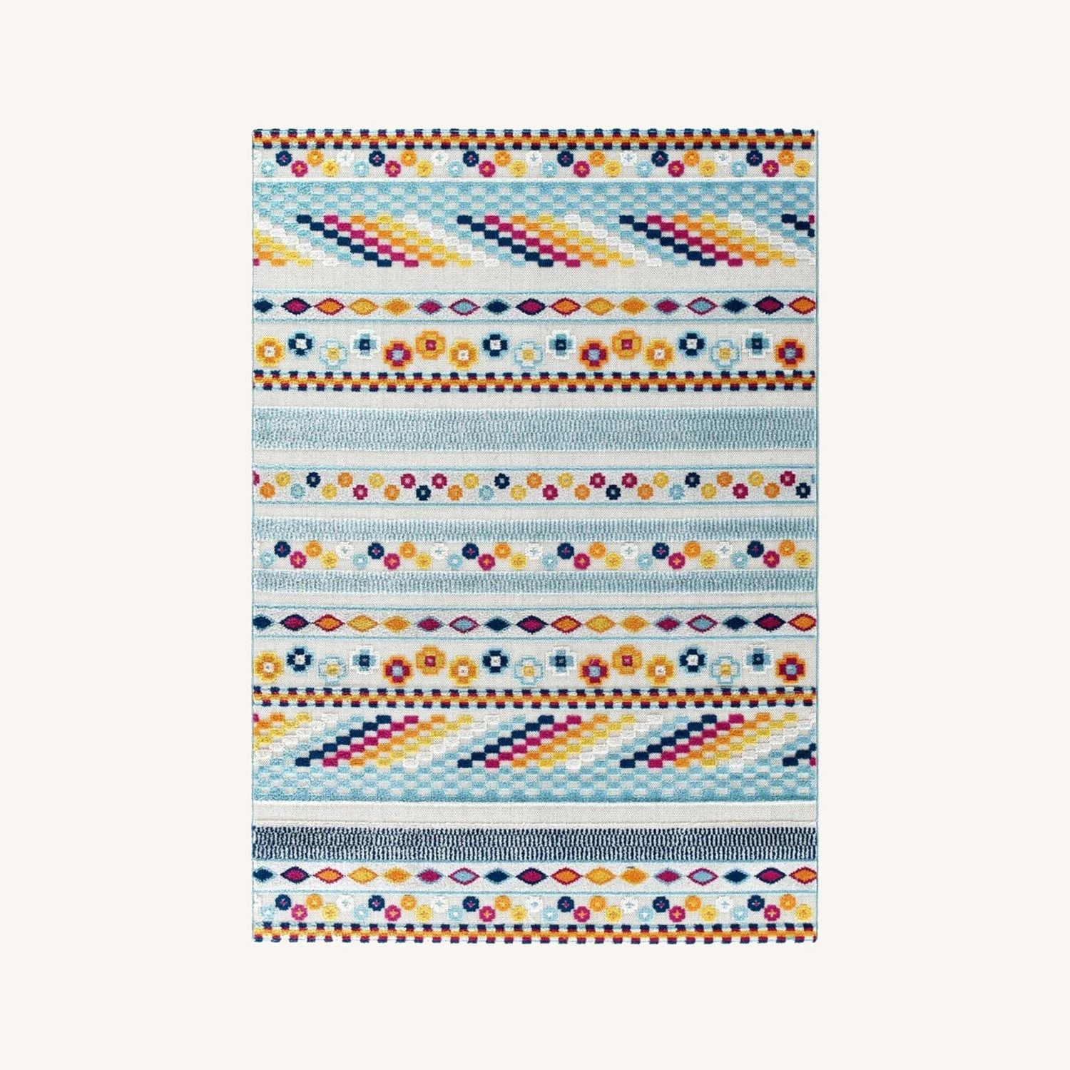 โข Featuring a distressed abstract geometric design with a low two-tier pile weave and gripping rubber bottom, this all-weather area rug is a perfect addition to the outdoor patio, porch, deck, or inside the house in the living room, bedroom, kitchen or dining room.