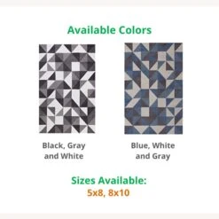 This model comes in these BLACK, GRAY & WHITE and BLUE, WHITE & GRAY, and these sizes: 5×8 and 8×10, CHAIR. If you are interested in a color/size other than that of this listing, and if the quantity you wish to purchase is greater than what is listed here, please message us for availability.