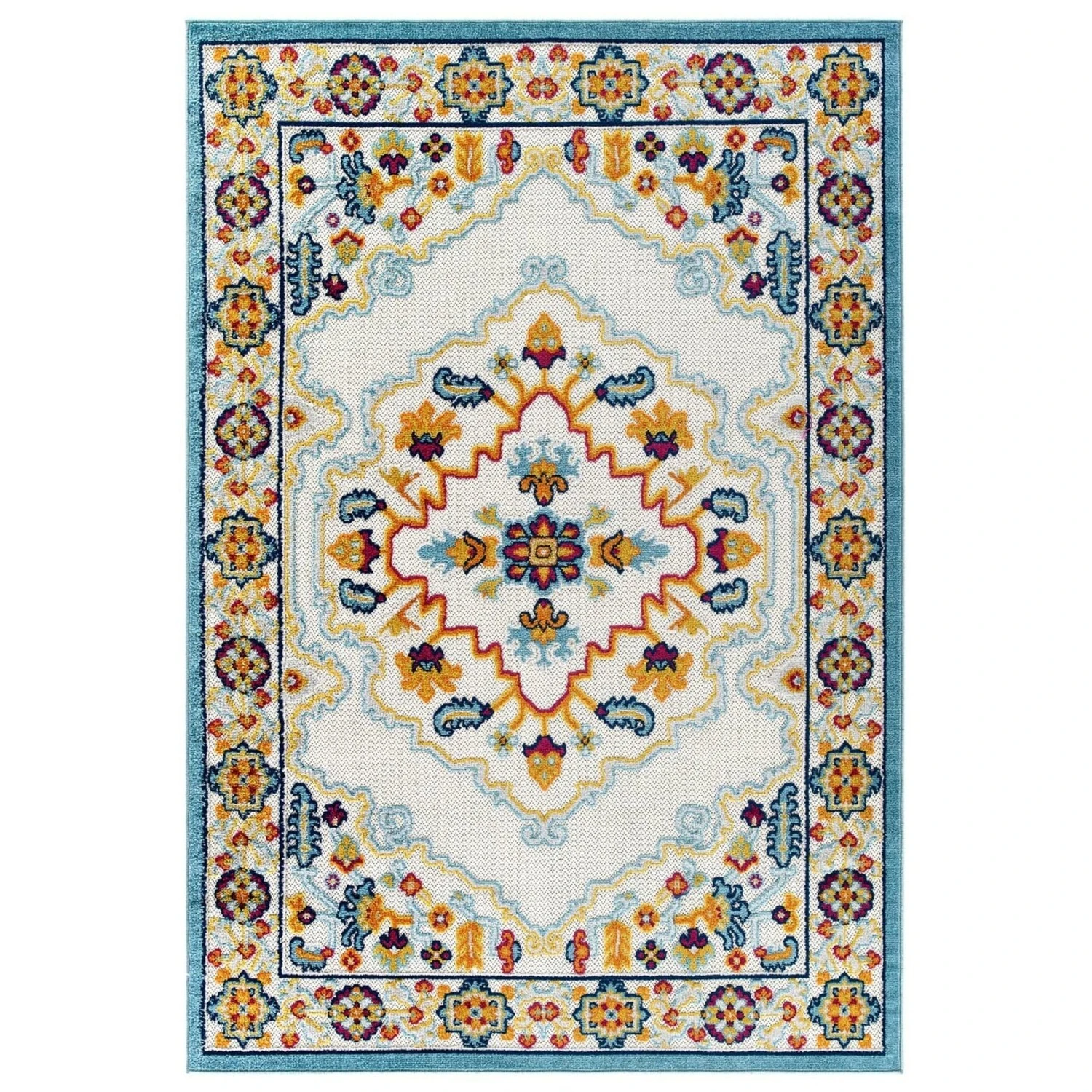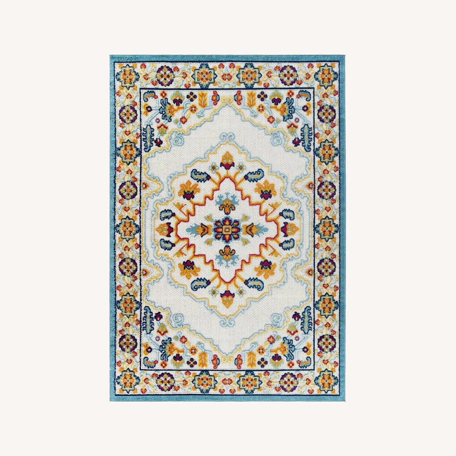 • Featuring a distressed Persian medallion design with a low two-tier pile weave and gripping rubber bottom, this all-weather area rug is a perfect addition to the outdoor patio, porch, deck, or inside the house in the living room, bedroom, kitchen or dining room.