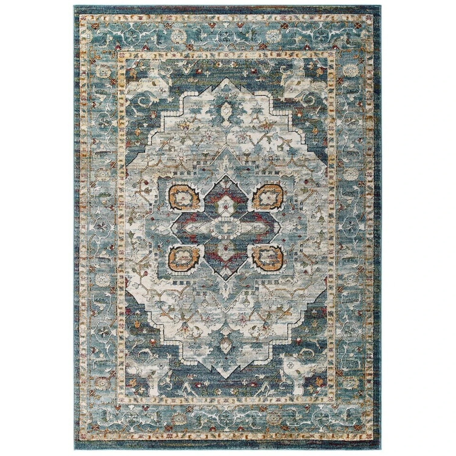 • Patterned with an elegant Persian medallion design, this is a durable machine-woven frise polypropylene and polyester rug.