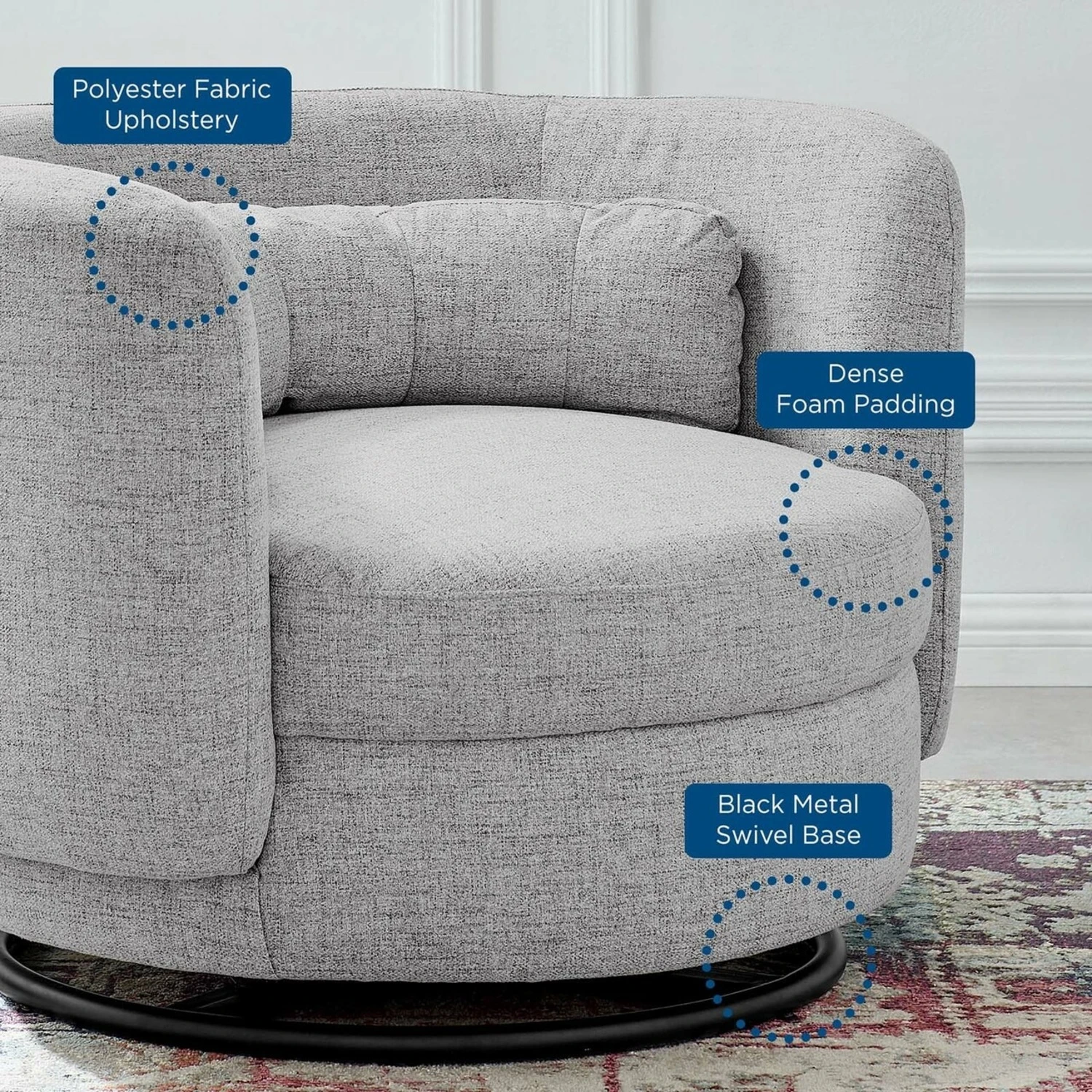 • Perfect for the living room, entryway, bedroom, office, or other seating area, this Fabric Upholstered Swivel Chair brings luxury and relaxation to the modern home.