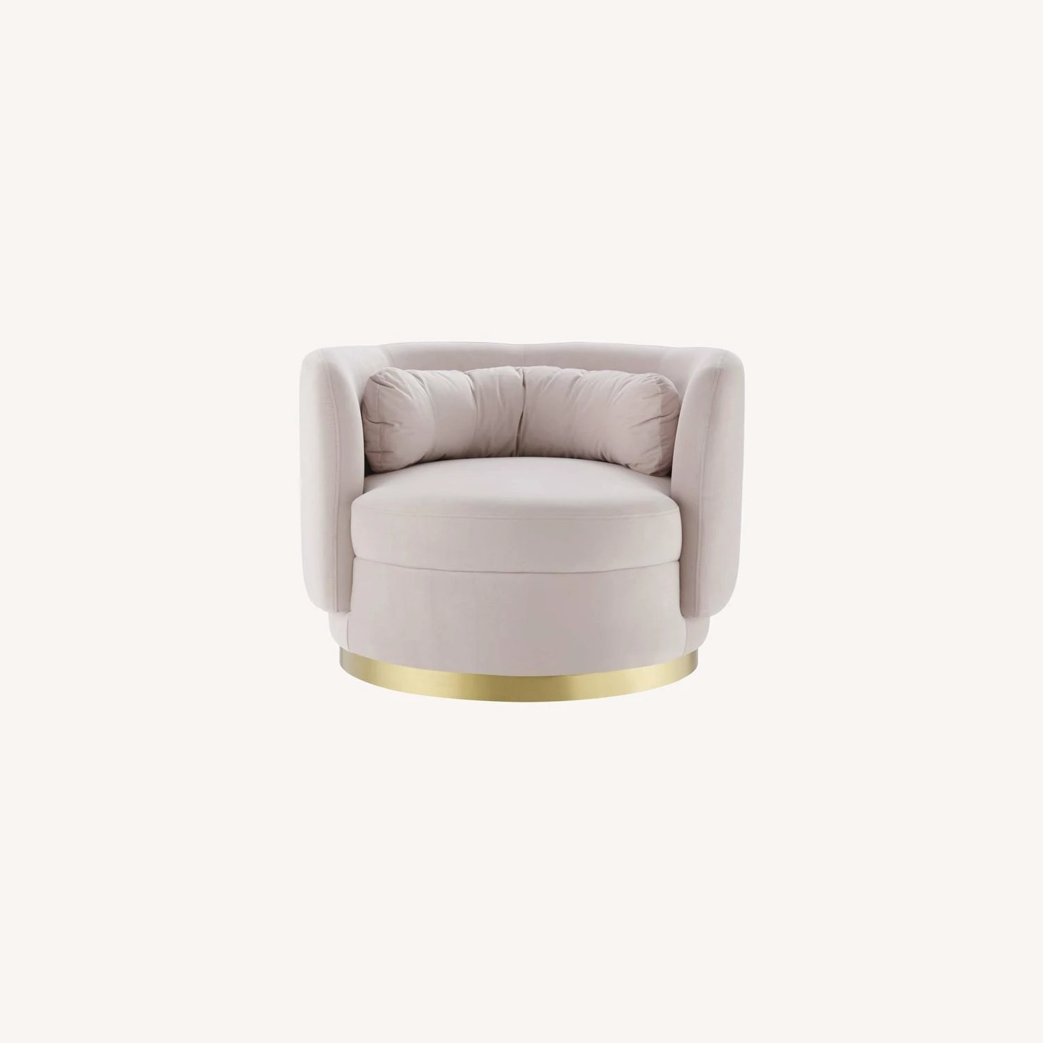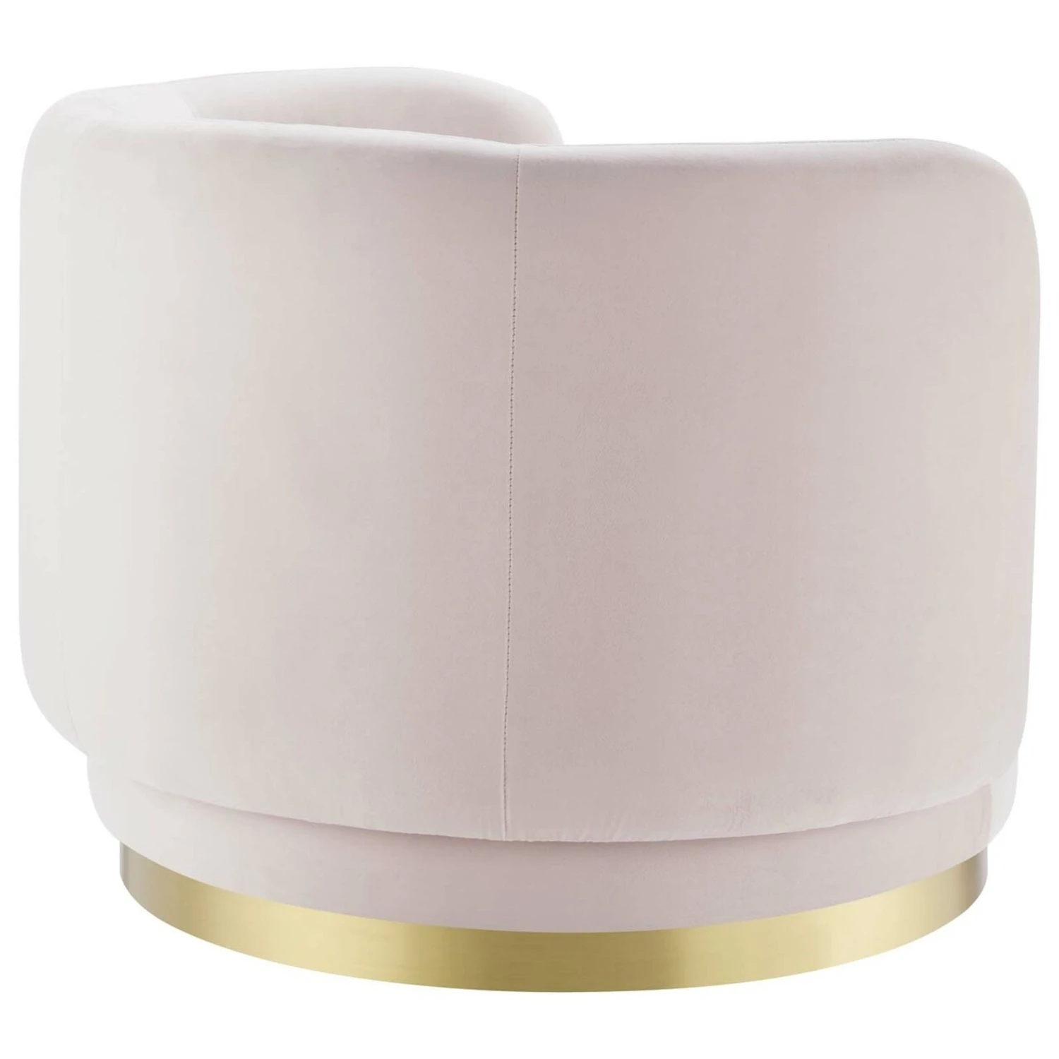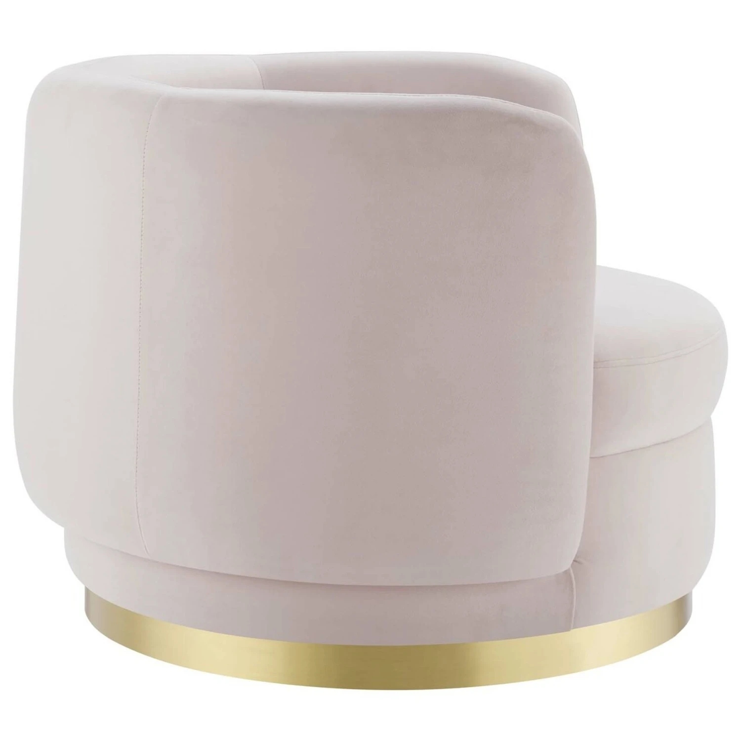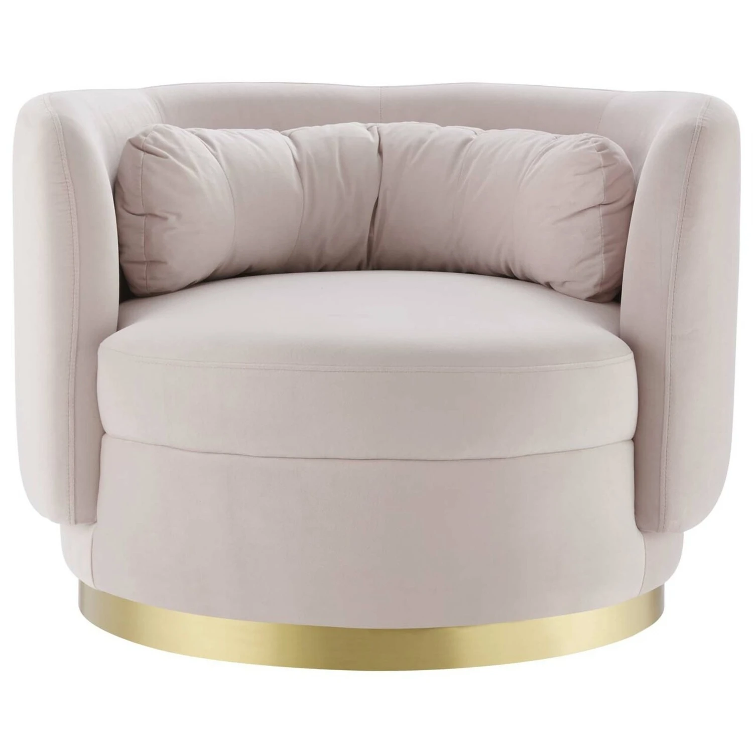 • Resting on a gold metal swivel base, this accent chair effortlessly rotates to suit the needs of the moment.