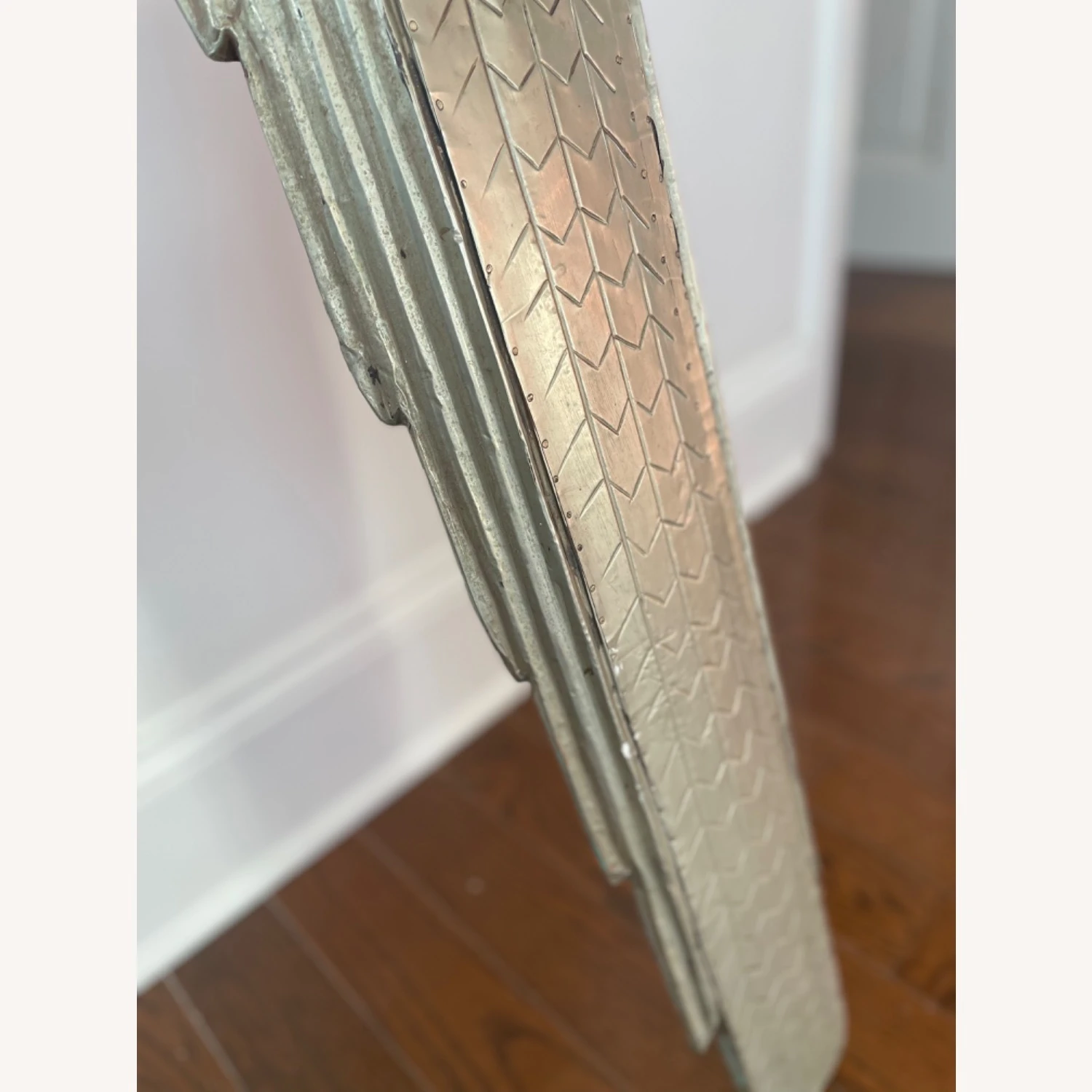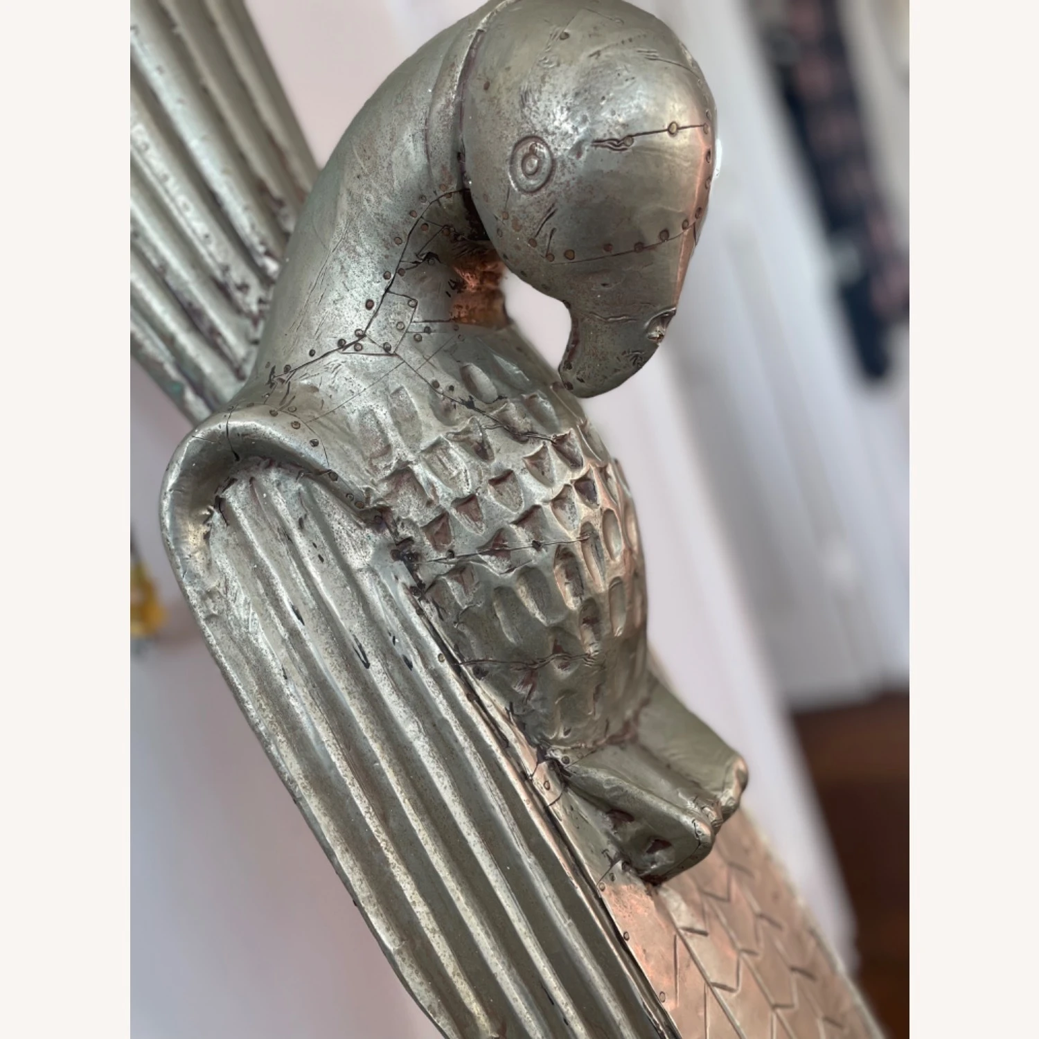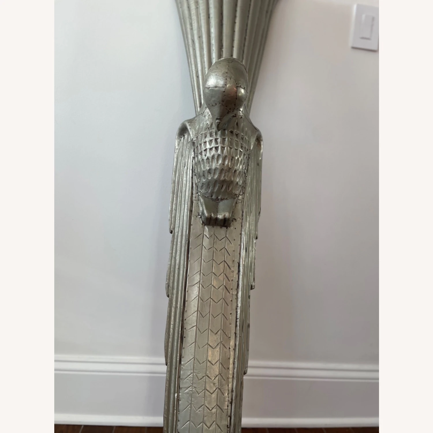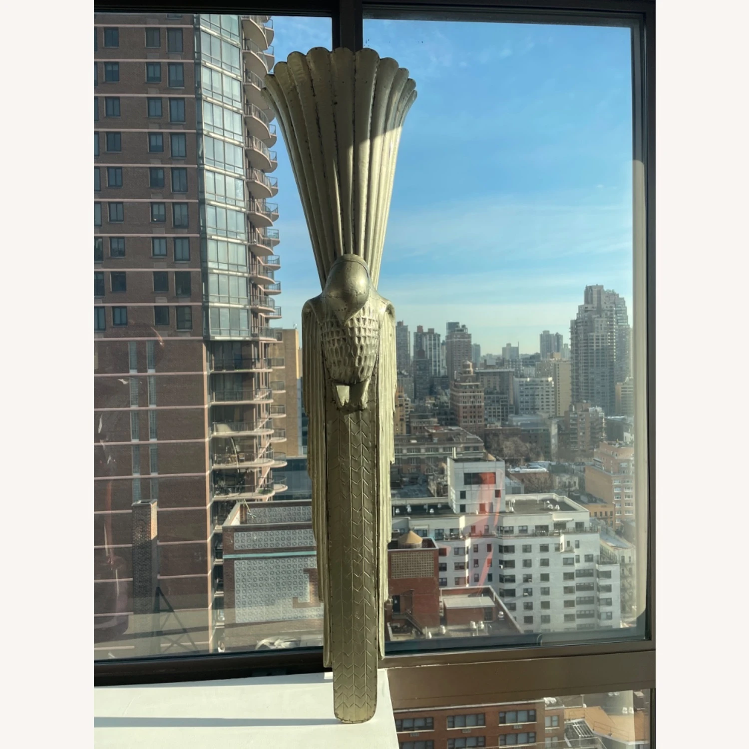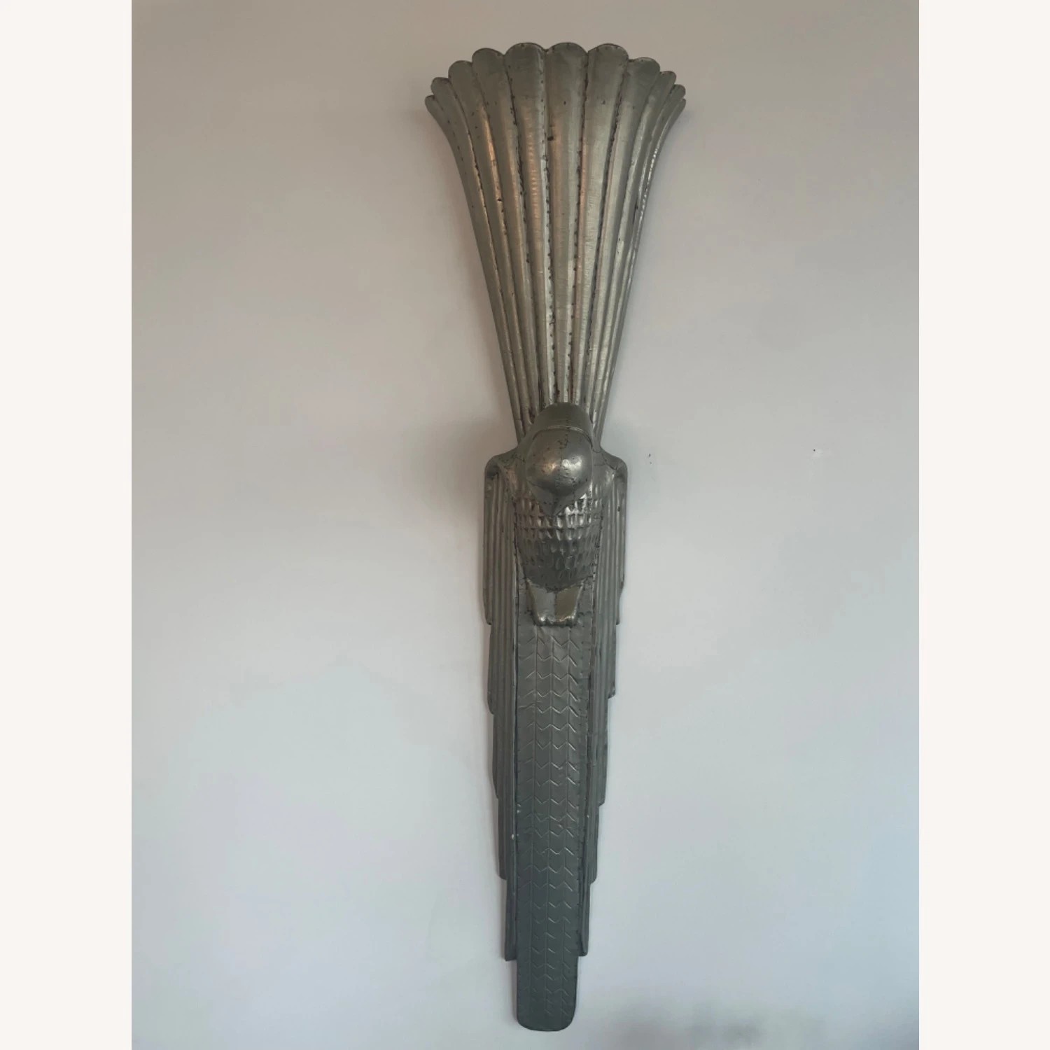 Seller’s Notes: We found these at the Design Center (Dcota) in Ft Lauderdale and they flanked our dining room in Fl. We love them but donโt have room in our nyc apt. They are matte silver in color and hand made sculptures that can be used as lights ( plug and bulb inside) or just beautiful objetโs dโarte! They look like they came off the Chrysler building!