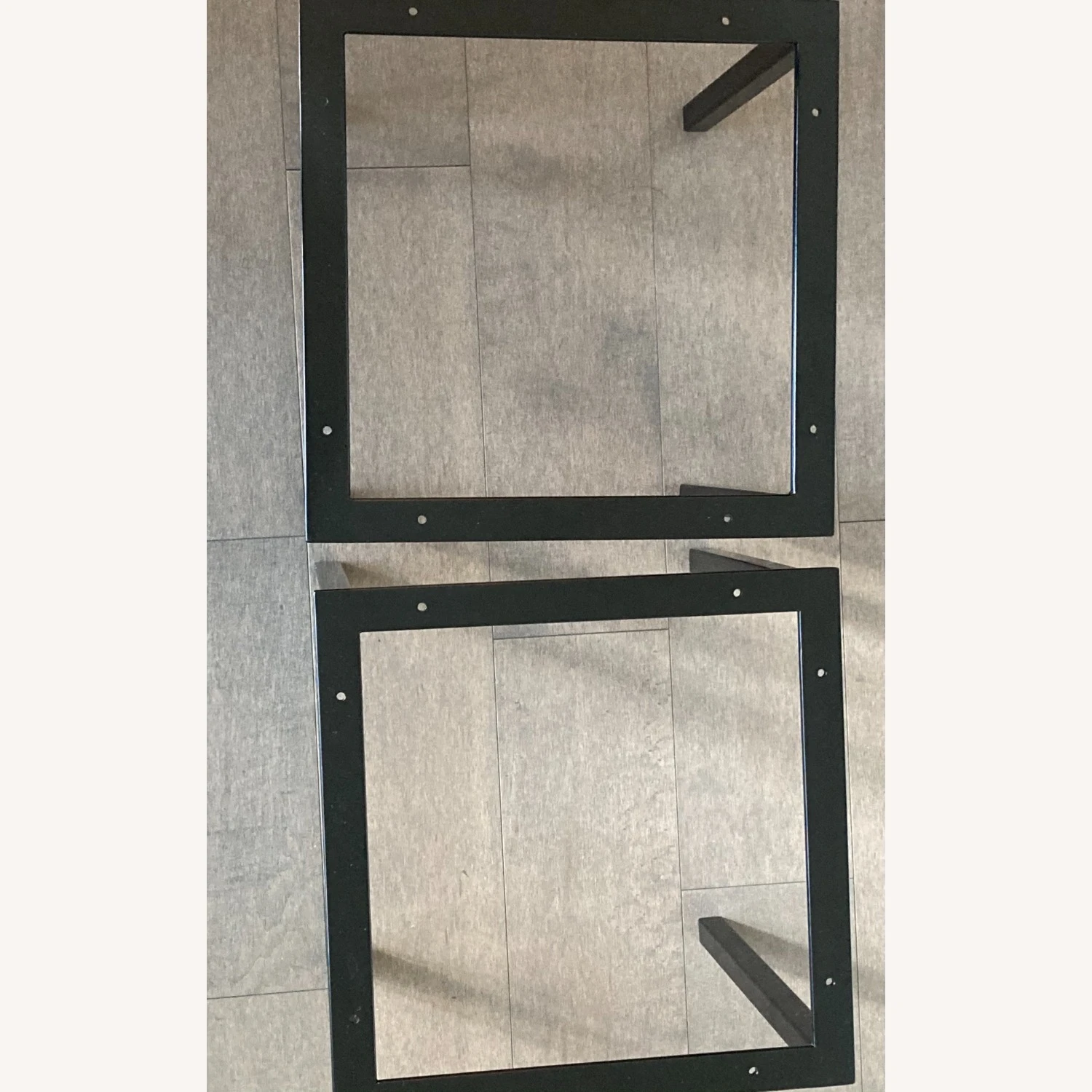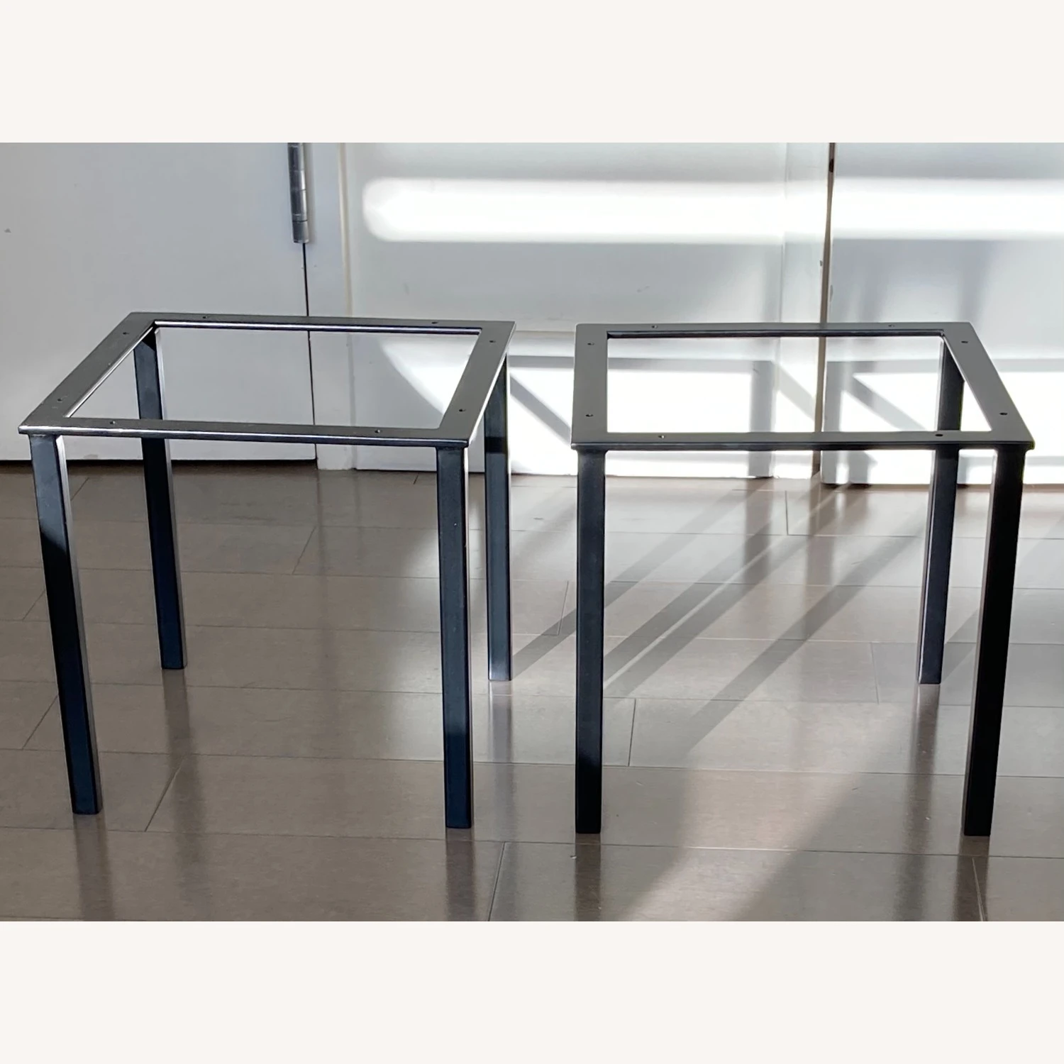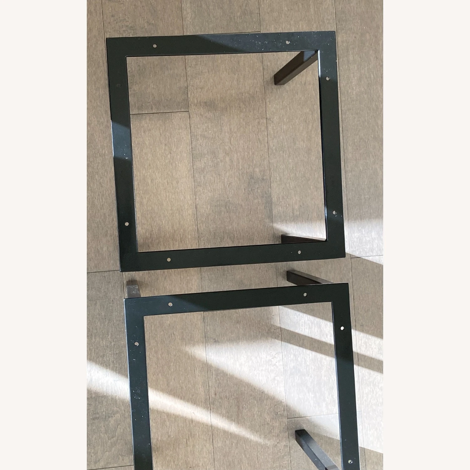 Black metal base legs to use for bench, stool or ottoman. You can build an add-on top surface or simply use a cushion or tray on top.
