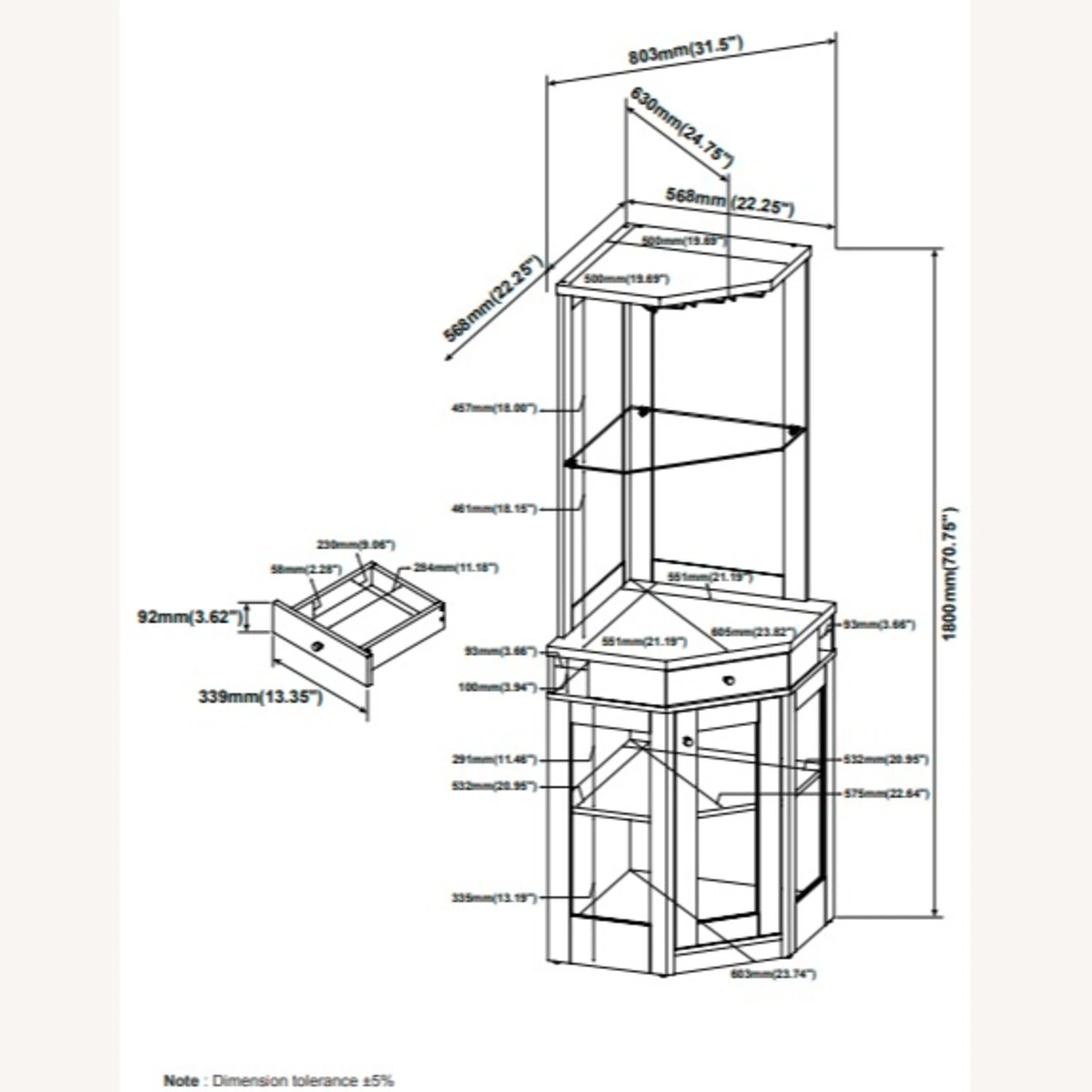 โข Constructed with MDF, particle board, glass, and engineered veneer