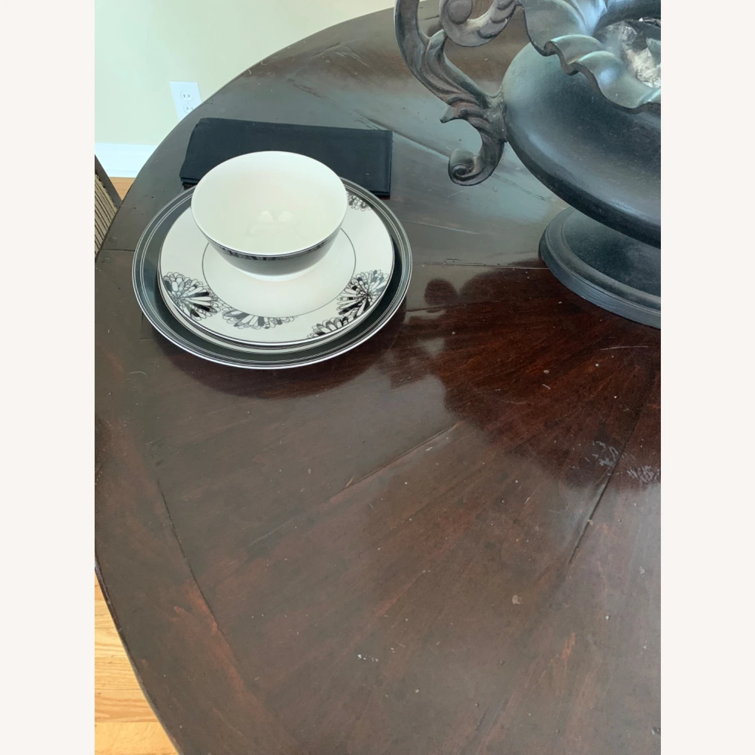 Seller’s Notes: This gorgeous Alder table has a pie top design on a round table that extends to accommodate a 24” leaf.