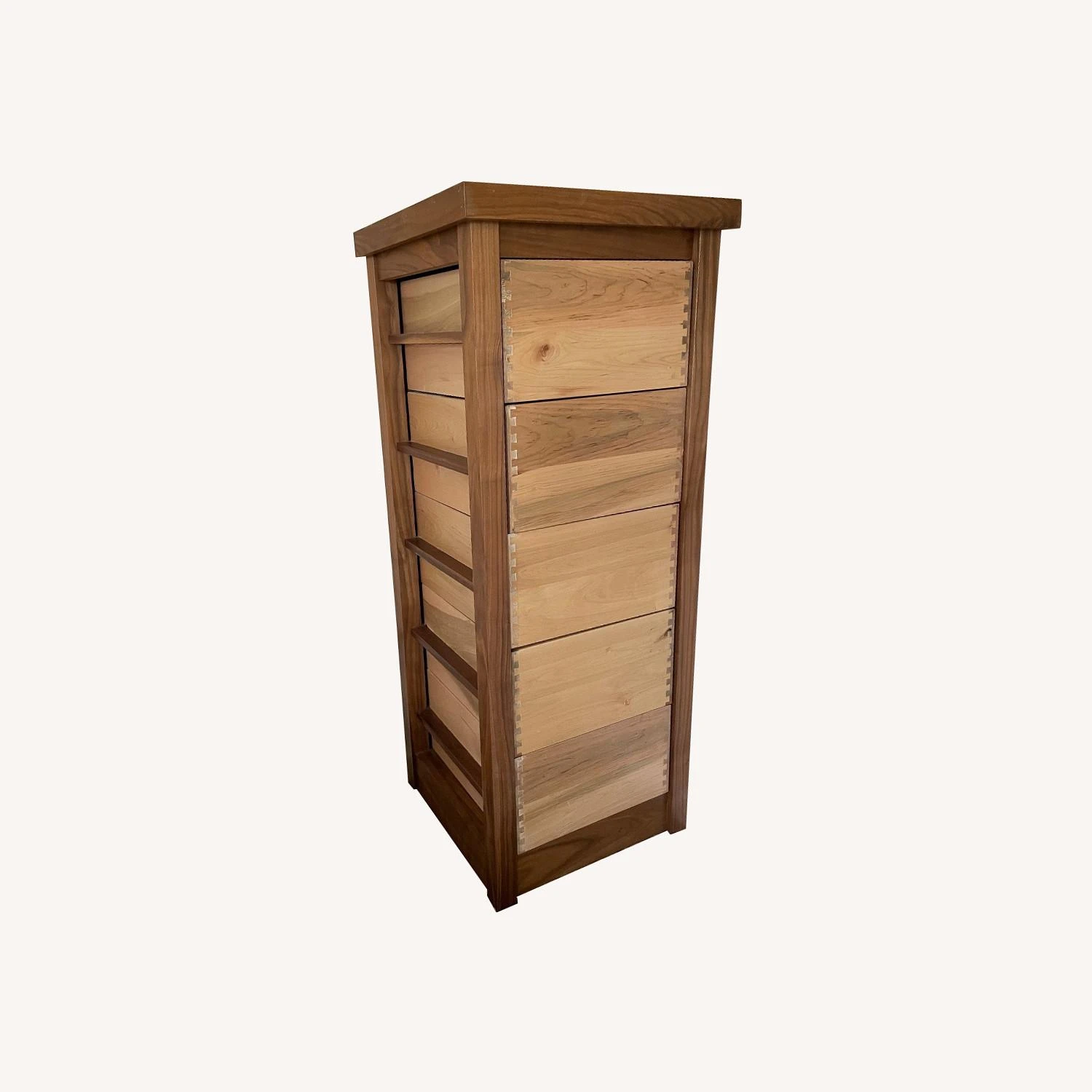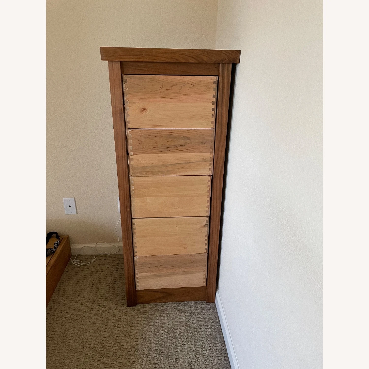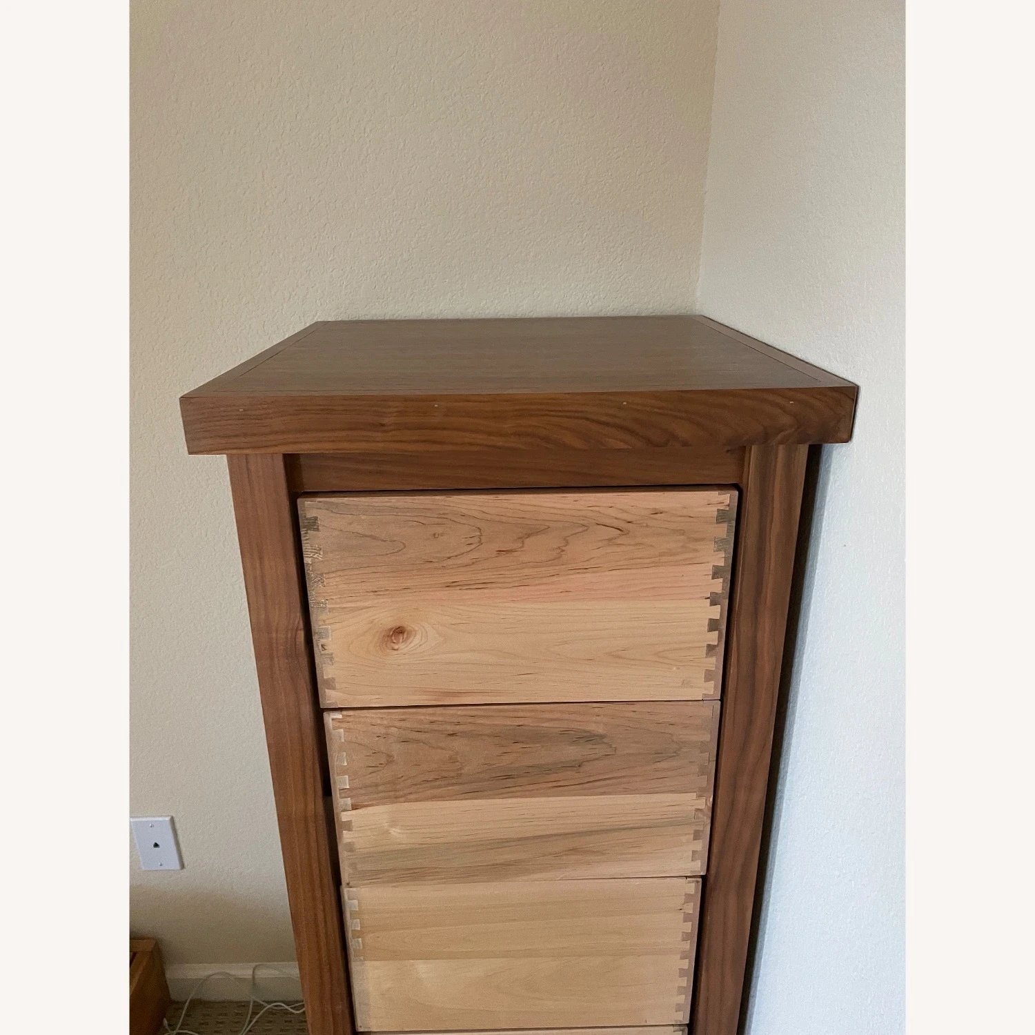 Seller’s Notes: Made by a local artisan from solid maple and walnut. A beautiful heirloom for your bedroom and in perfect condition. Drawers can be fully removed.