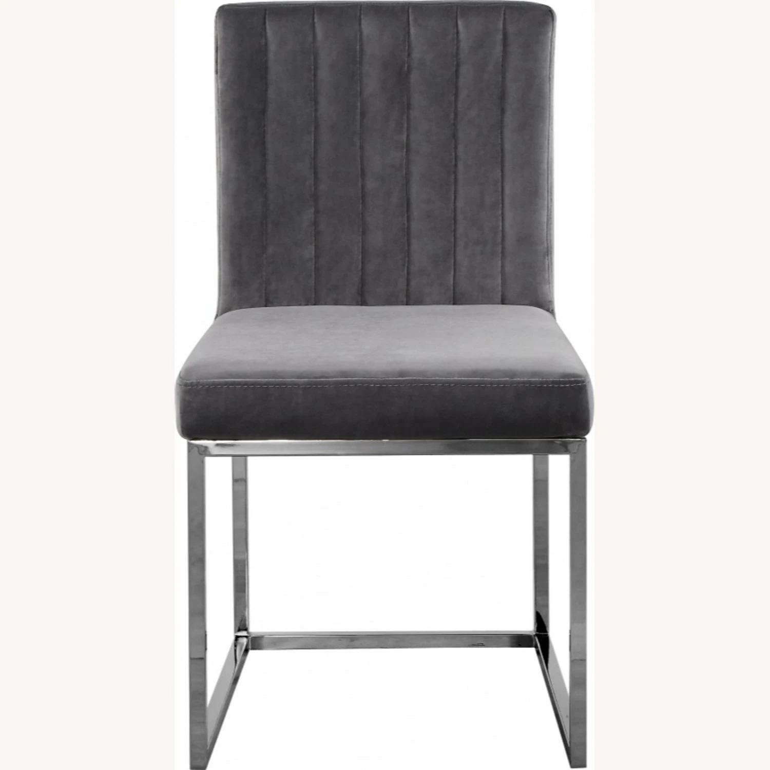 โข Take dining to a posh new level with this Grey Velvet Dining Chair.