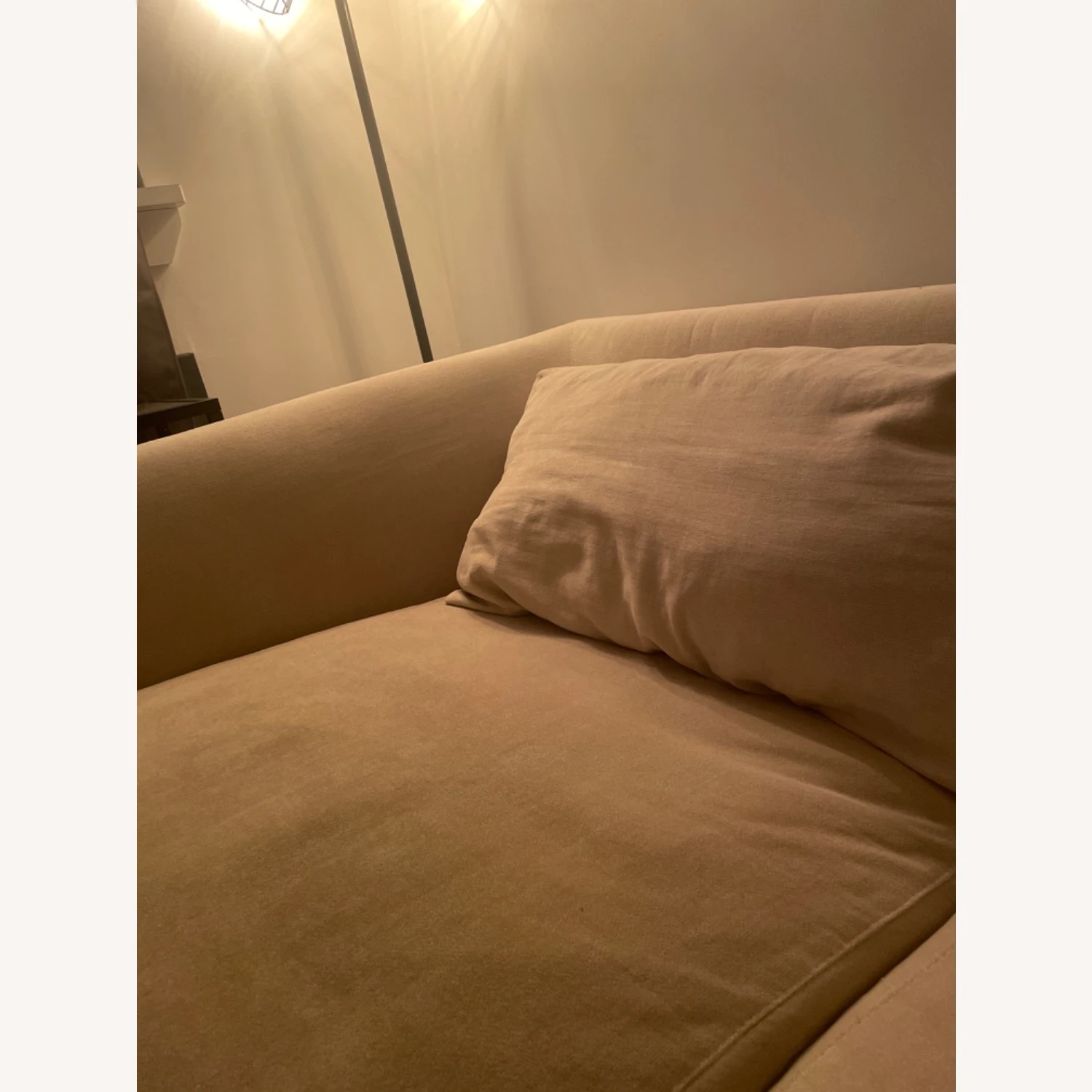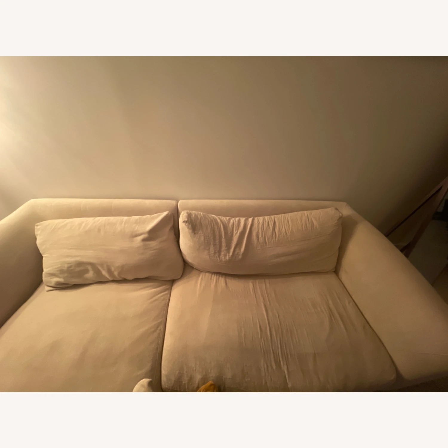 Seller’s Notes: We will be moving and will be sad to let our favorite couch go! It is in great condition–a super comfy, feather couch that is moderately firm. If you’d like the throw pillows can be included as well!