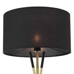 โข Standing elegantly on a black matte tripod base, effortlessly carrying the oversized black drum fabric shade, it complements mid-century modern, minimalist, or eclectic decors.
