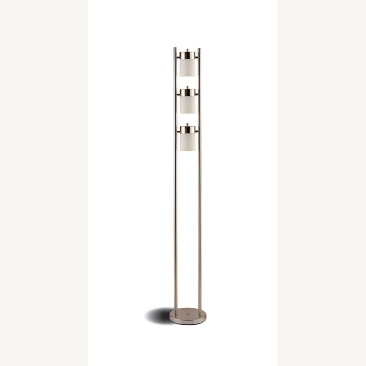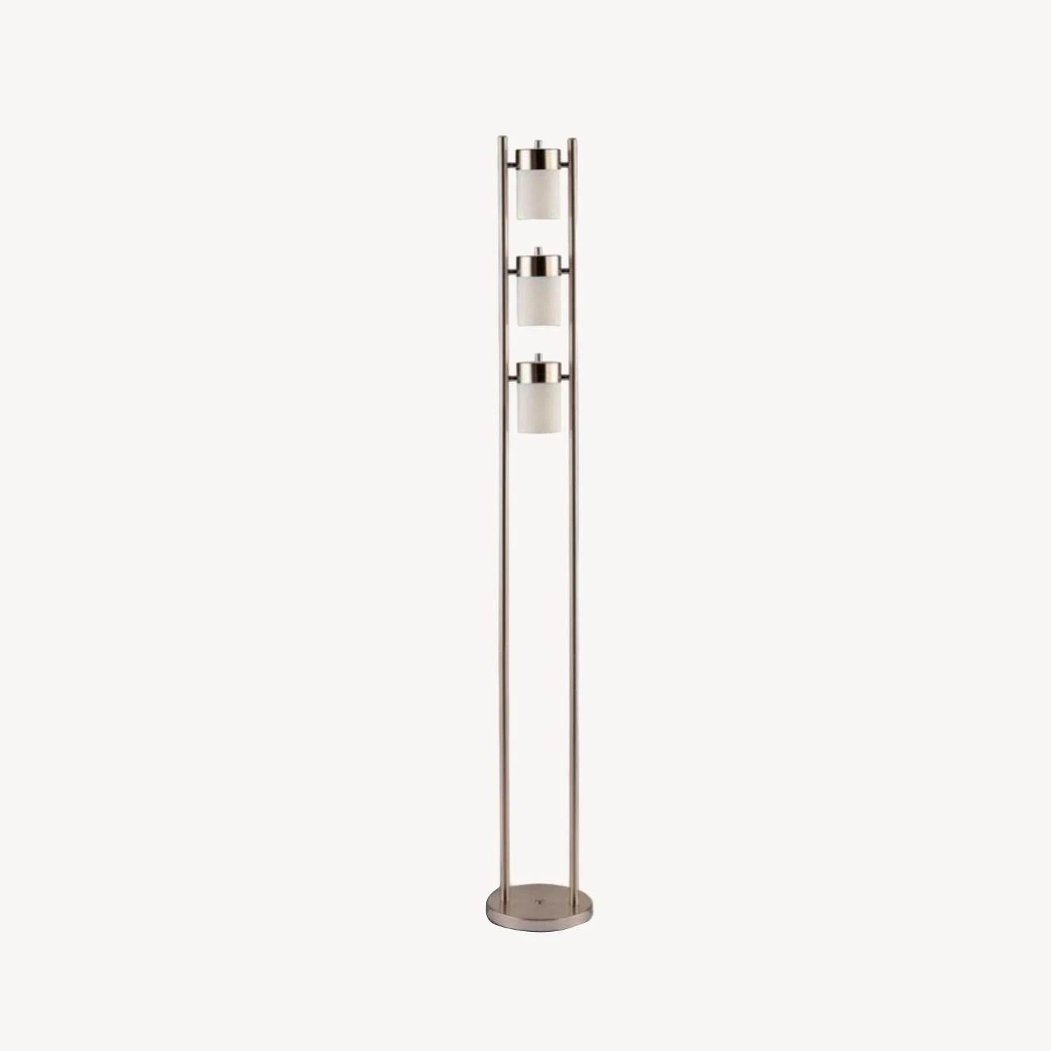 โข Three lamps with horizontal adjustable swivel direct light on a tall triple H frame
