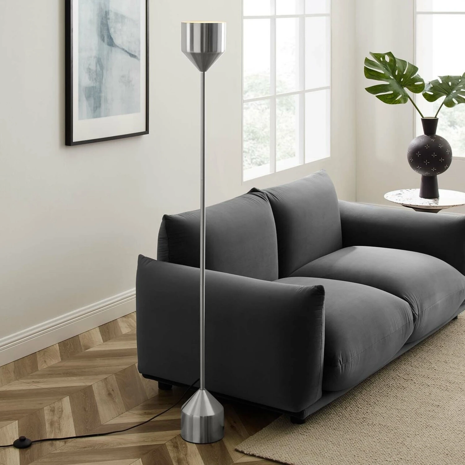 โข The streamlined silhouette makes this floor lamp a practical and polished beacon of light in small spaces or apartment settings.
